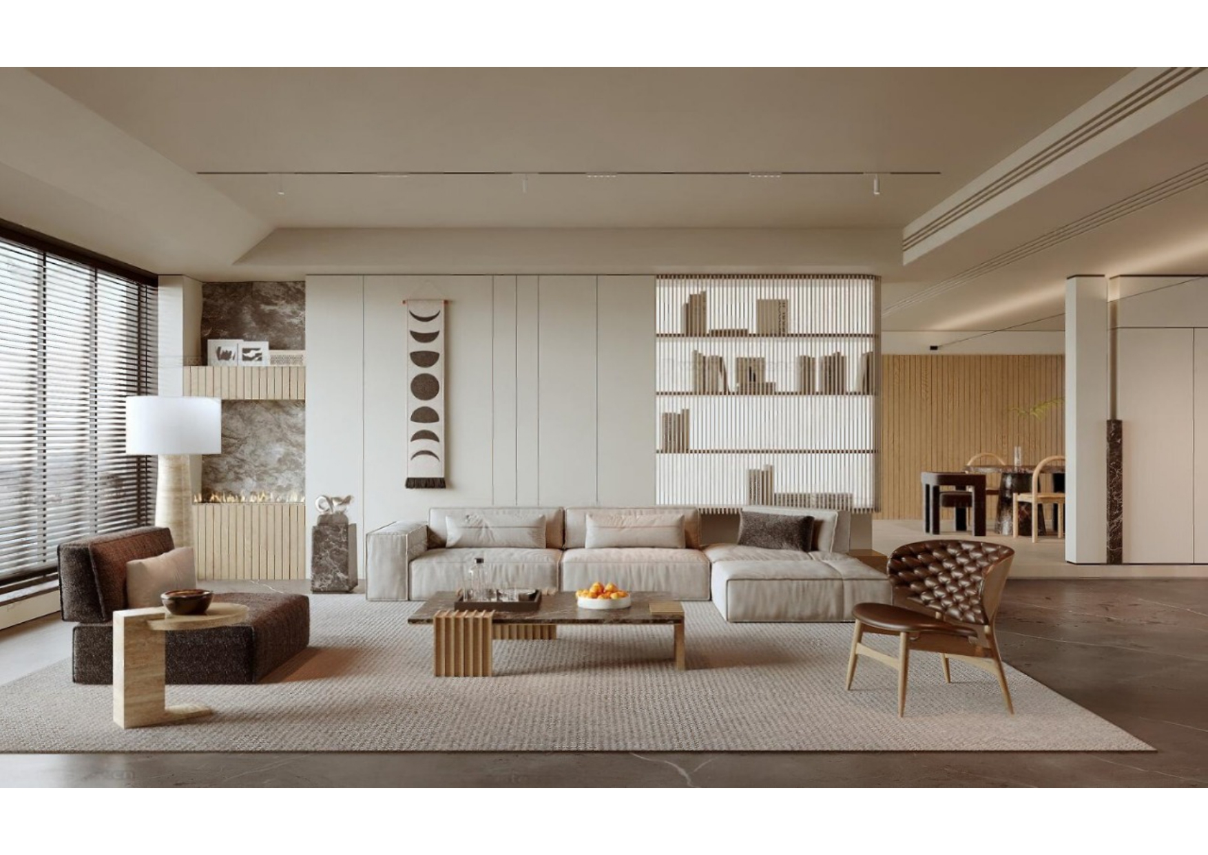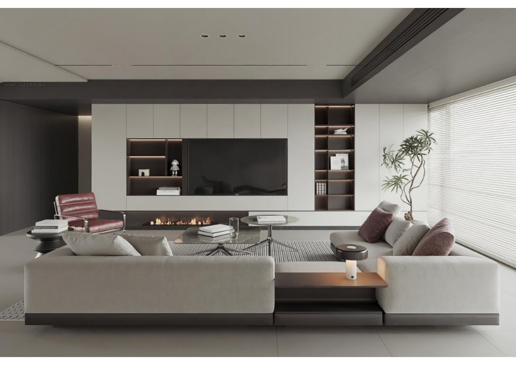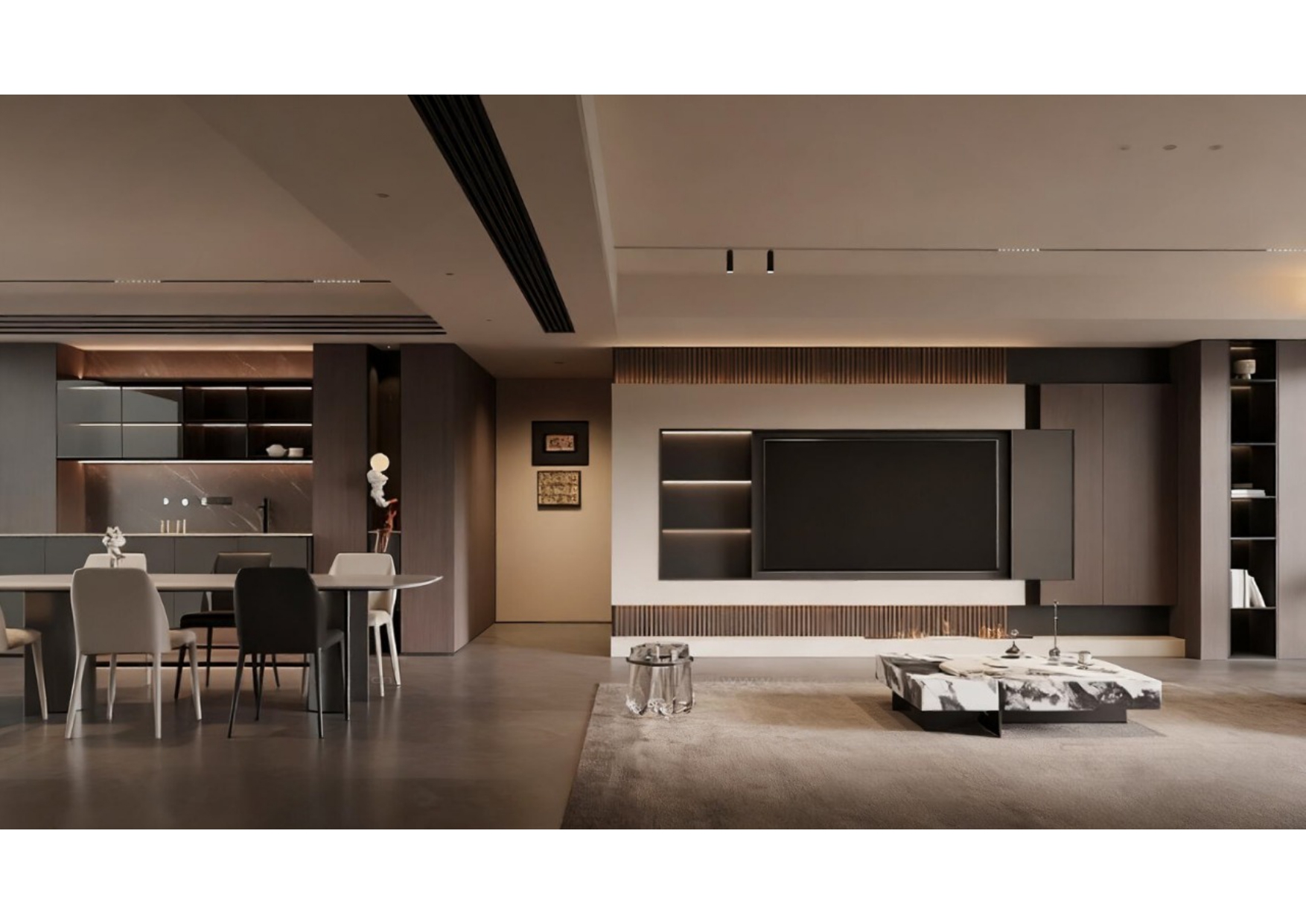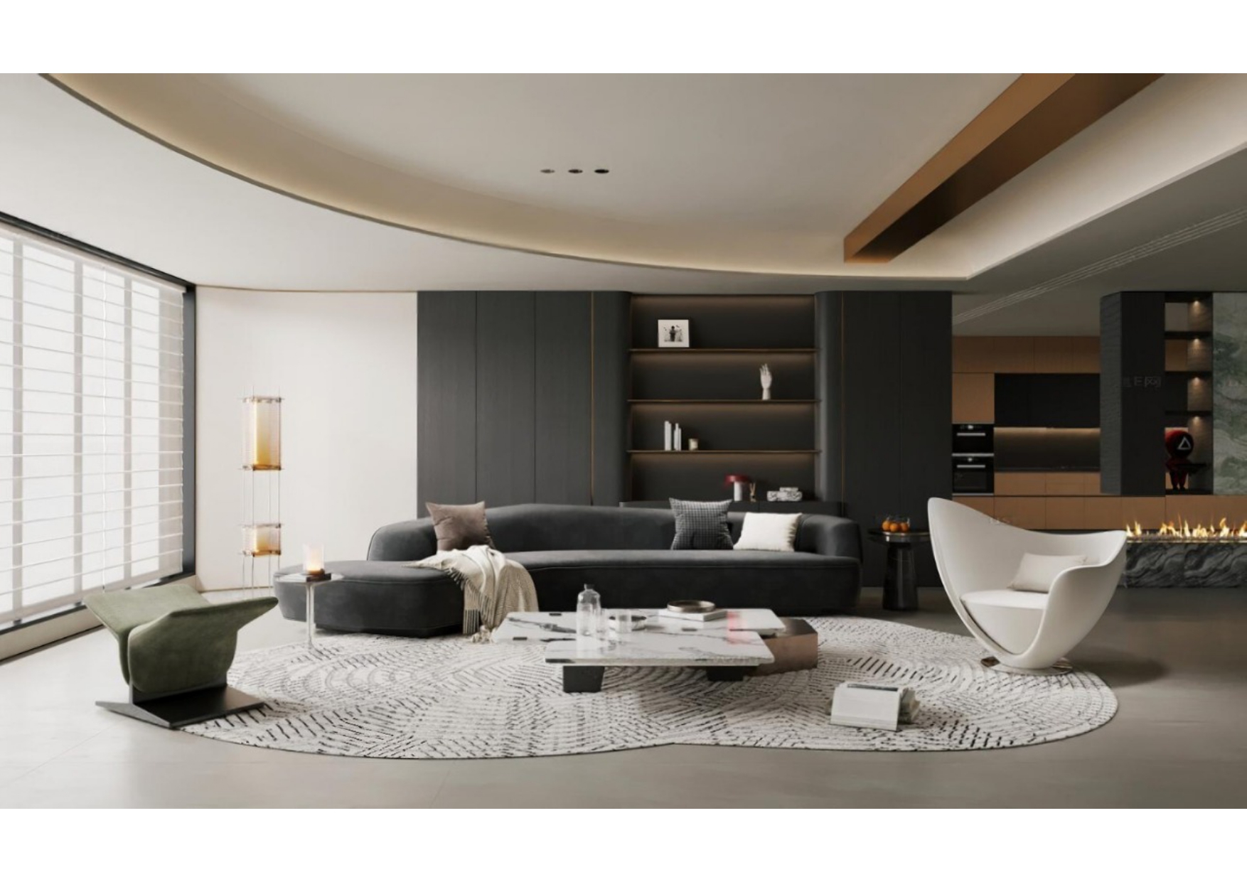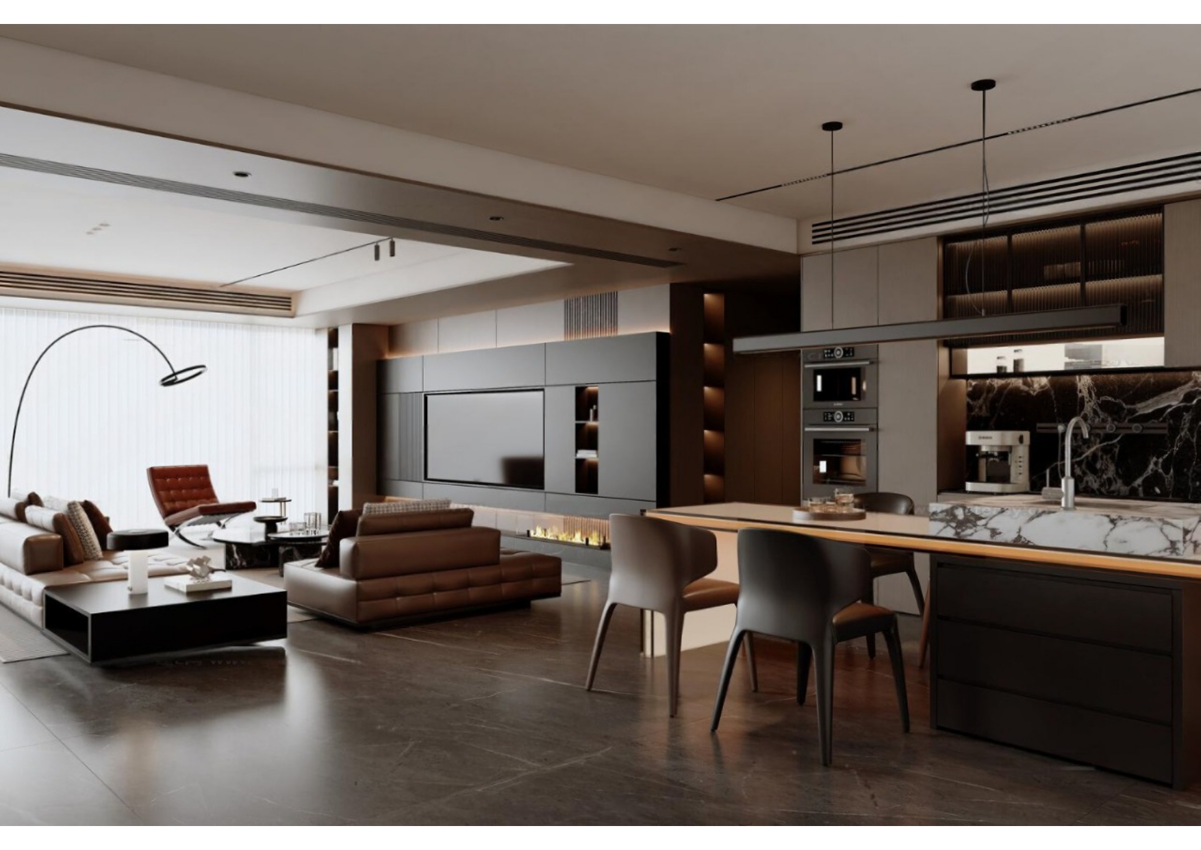 Luxury Modern Living Room with Marble Coffee Table and Black Sofa Set – 3D Model_114971306