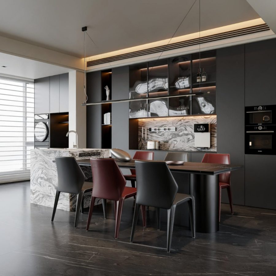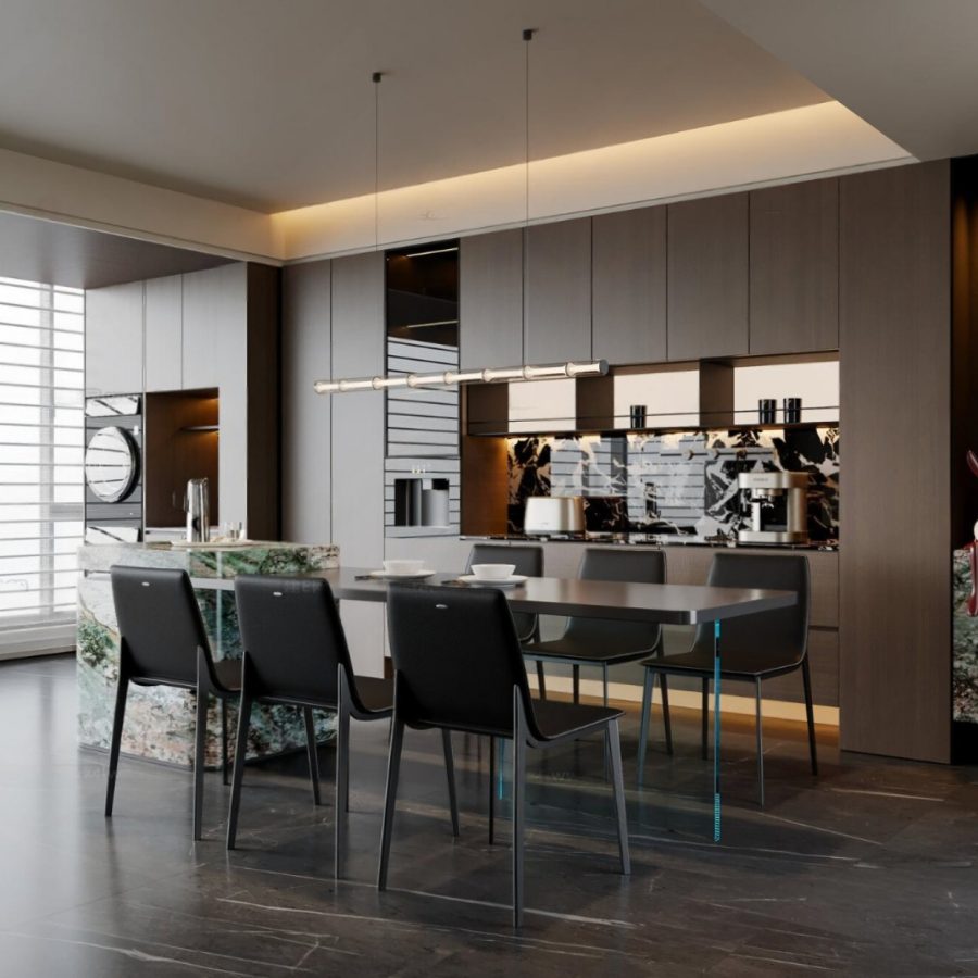 Modern 3D Kitchen and Dining Room Set