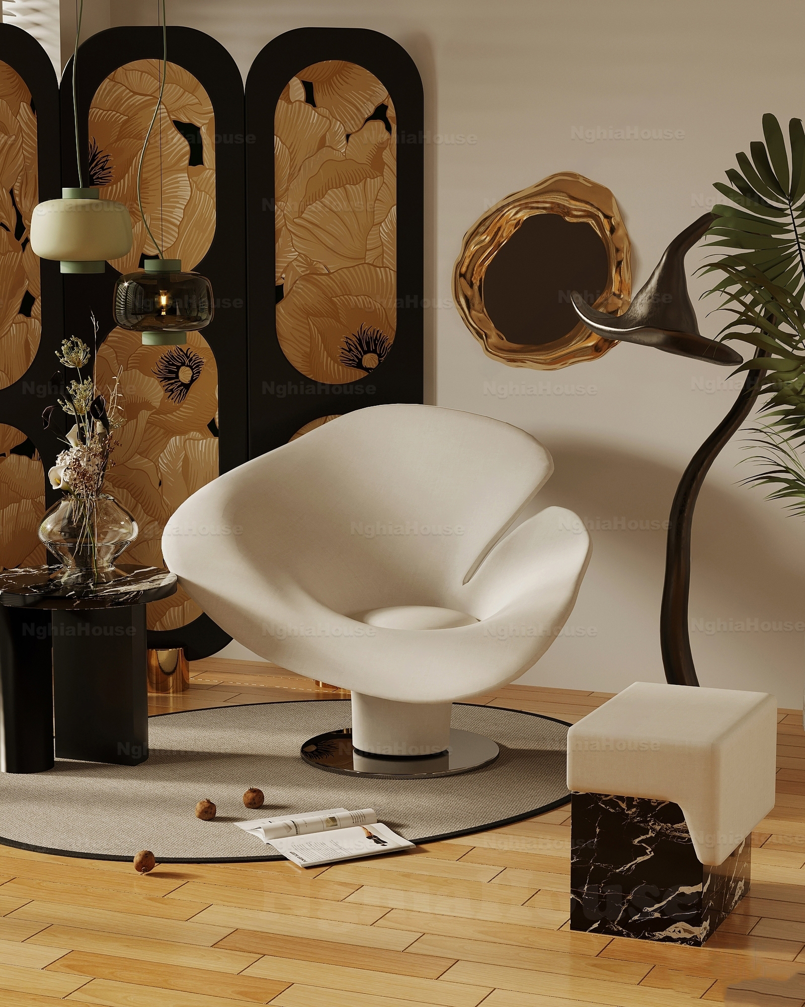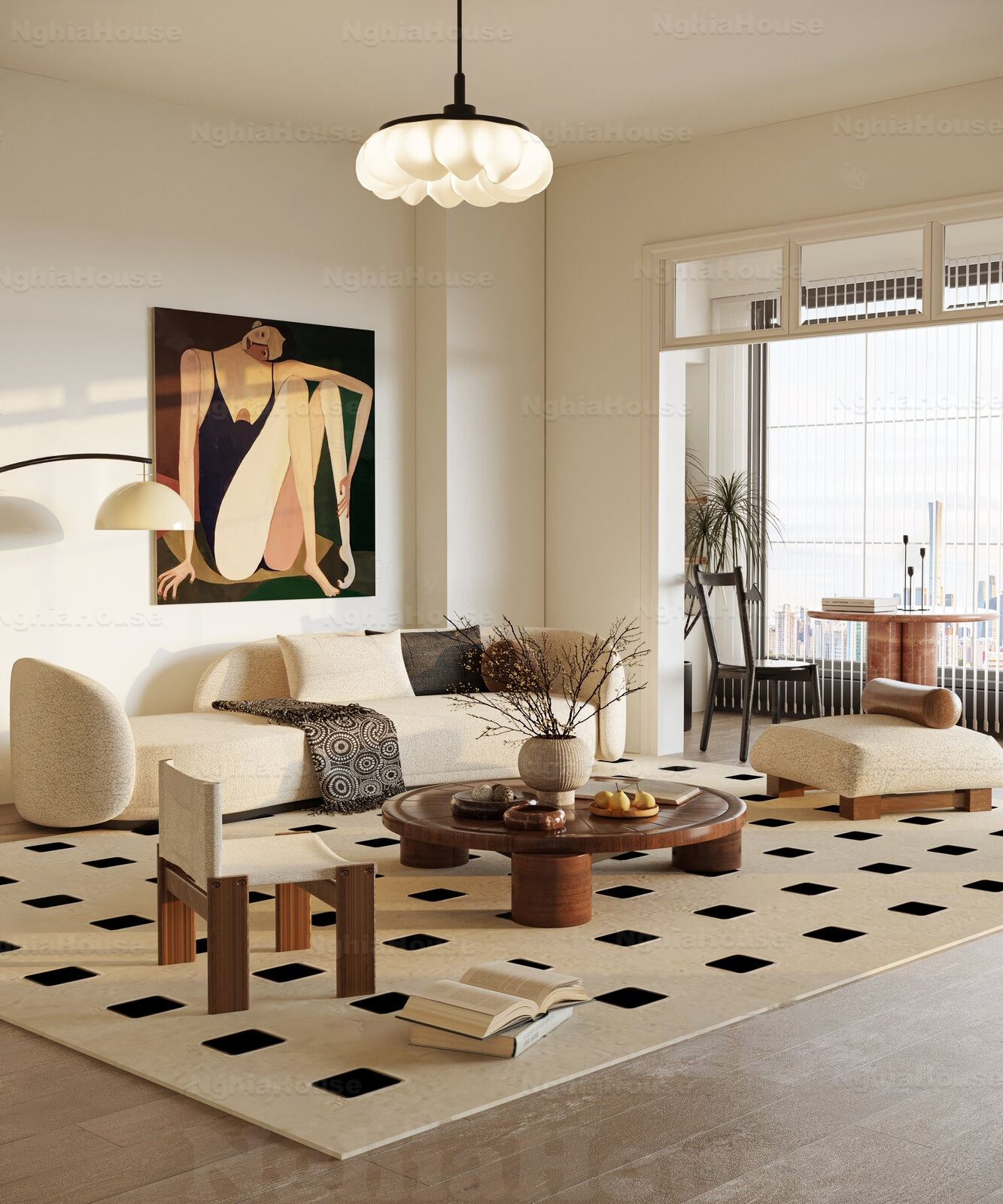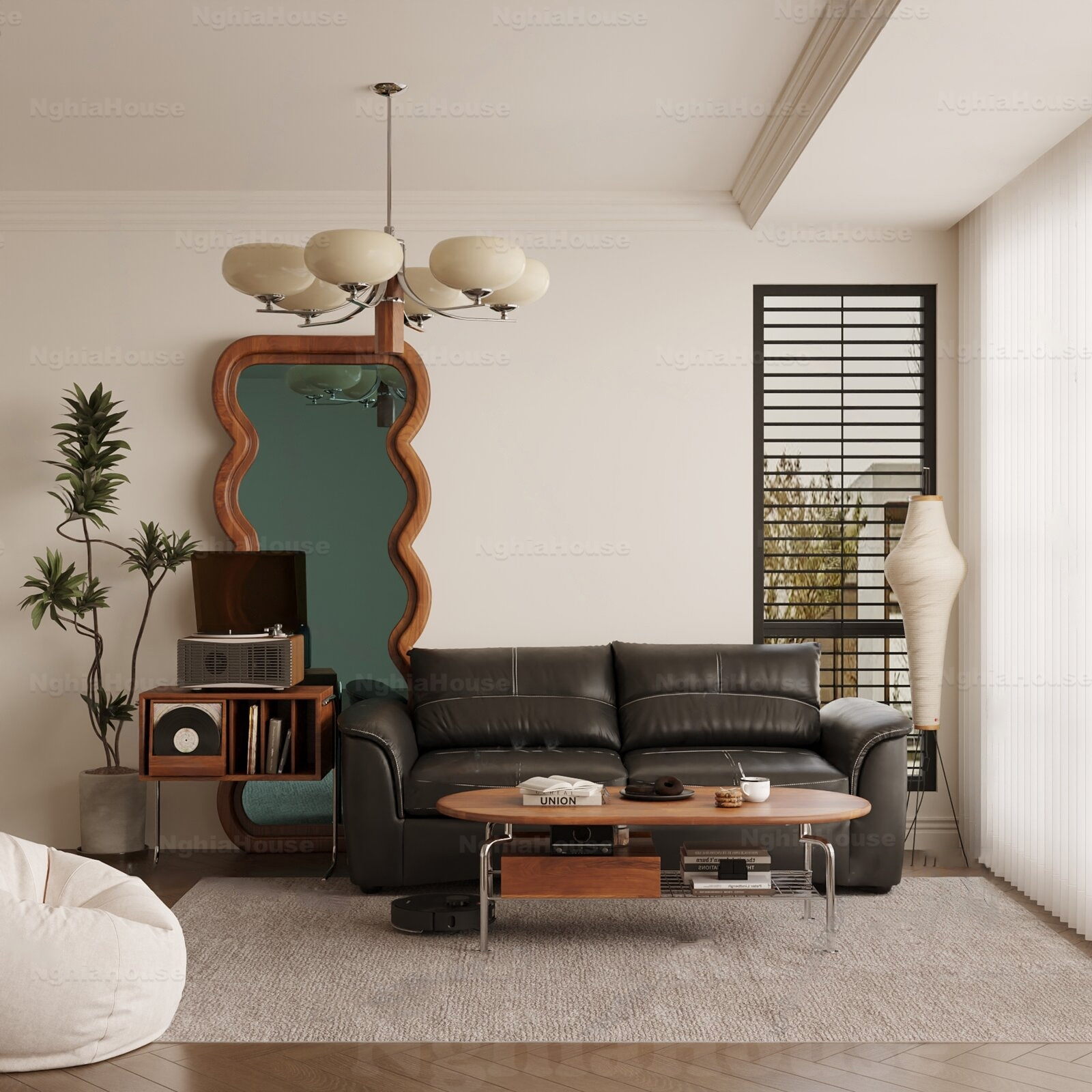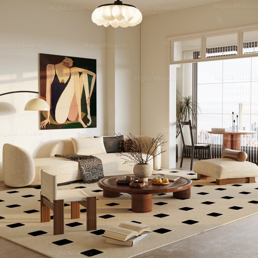 Luxury Modern Living Room with Marble Coffee Table and Black Sofa Set – 3D Model_114971306