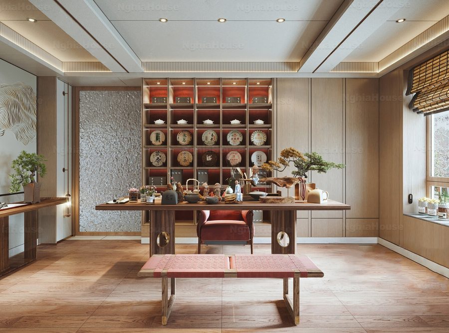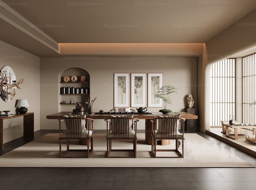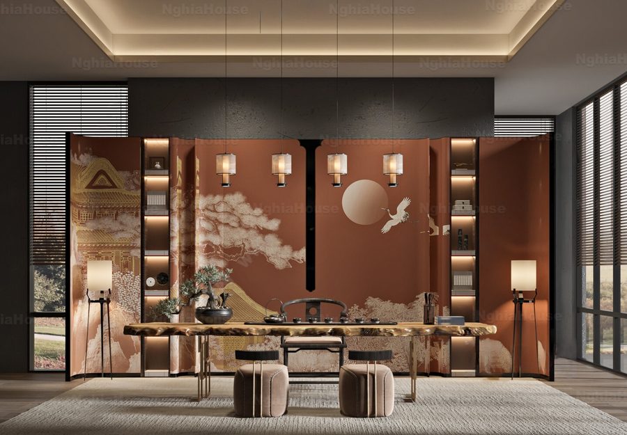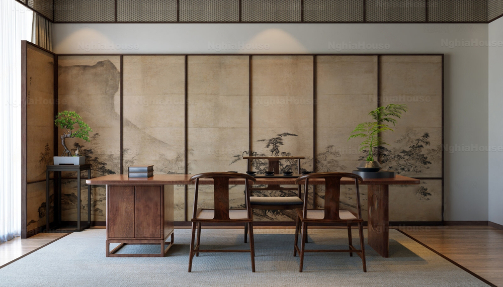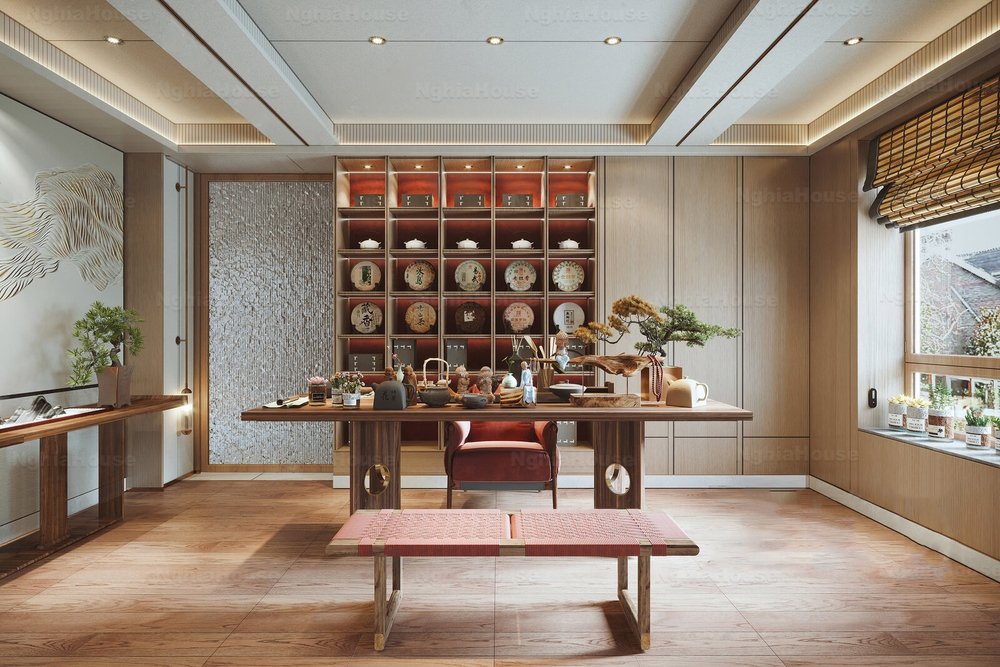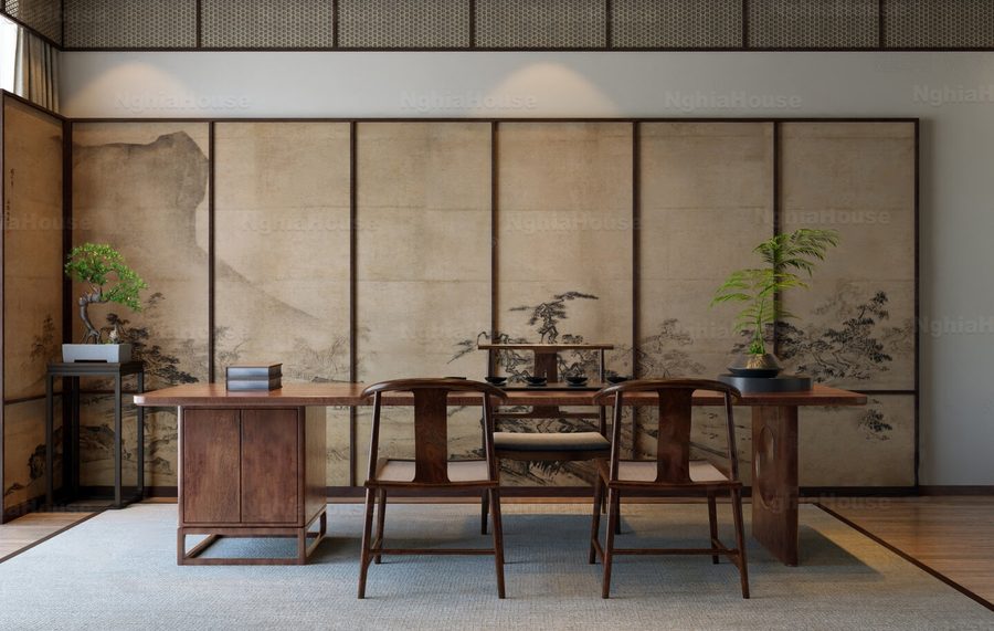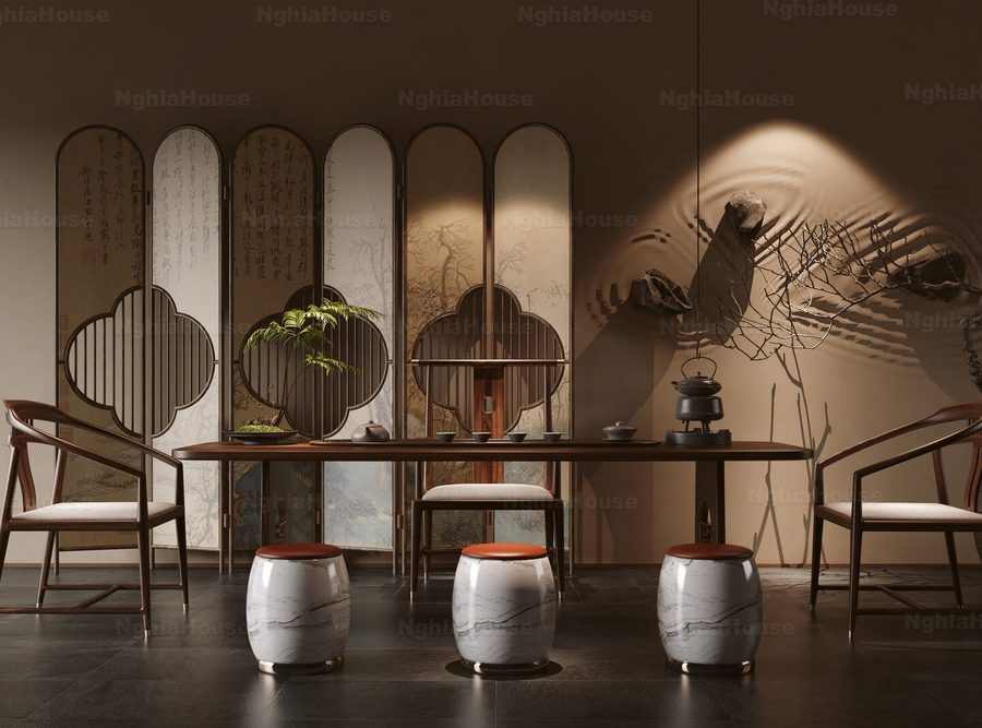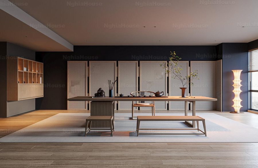 3D Model Asian Style Console Table Interior with Decorative Partition_107767822