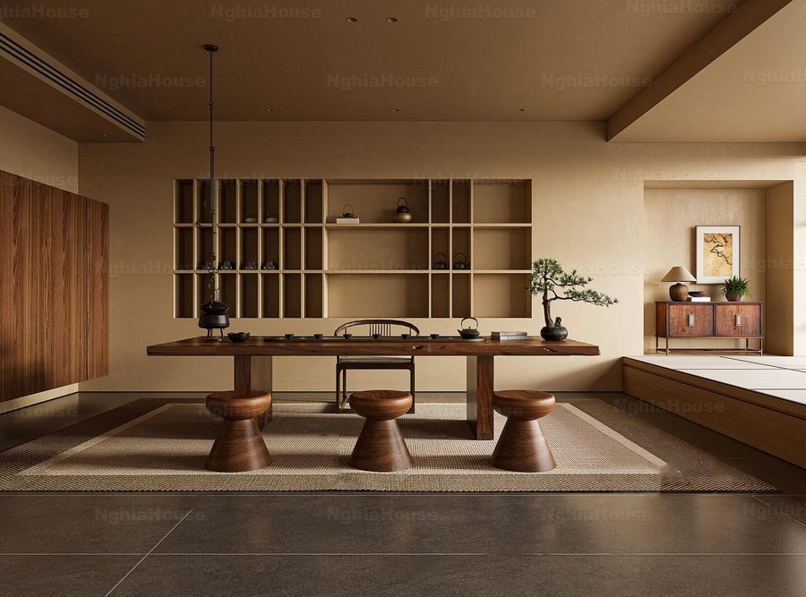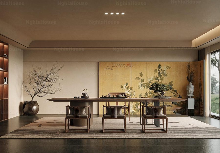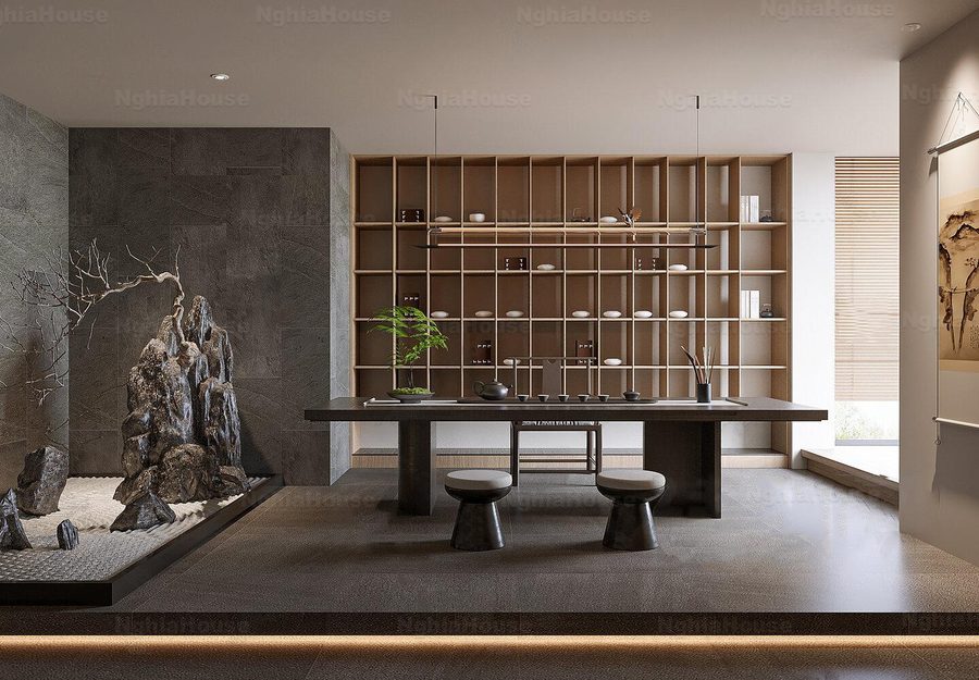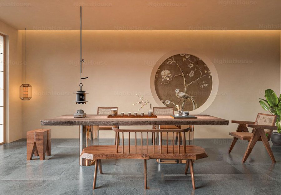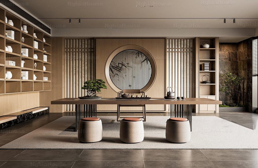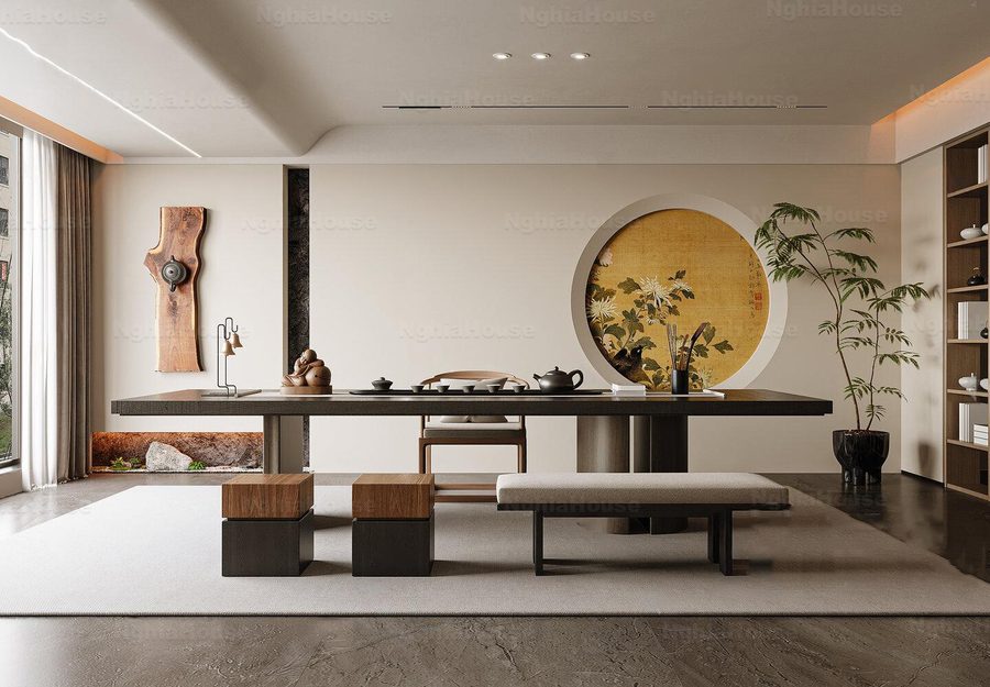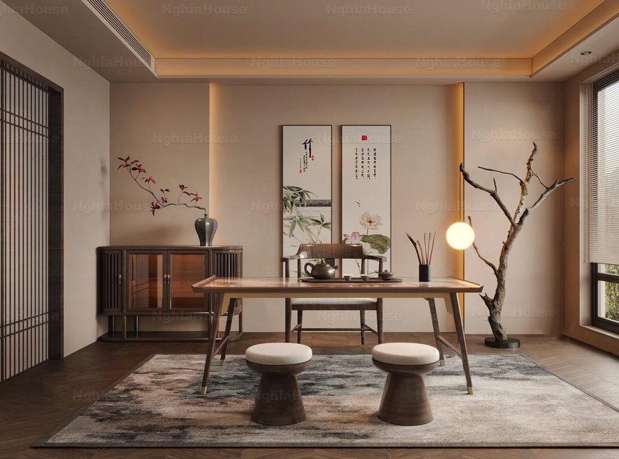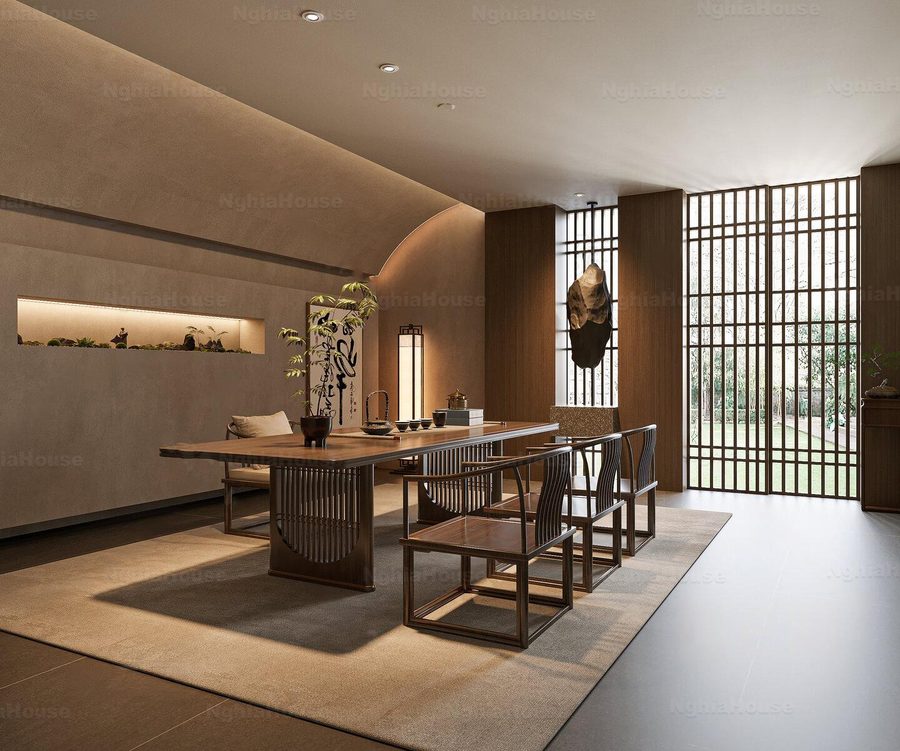 3D Model Asian Style Console Table Interior with Decorative Partition_107767822