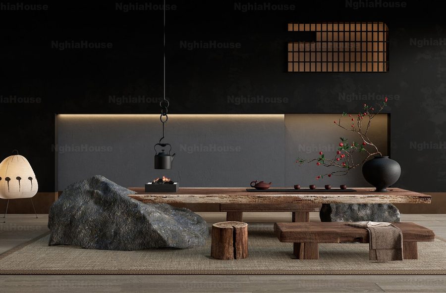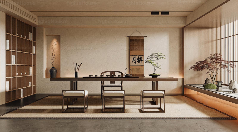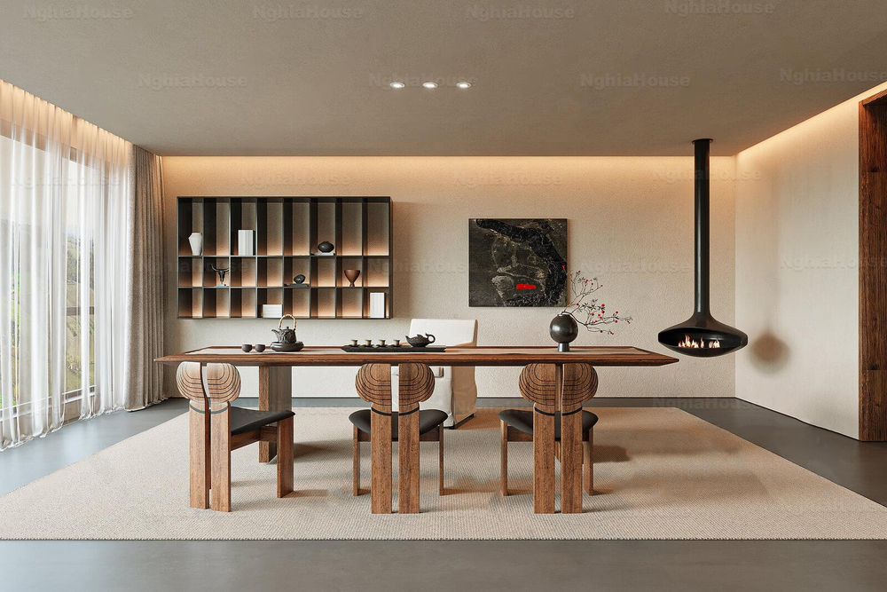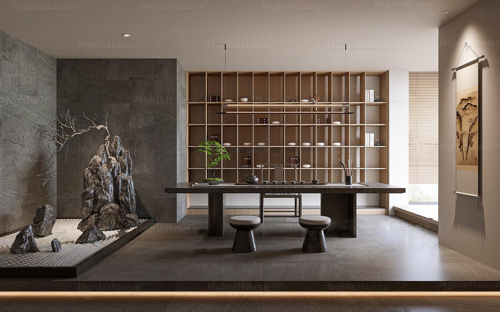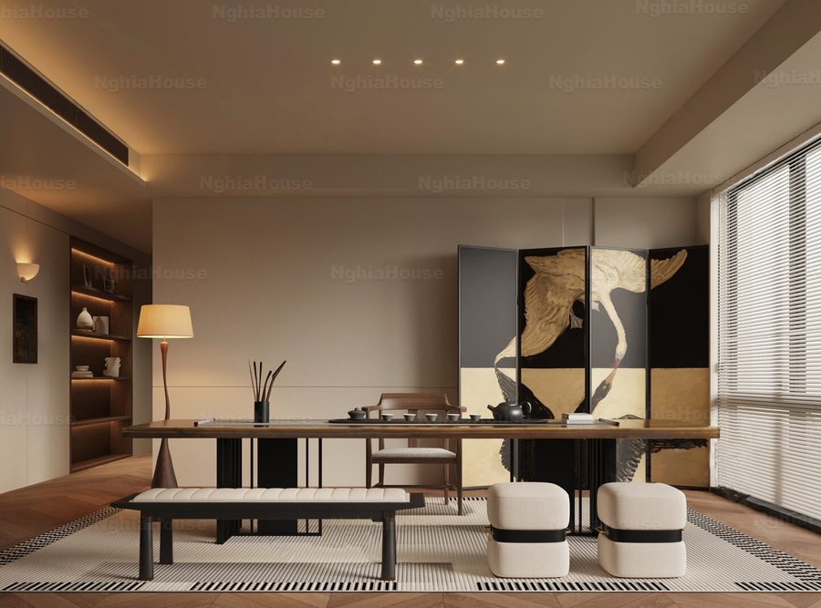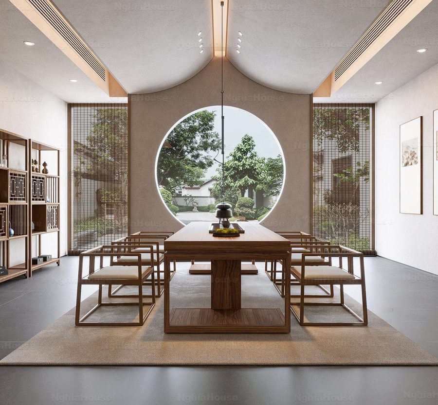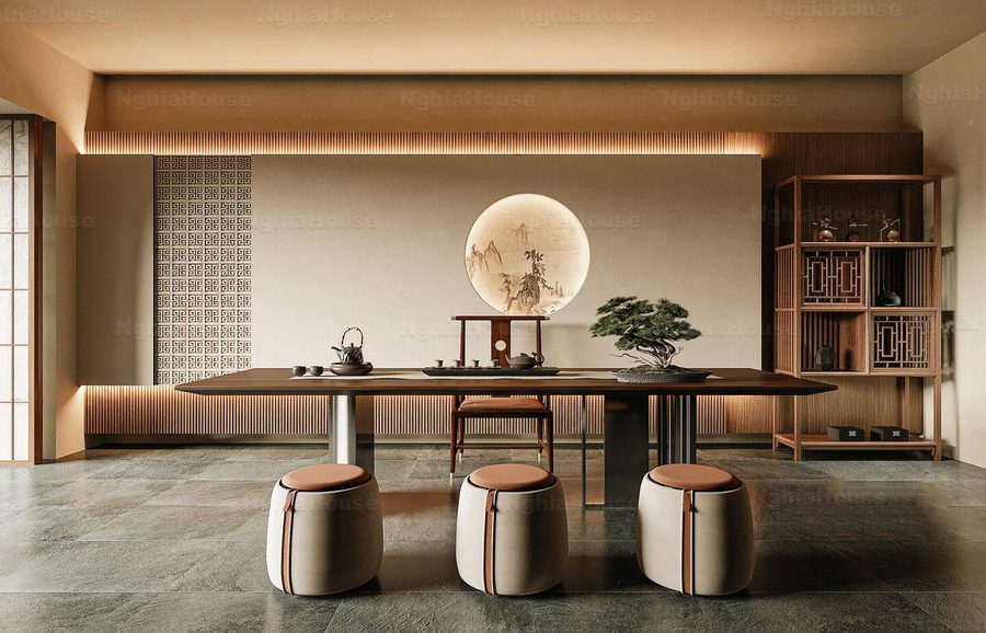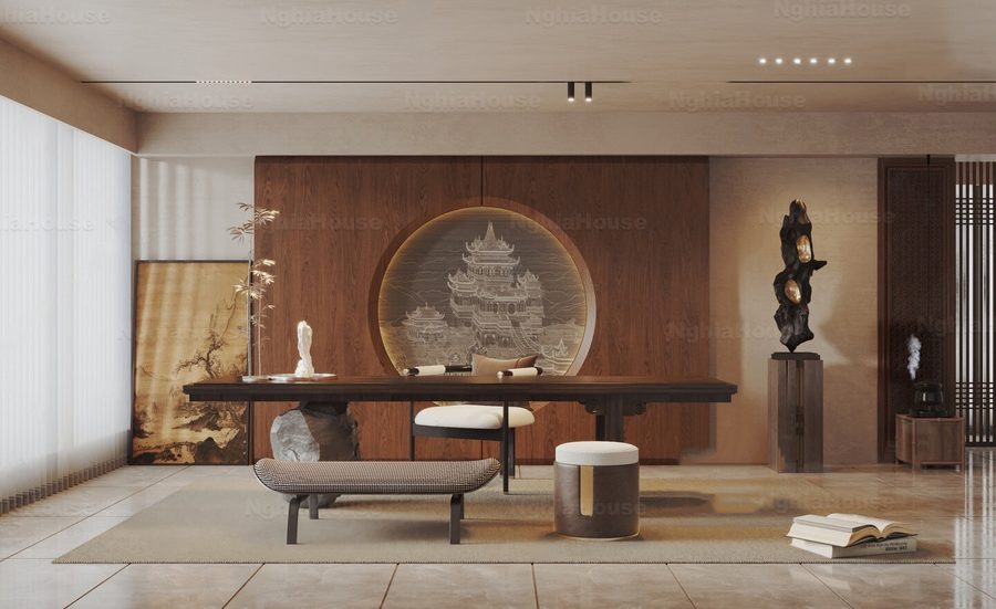 3D Model Asian Style Console Table Interior with Decorative Partition_107767822
