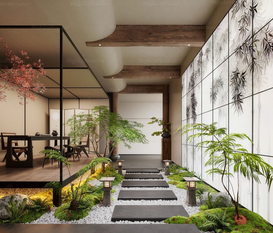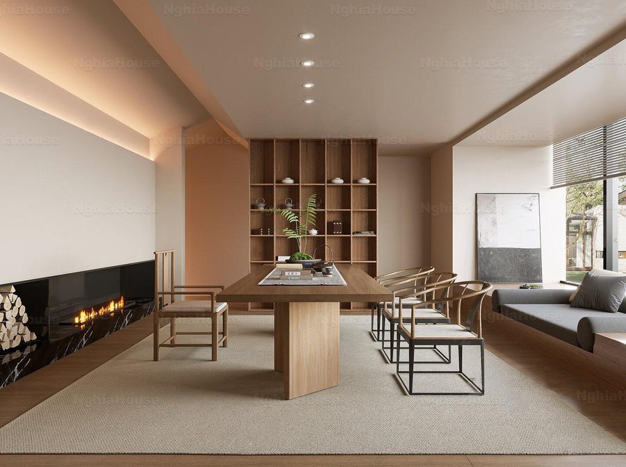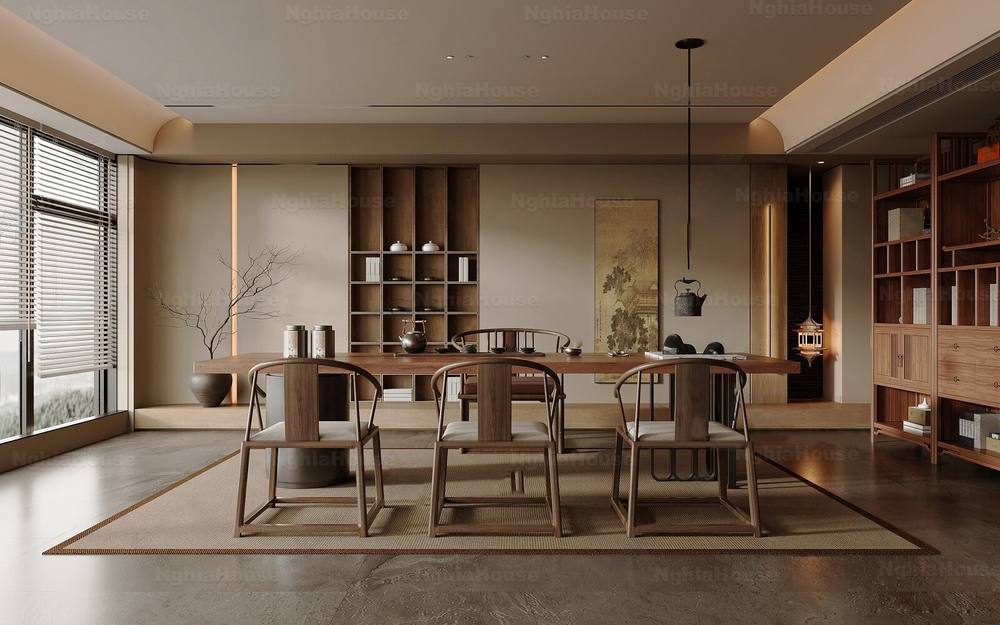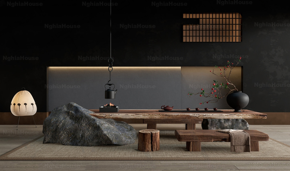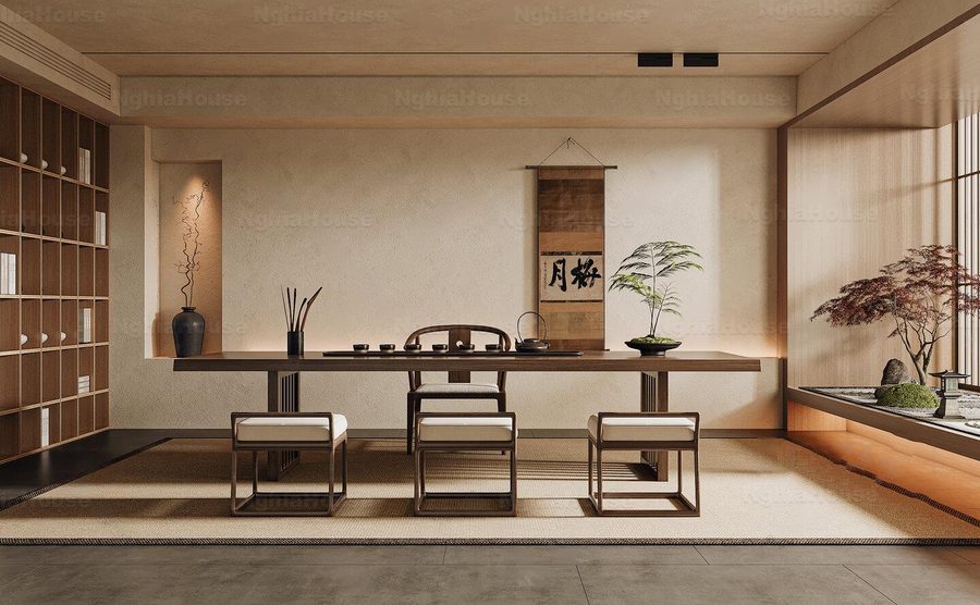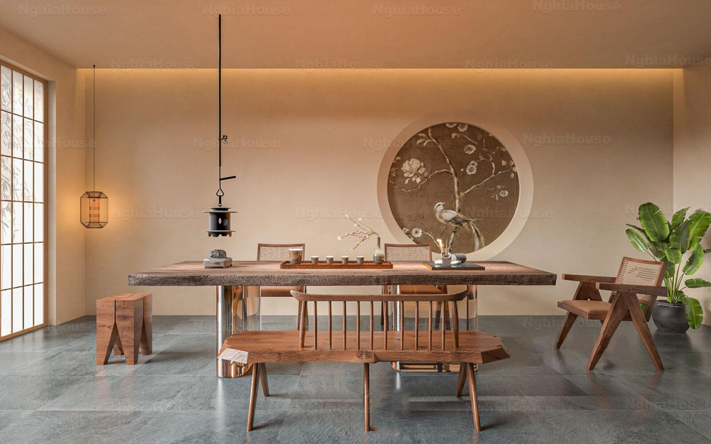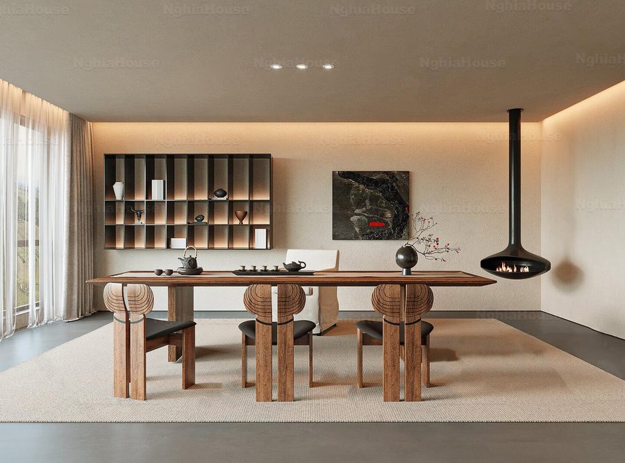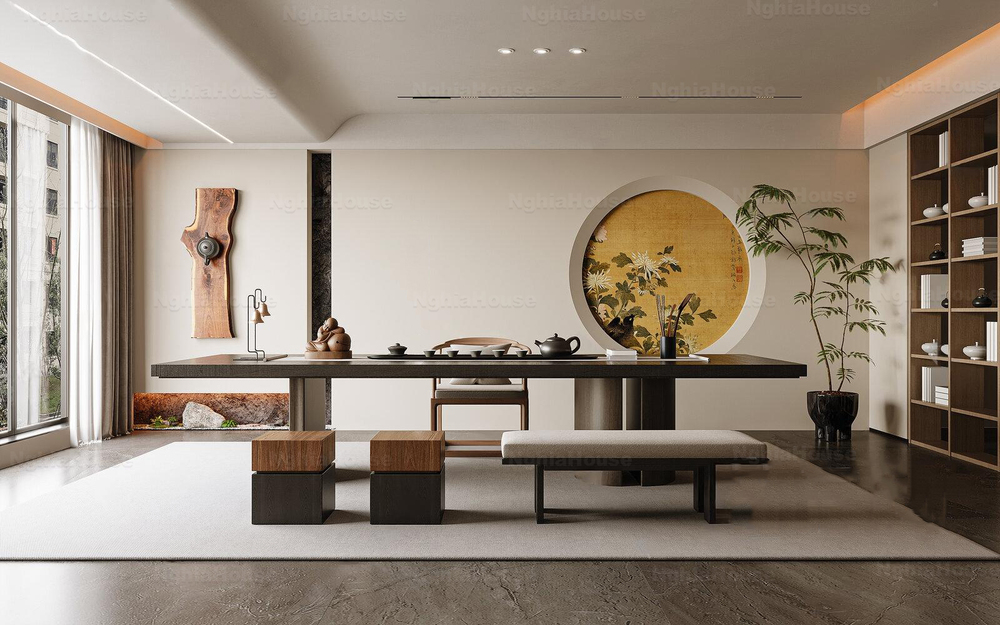 3D Model Asian Style Console Table Interior with Decorative Partition_107767822