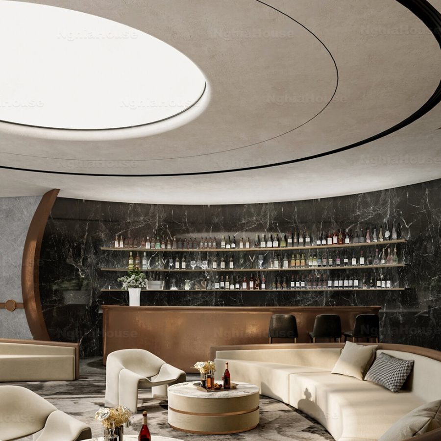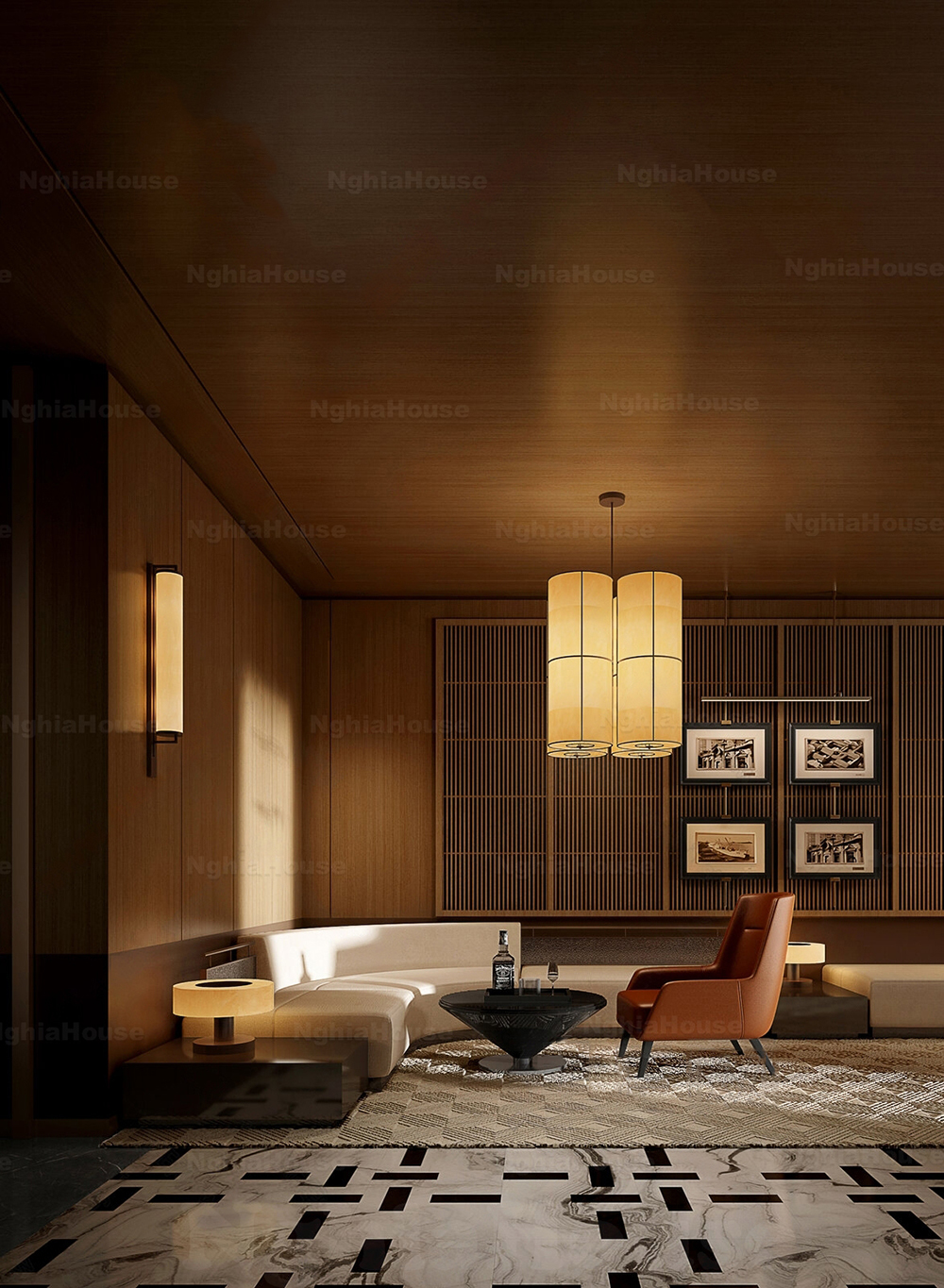 Luxury Modern Living Room with Marble Coffee Table and Black Sofa Set – 3D Model_114971306