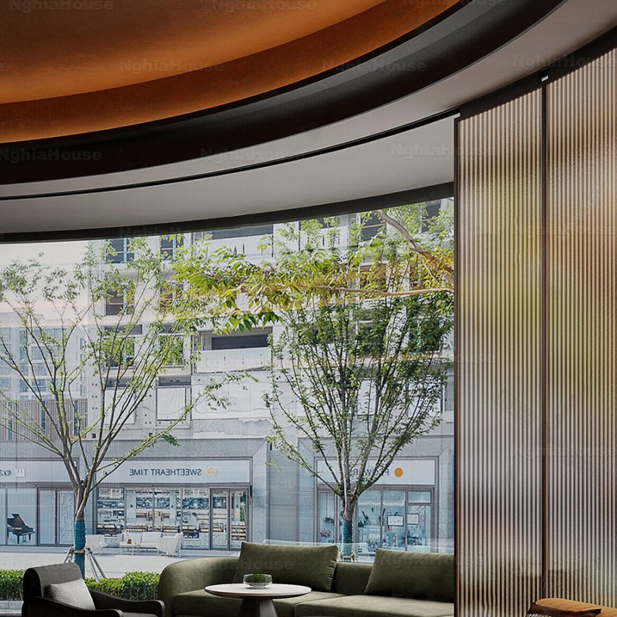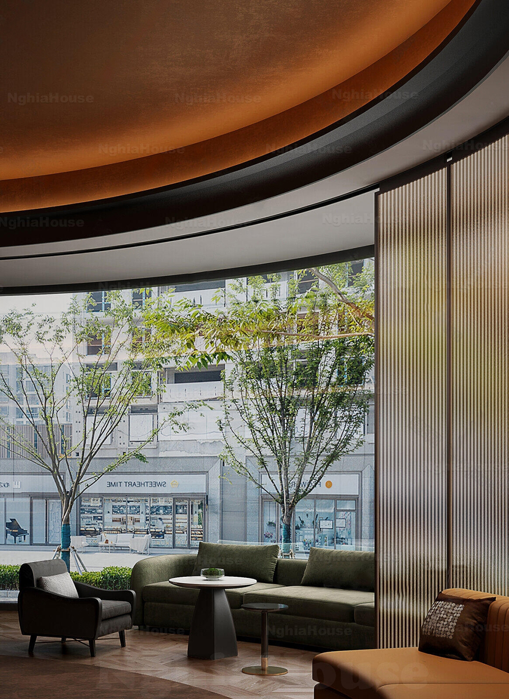 Luxury Modern Living Room with Marble Coffee Table and Black Sofa Set – 3D Model_IDC1117421308