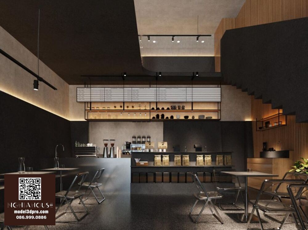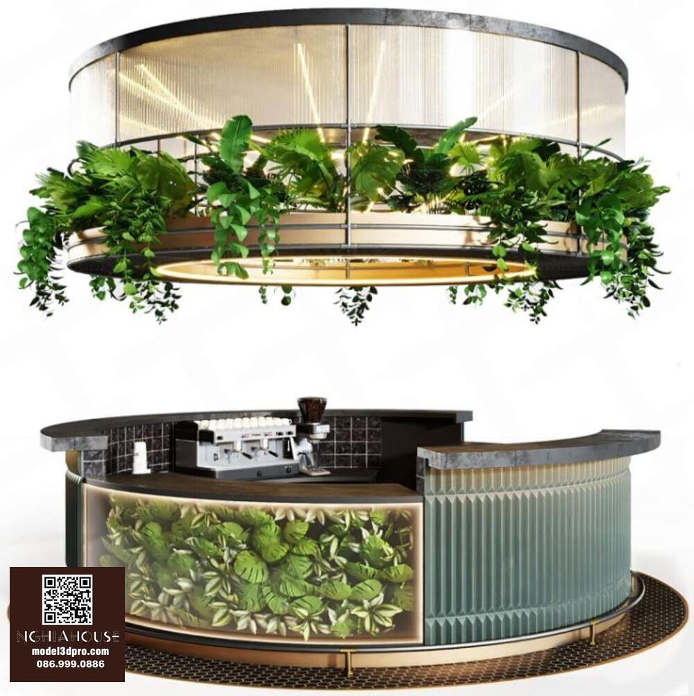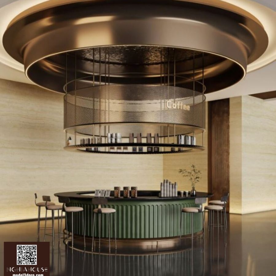 Modern Kitchen Cabinet with Coffee Station and Appliances – 3D Model_1152633245