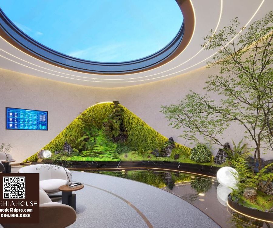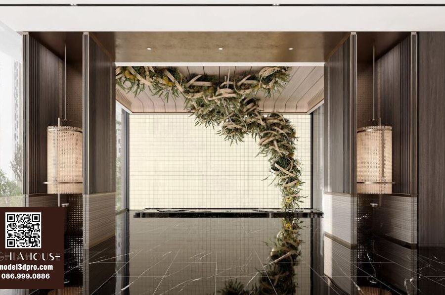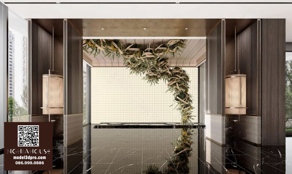 3D Model Asian Style Console Table Interior with Decorative Partition_107767822