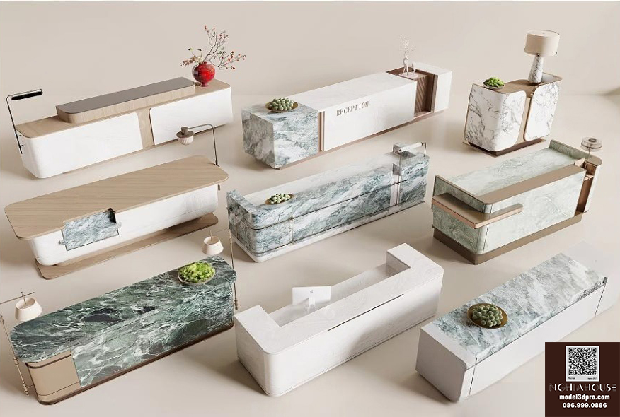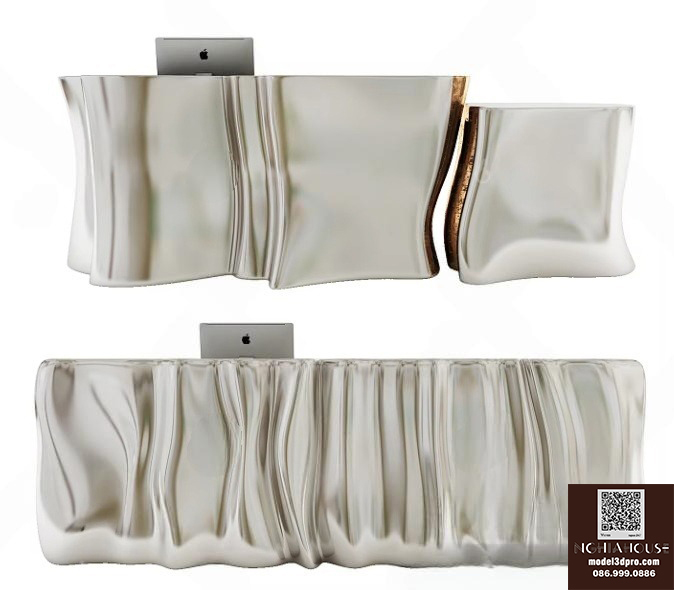 3D Model Modern Red Console Table with Marble Wall Background_100756327