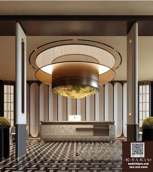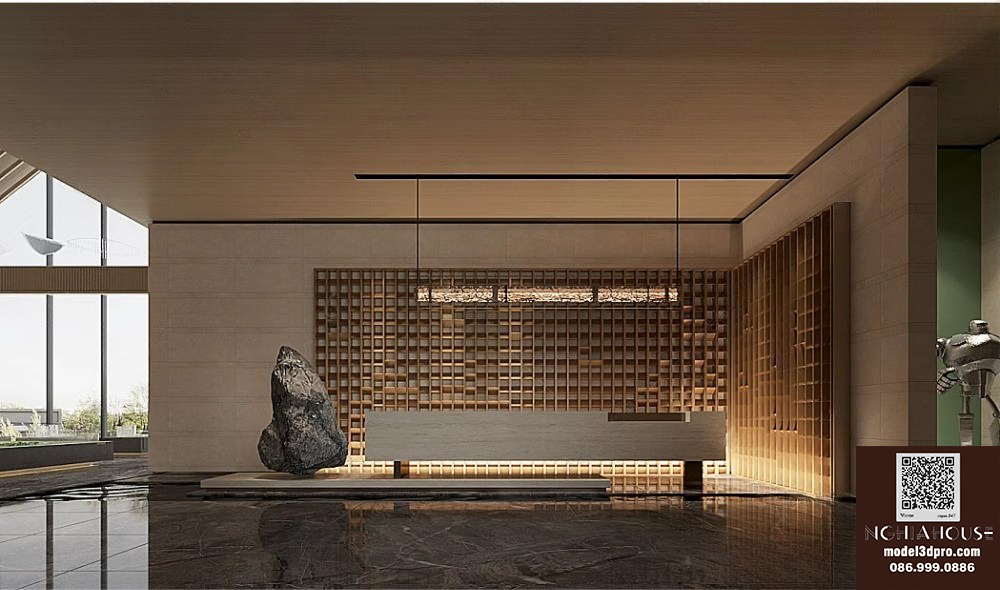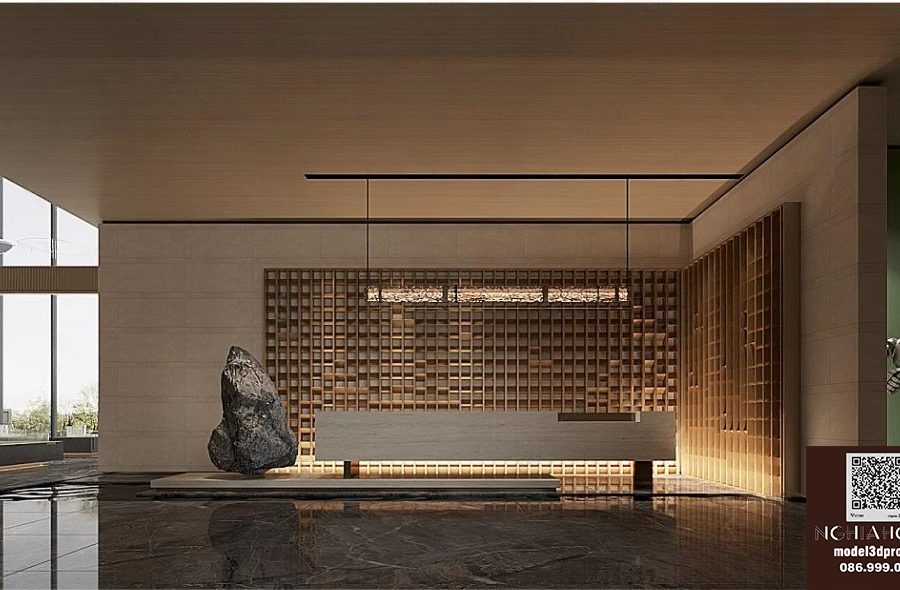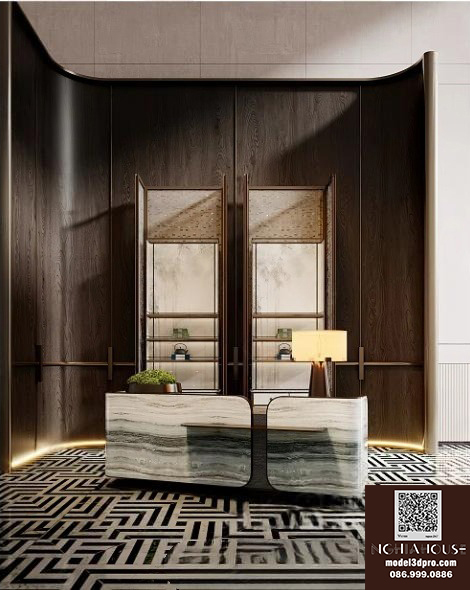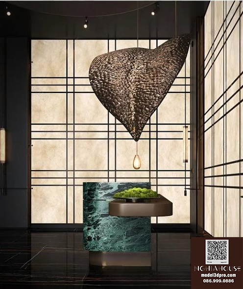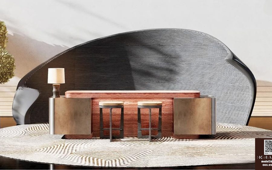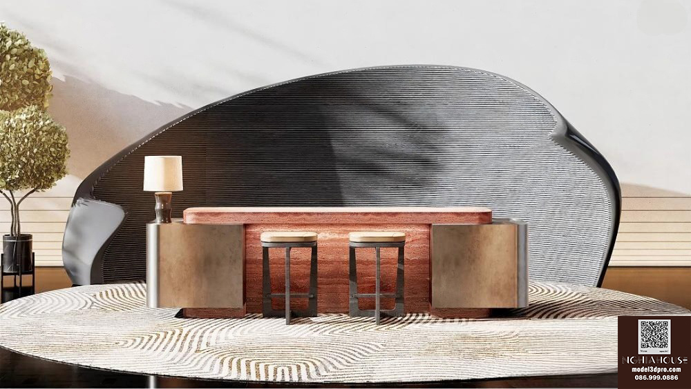 3D Model Asian Style Console Table Interior with Decorative Partition_107767822