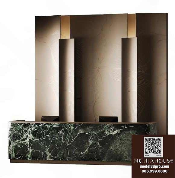 3D Model Oriental Console Table with Decorative Wall Panel_HJI4803713120066