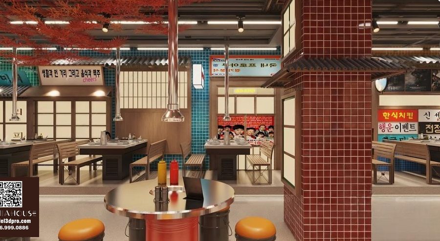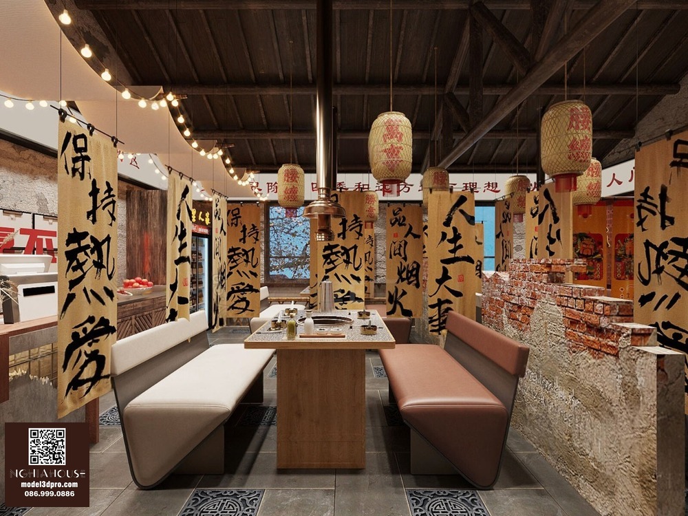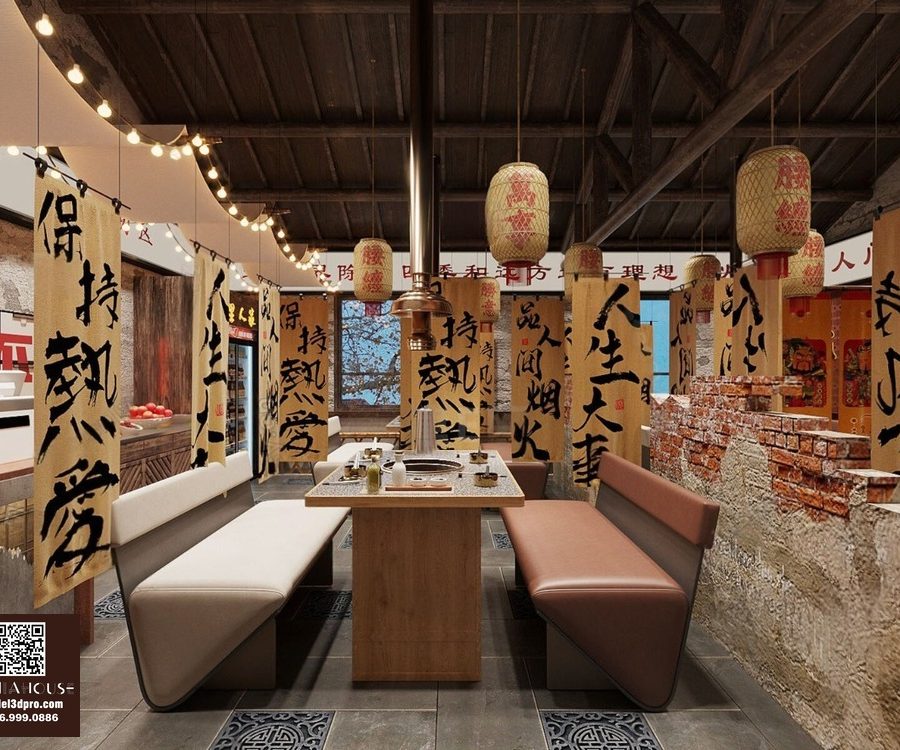 3D Model Asian Style Console Table Interior with Decorative Partition_107767822