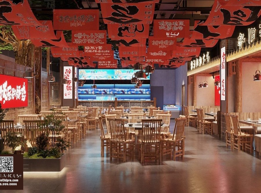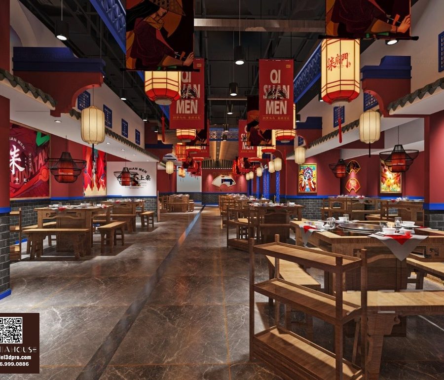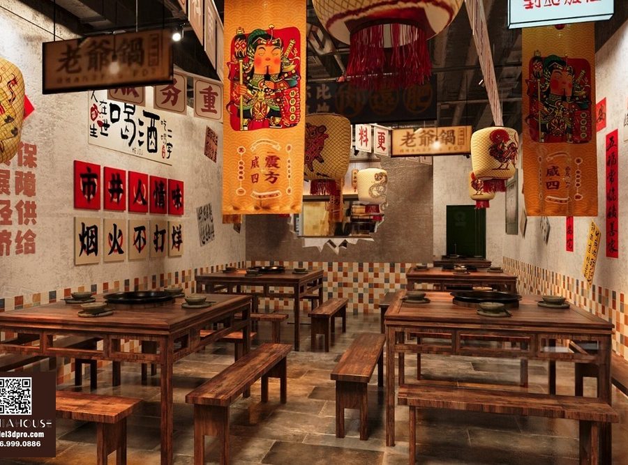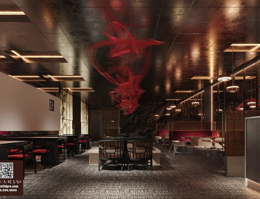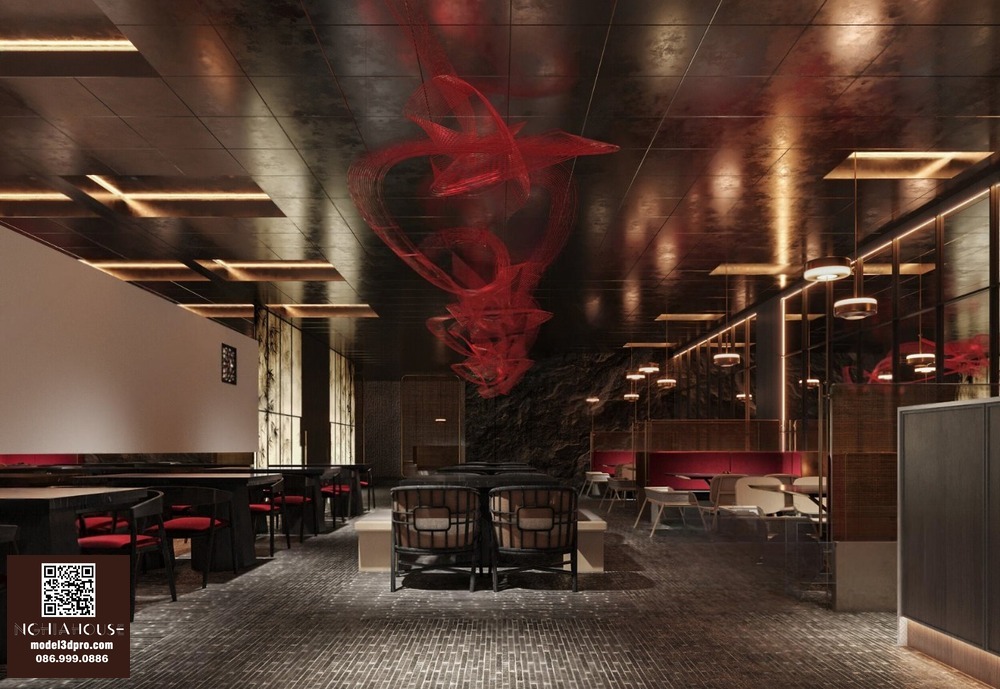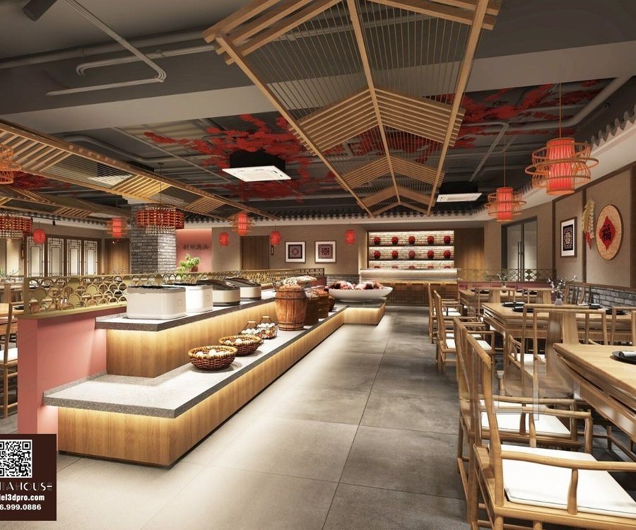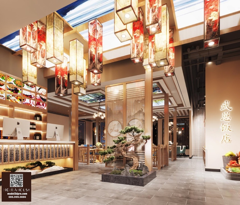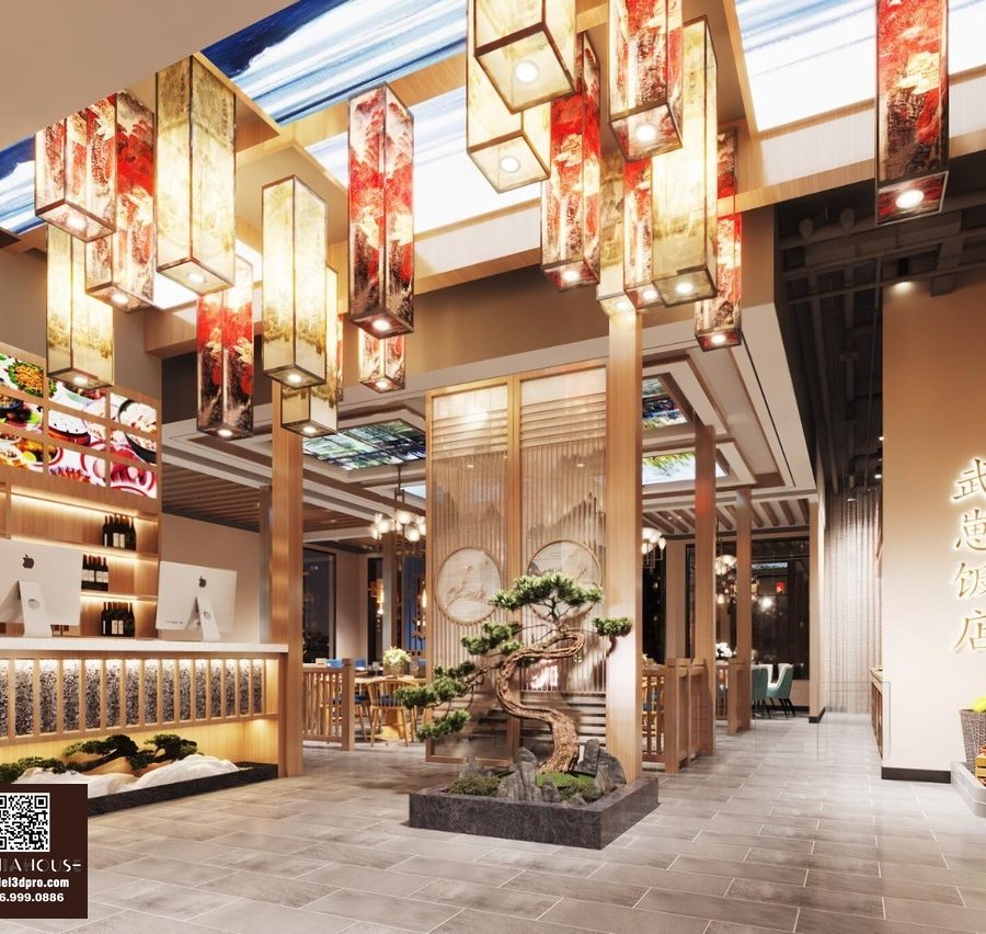 Modern Asian Style Dining Room with Artistic Ceiling Decoration_HJI4803711881809