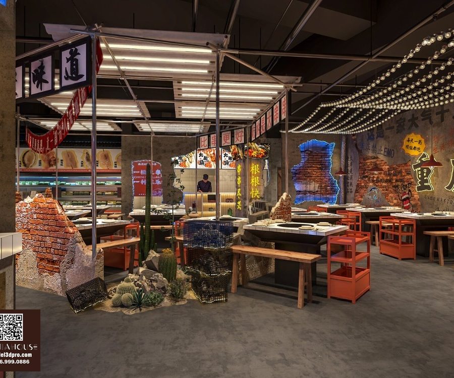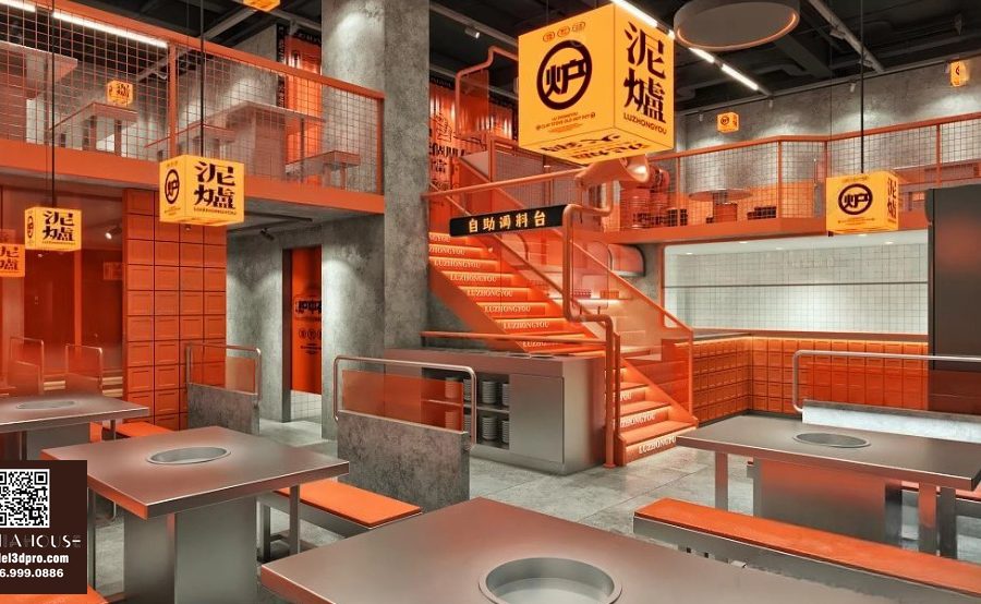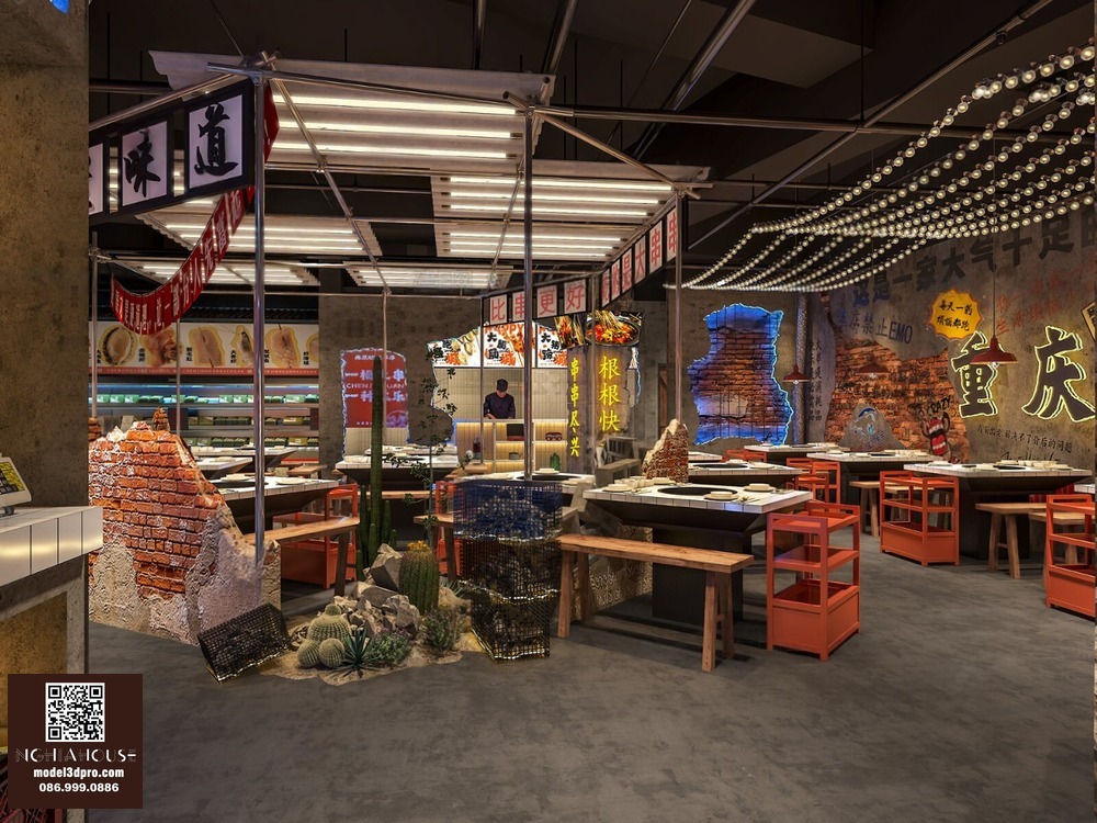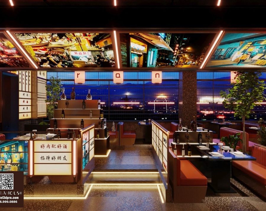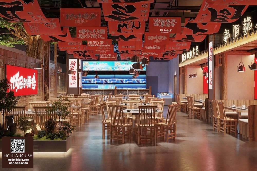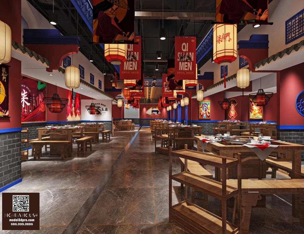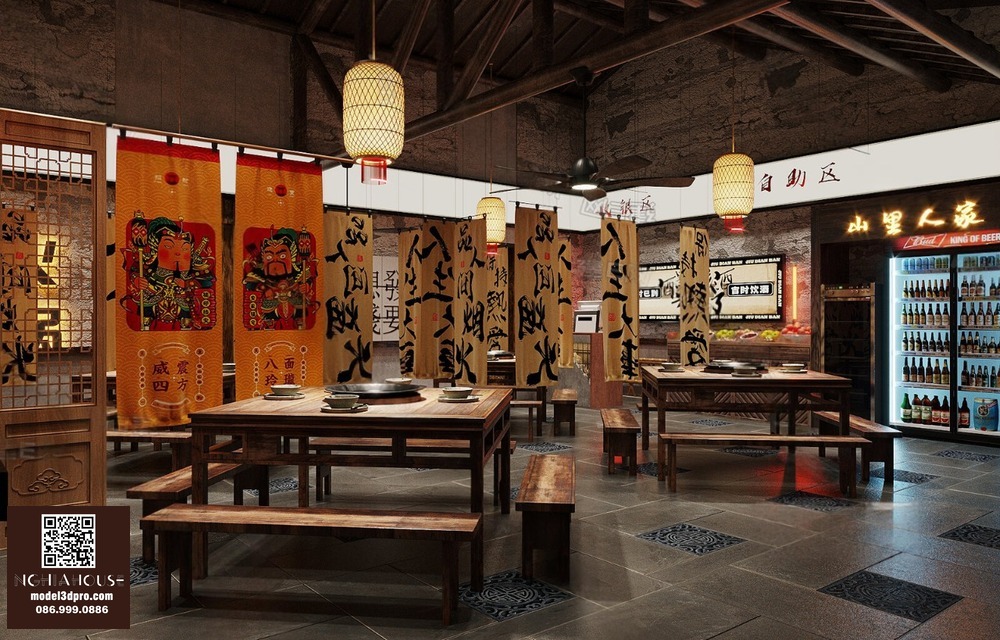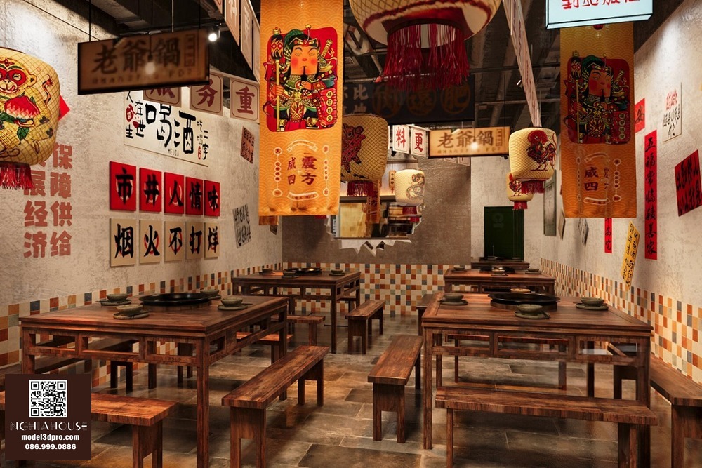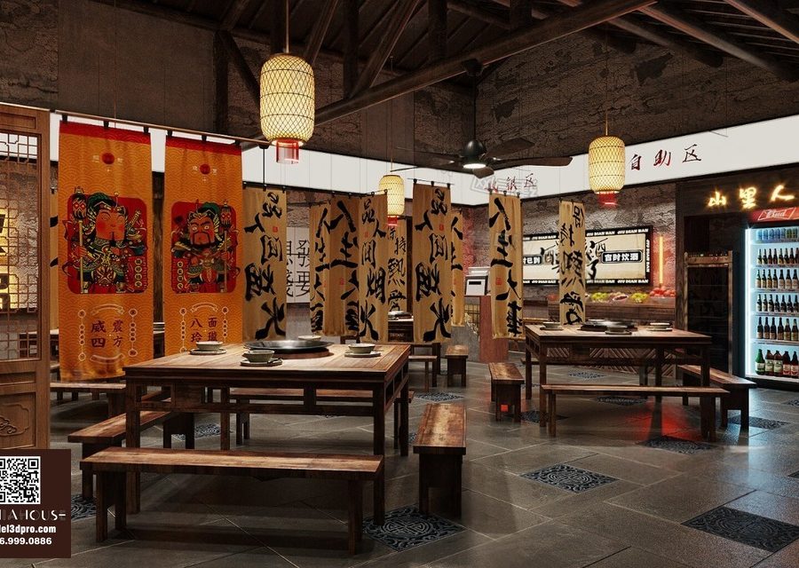 Modern Asian Style Dining Room with Artistic Ceiling Decoration_HJI4803711881809
