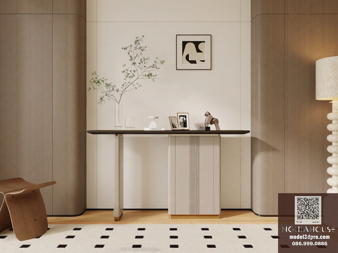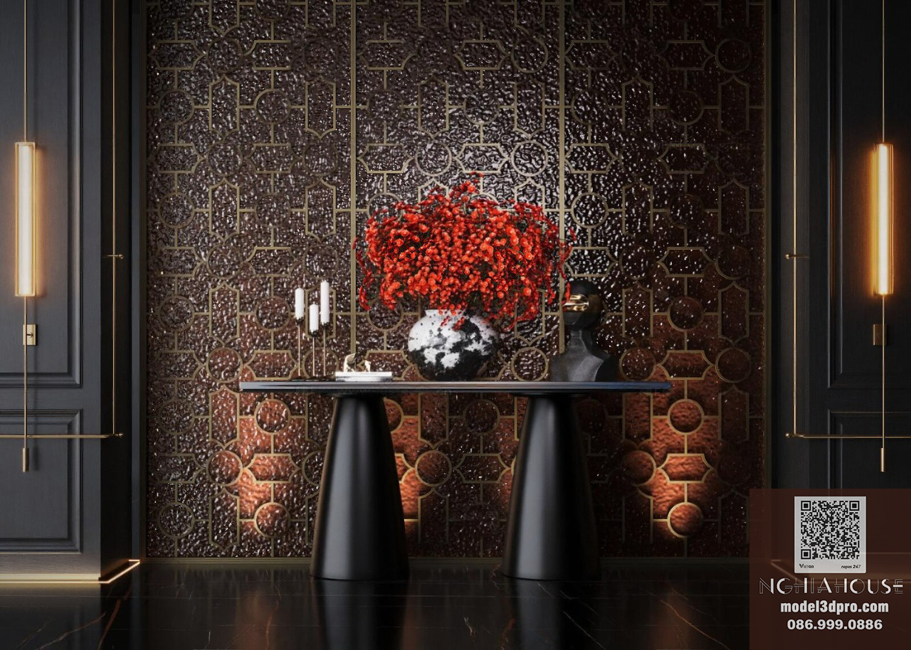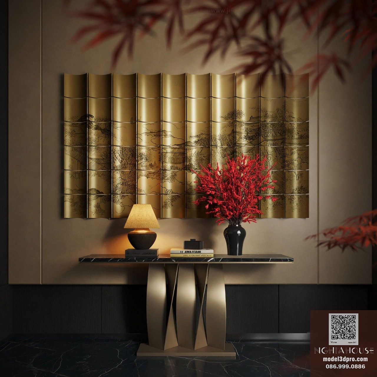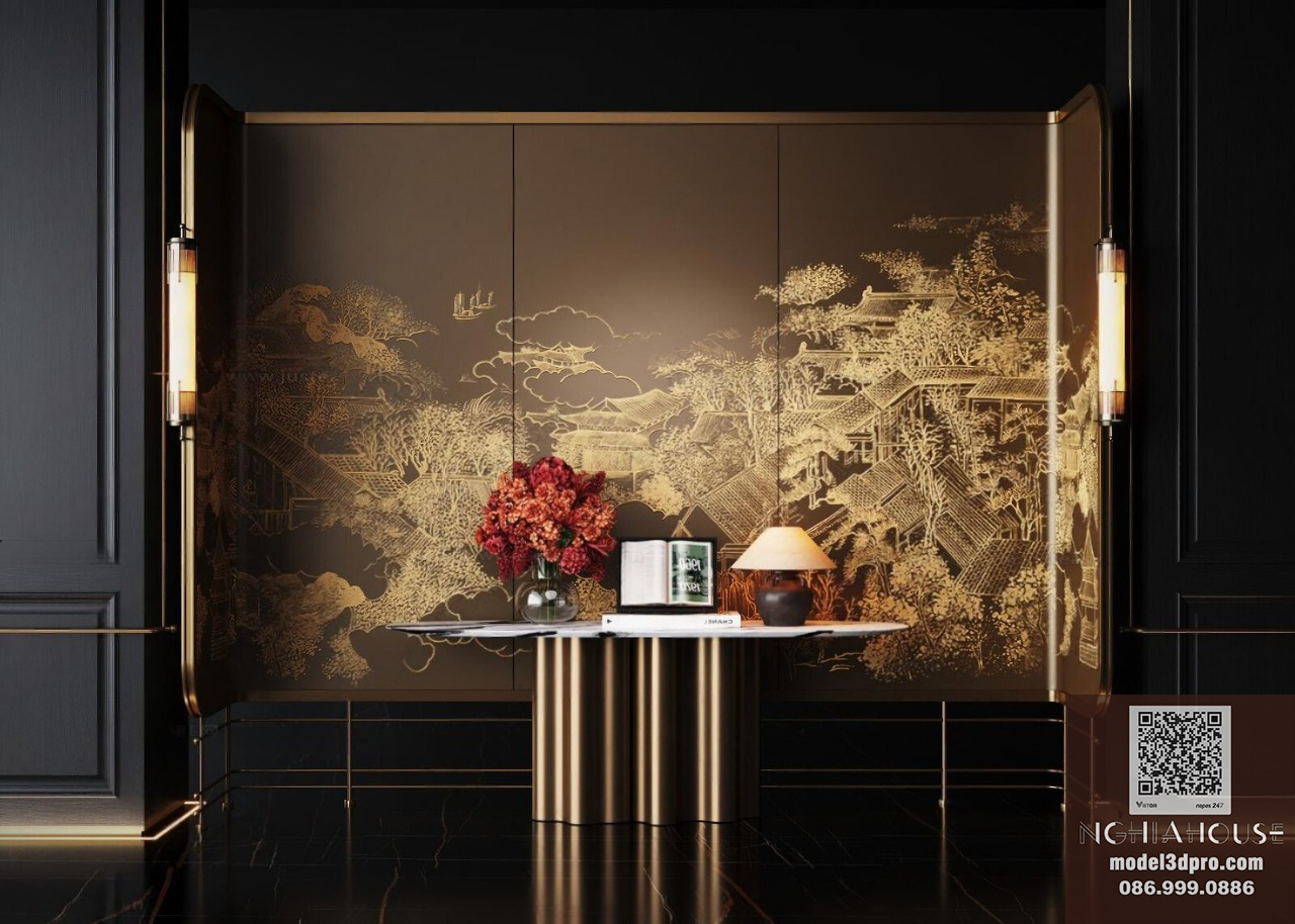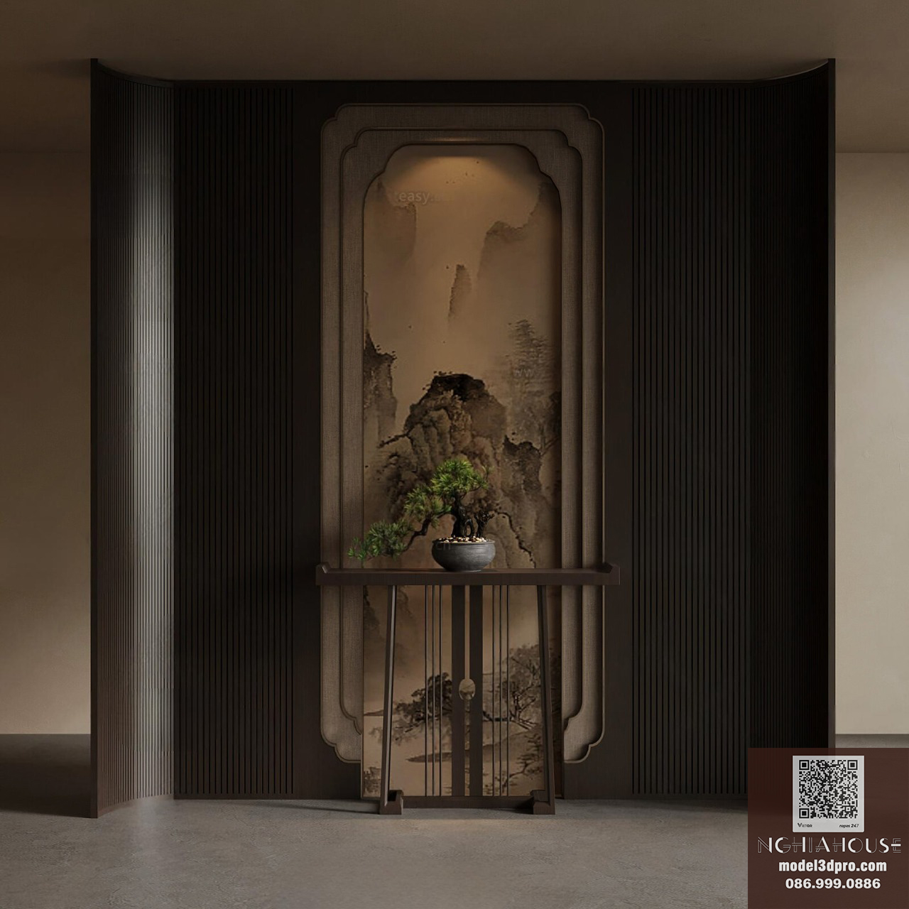 3D Model Asian Style Console Table Interior with Decorative Partition_107767822