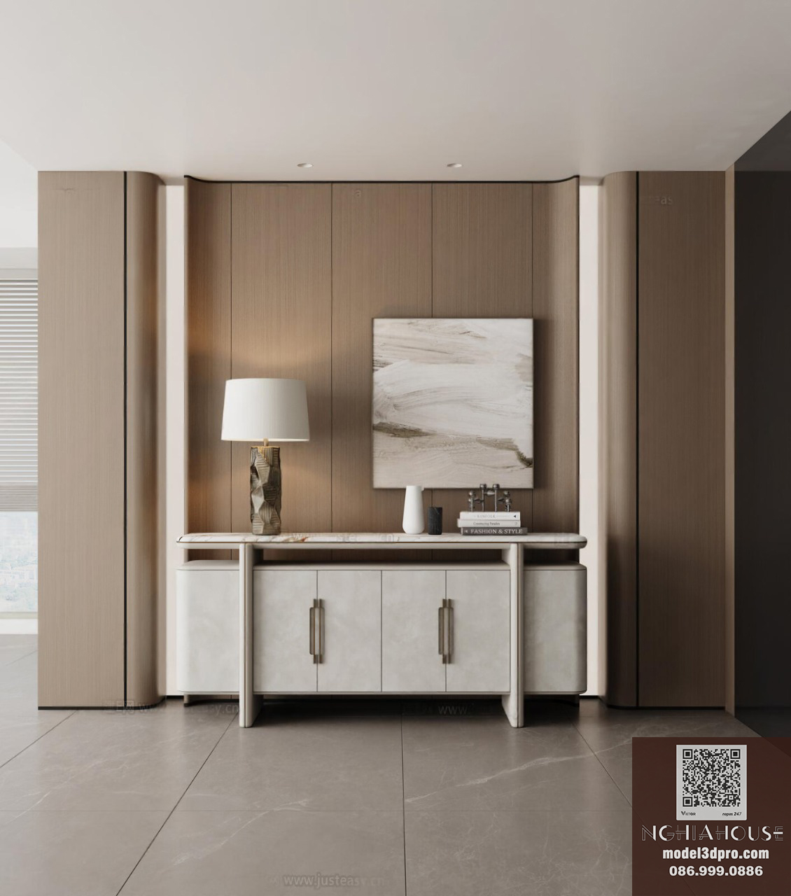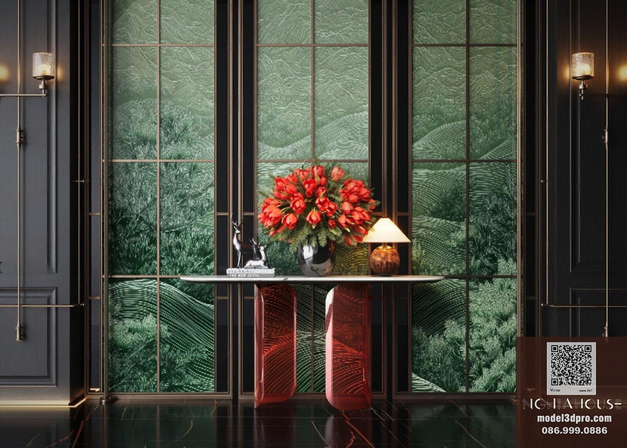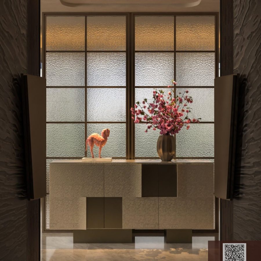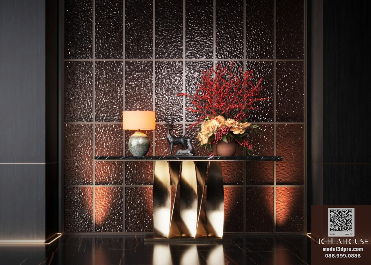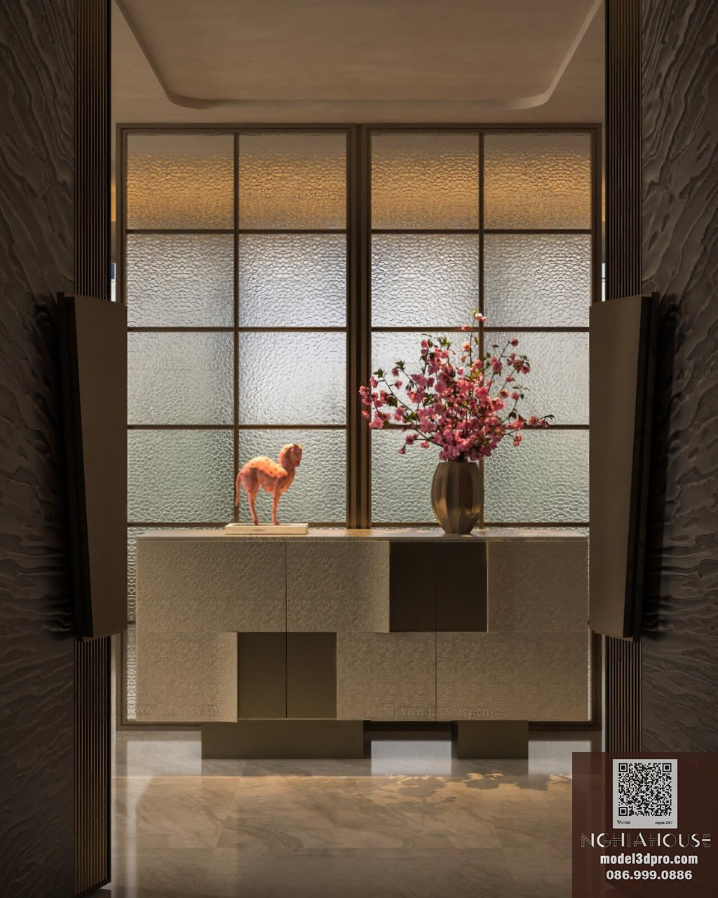 3D Model Asian Style Console Table Interior with Decorative Partition_107767822
