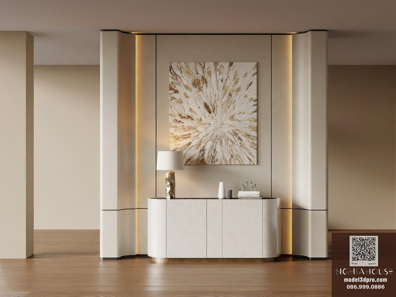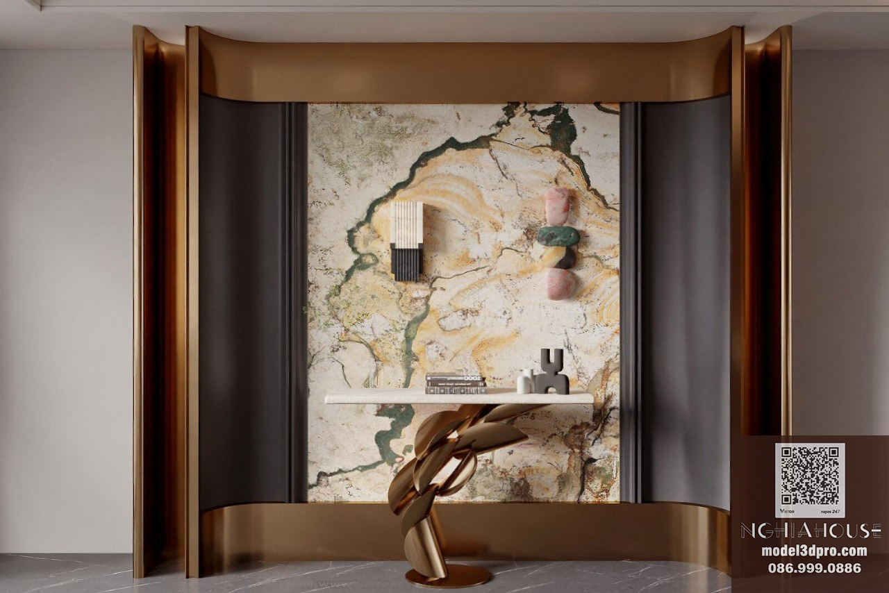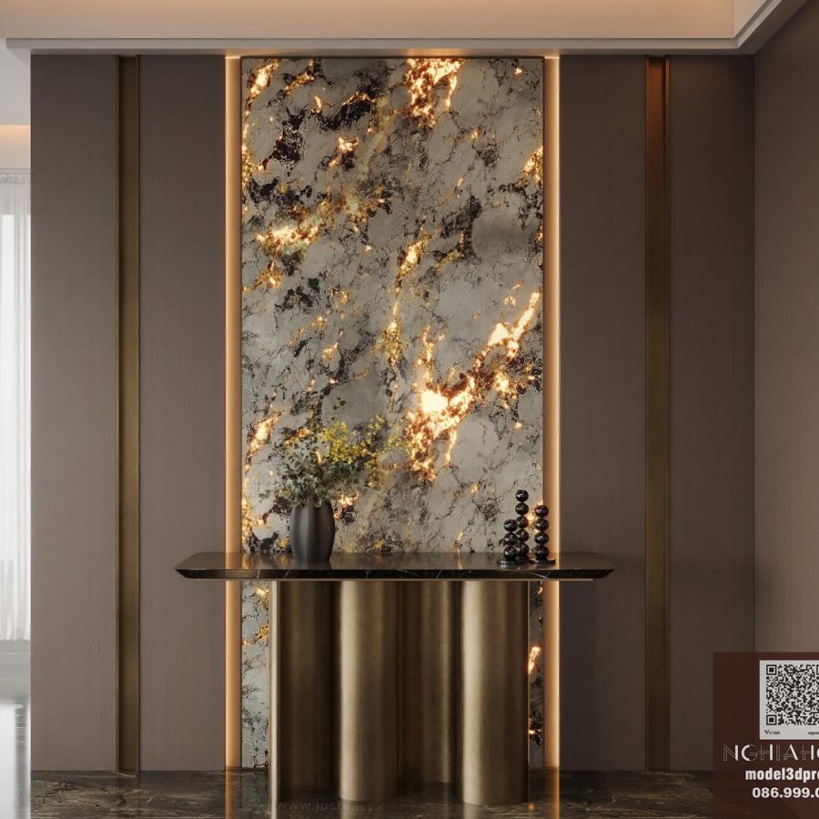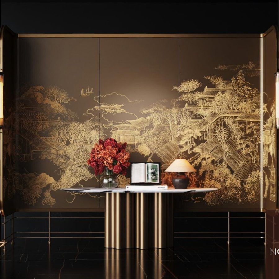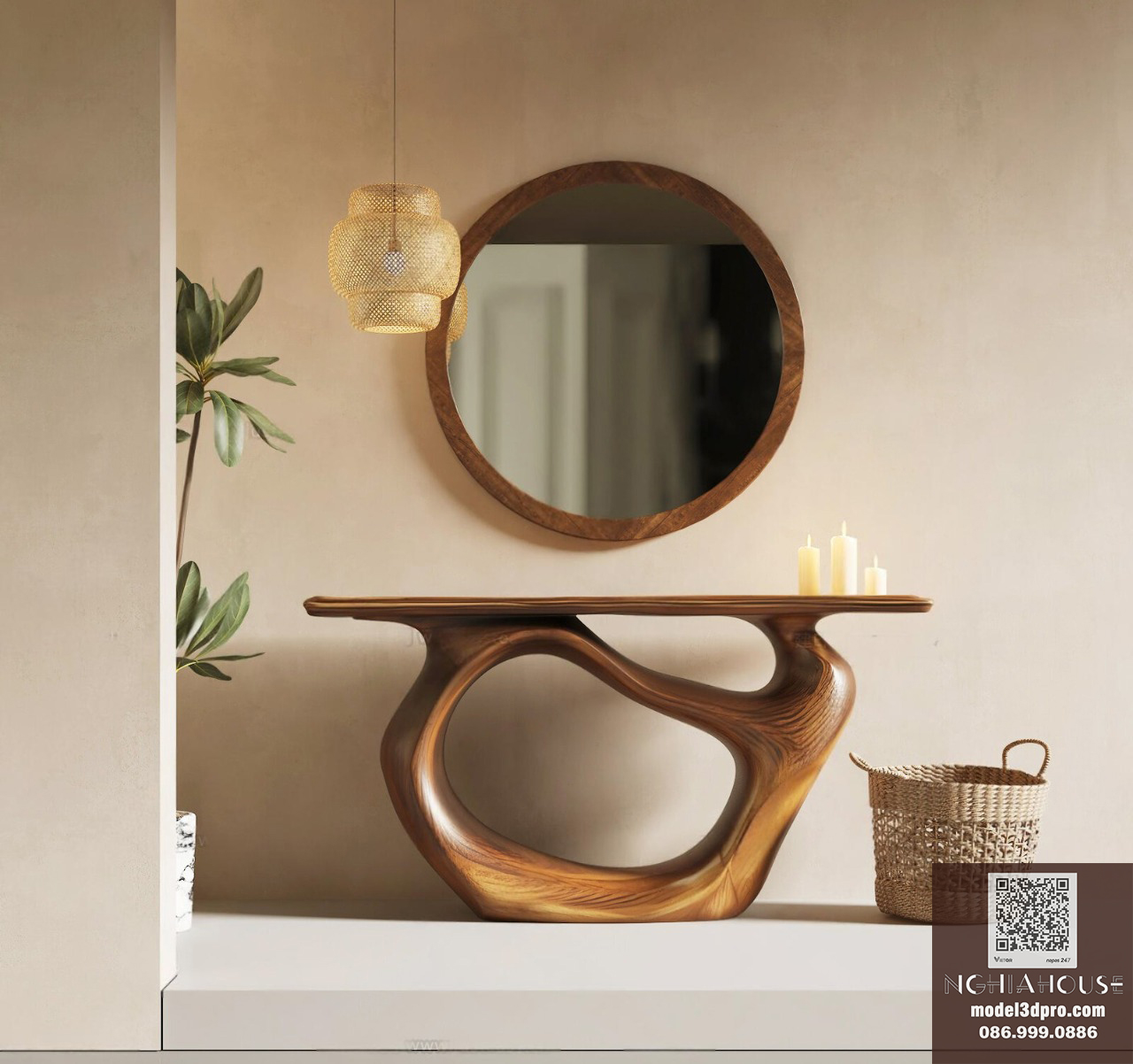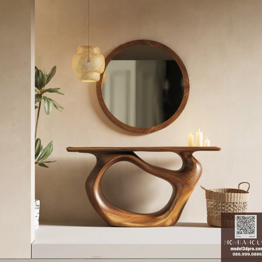 3D Model Asian Style Console Table Interior with Decorative Partition_107767822