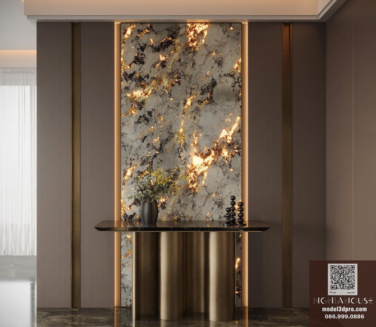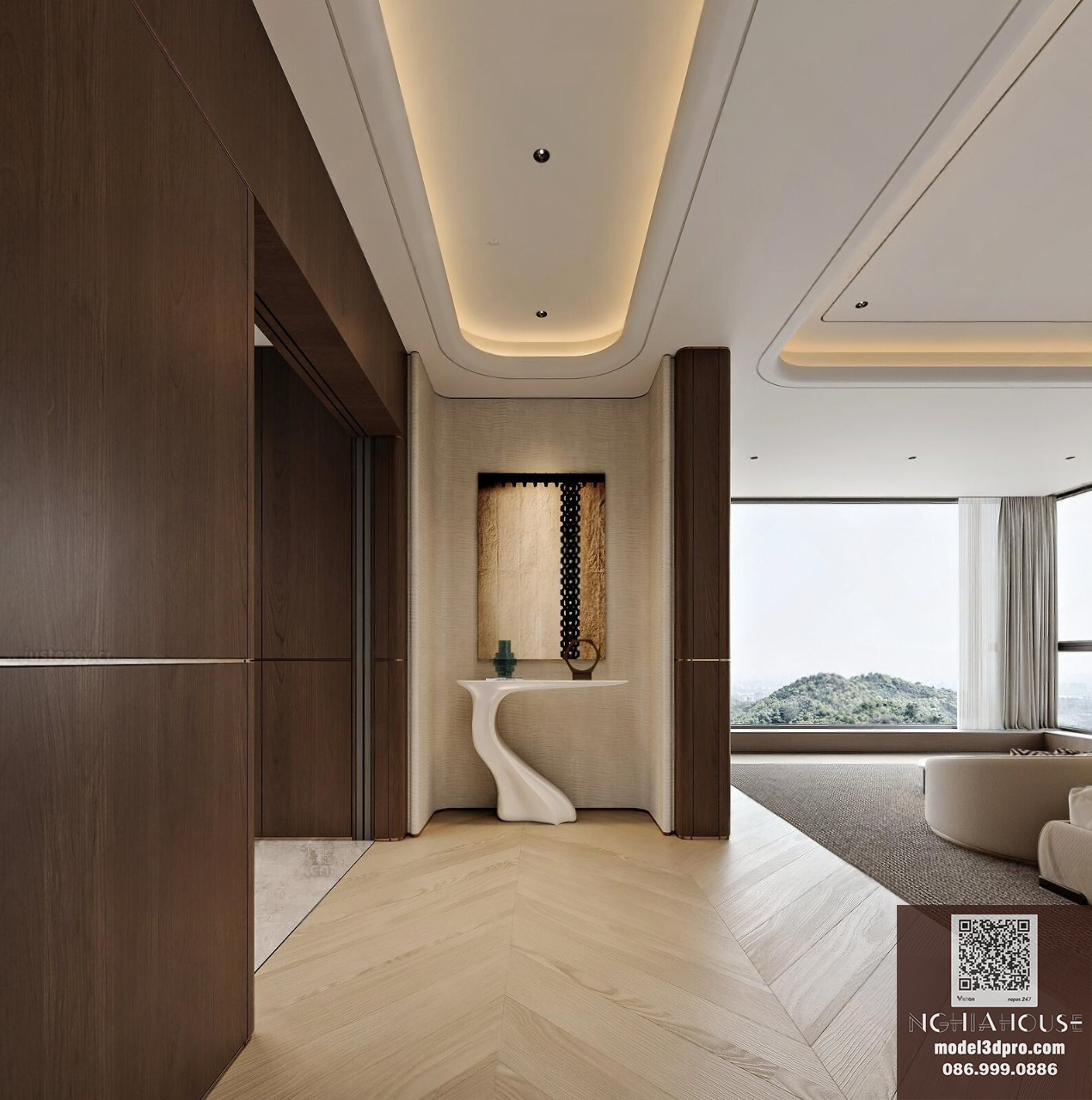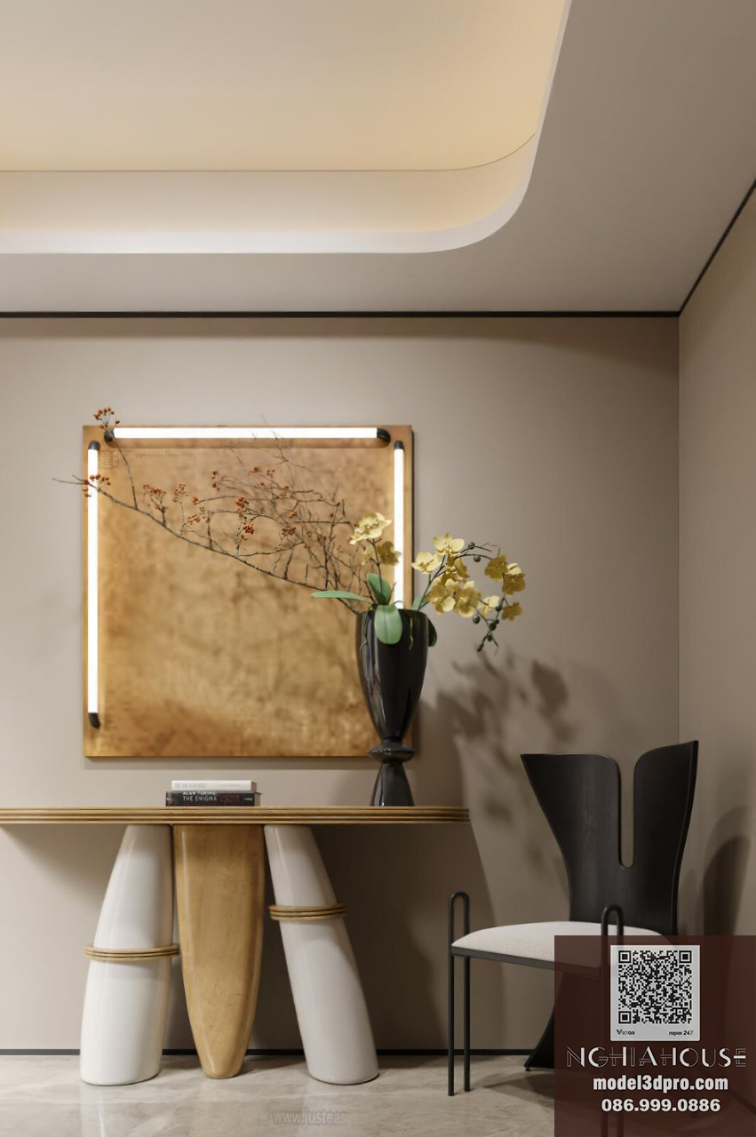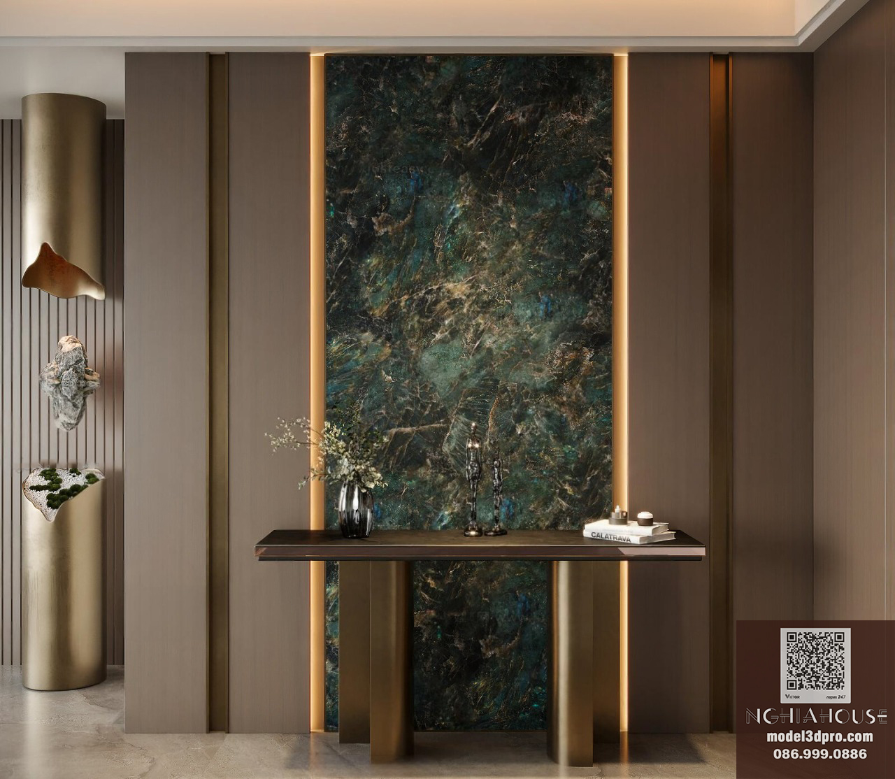 3D Model Asian Style Console Table Interior with Decorative Partition_107767822