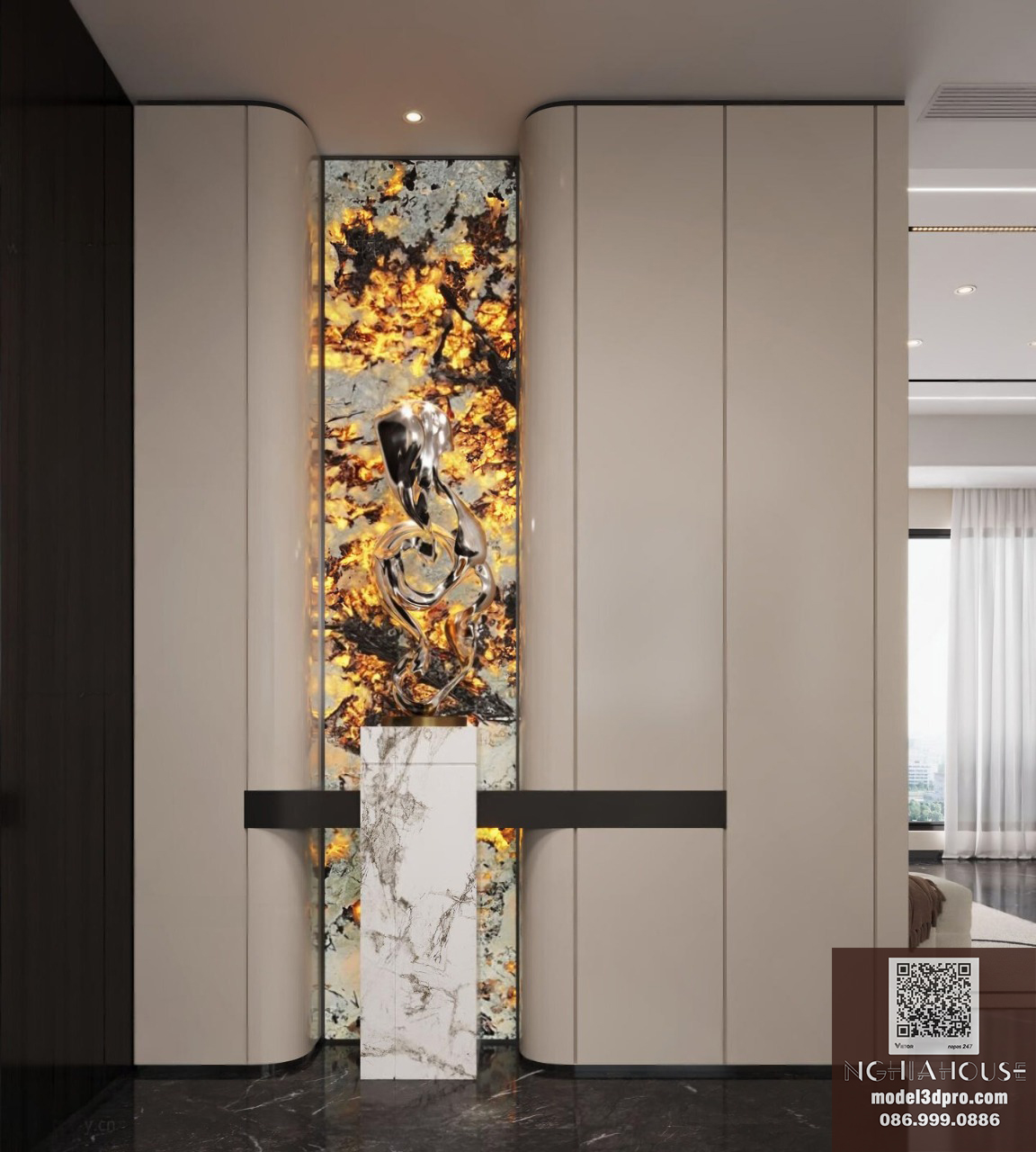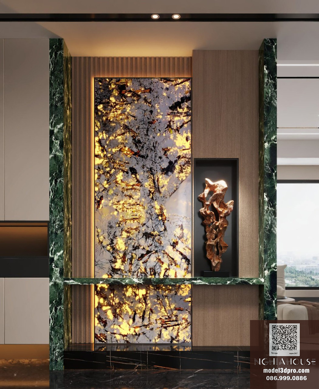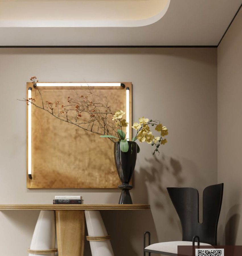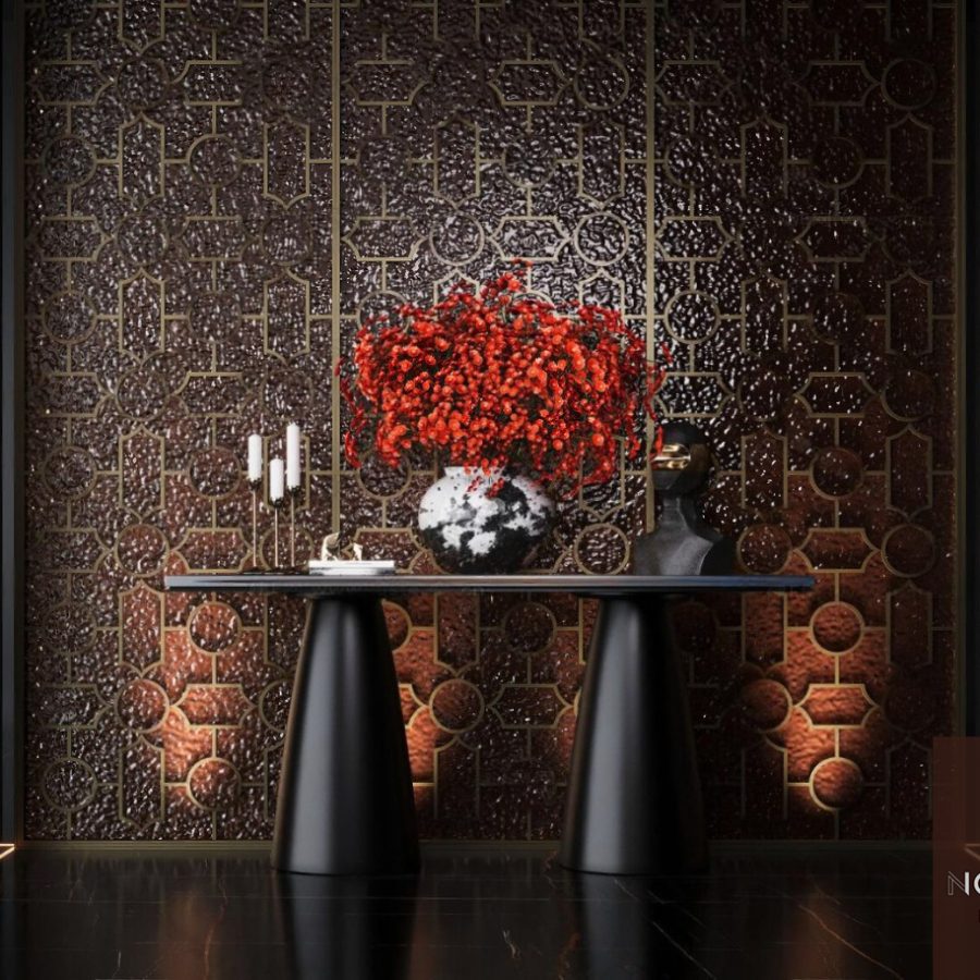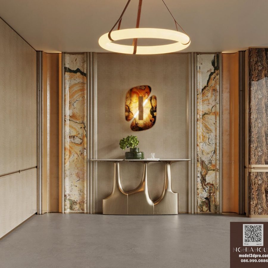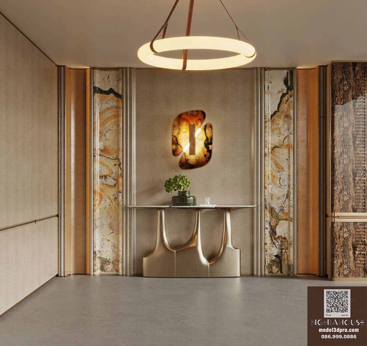 3D Model Asian Style Console Table Interior with Decorative Partition_107767822