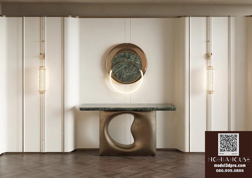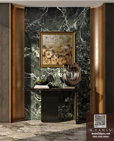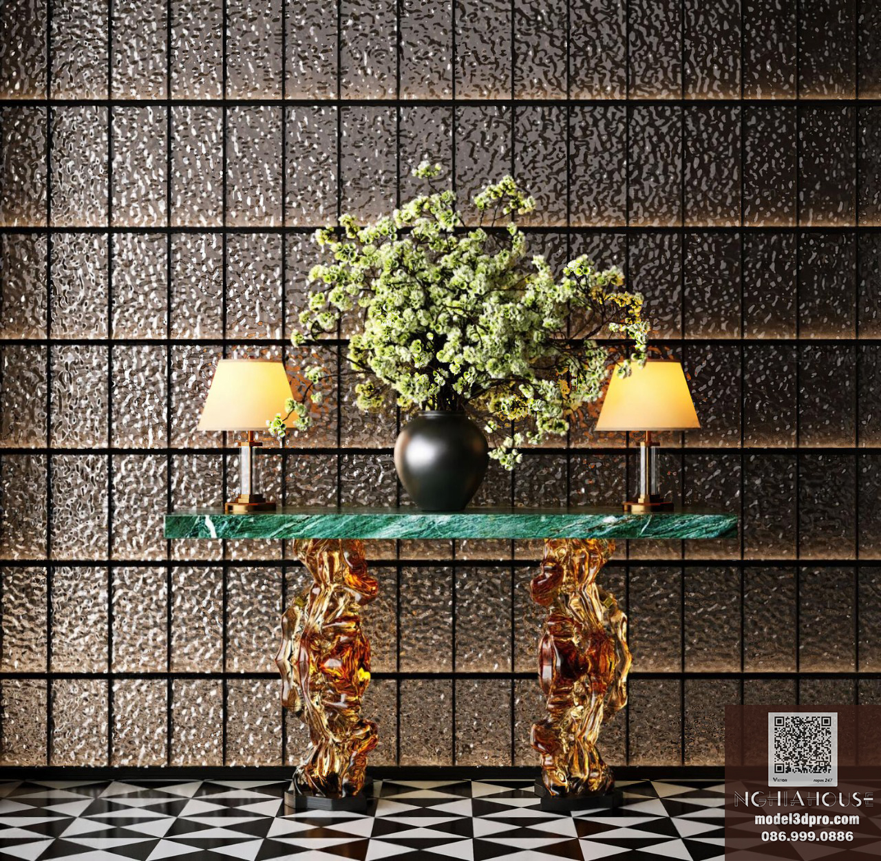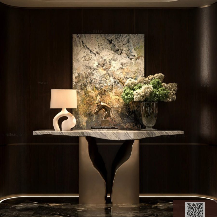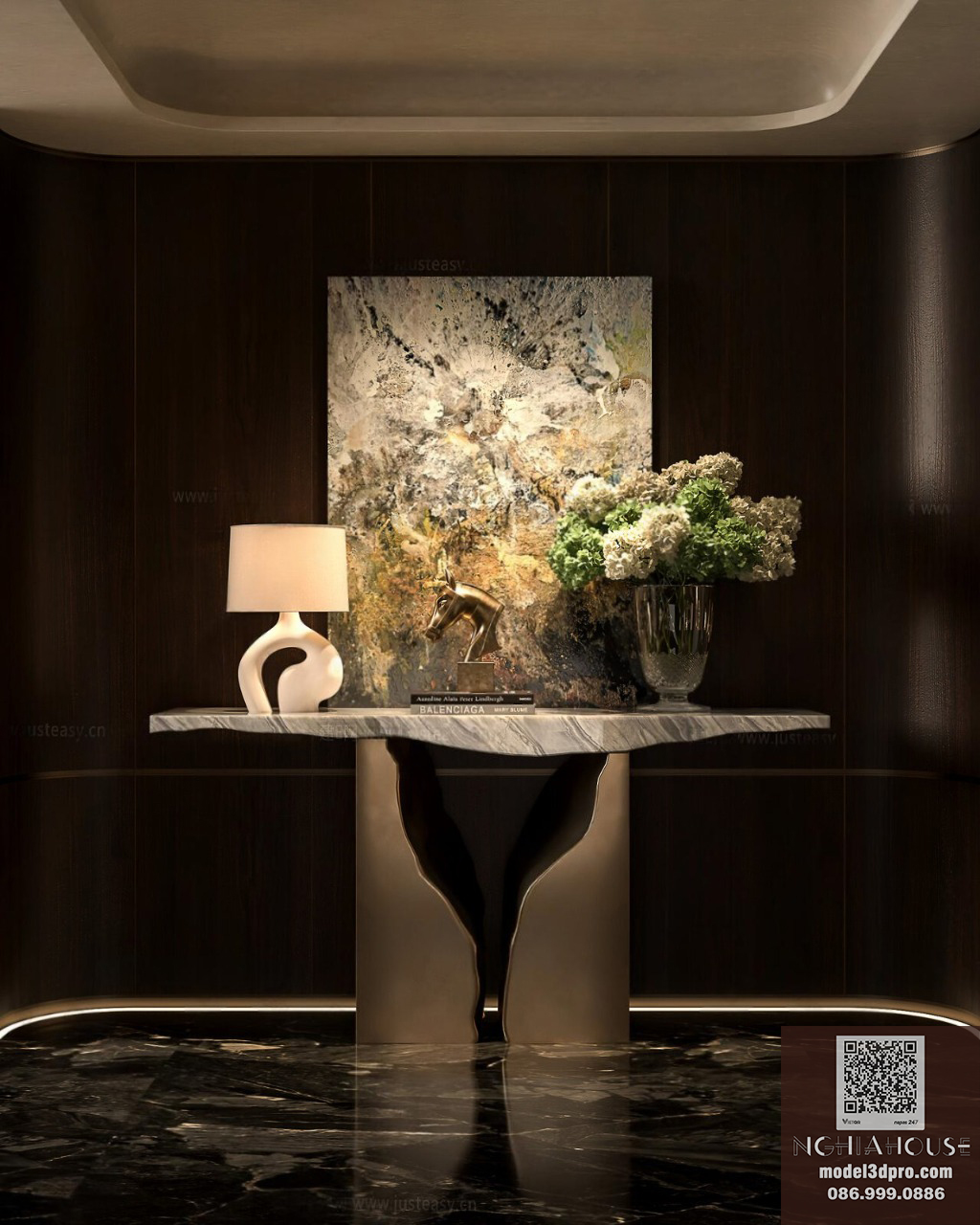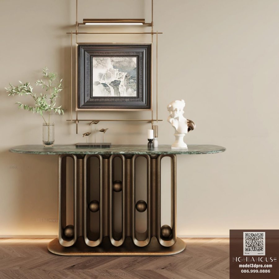3D Model Luxury Console Table with Decorative Lamp, Sculpture and Vase_112289578