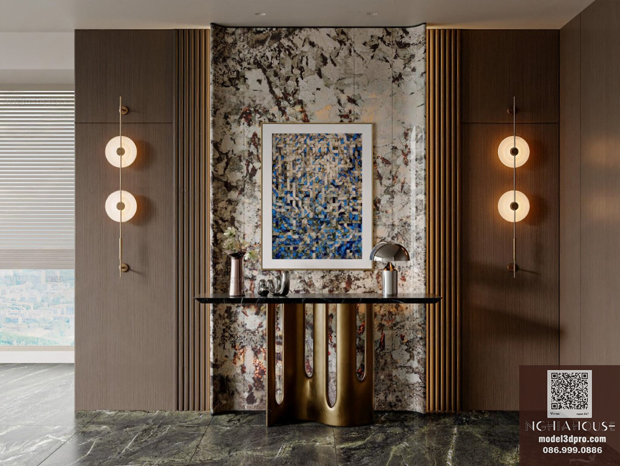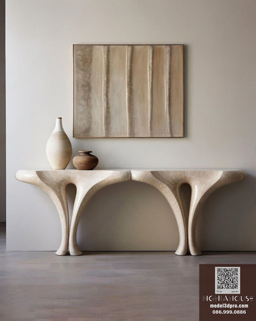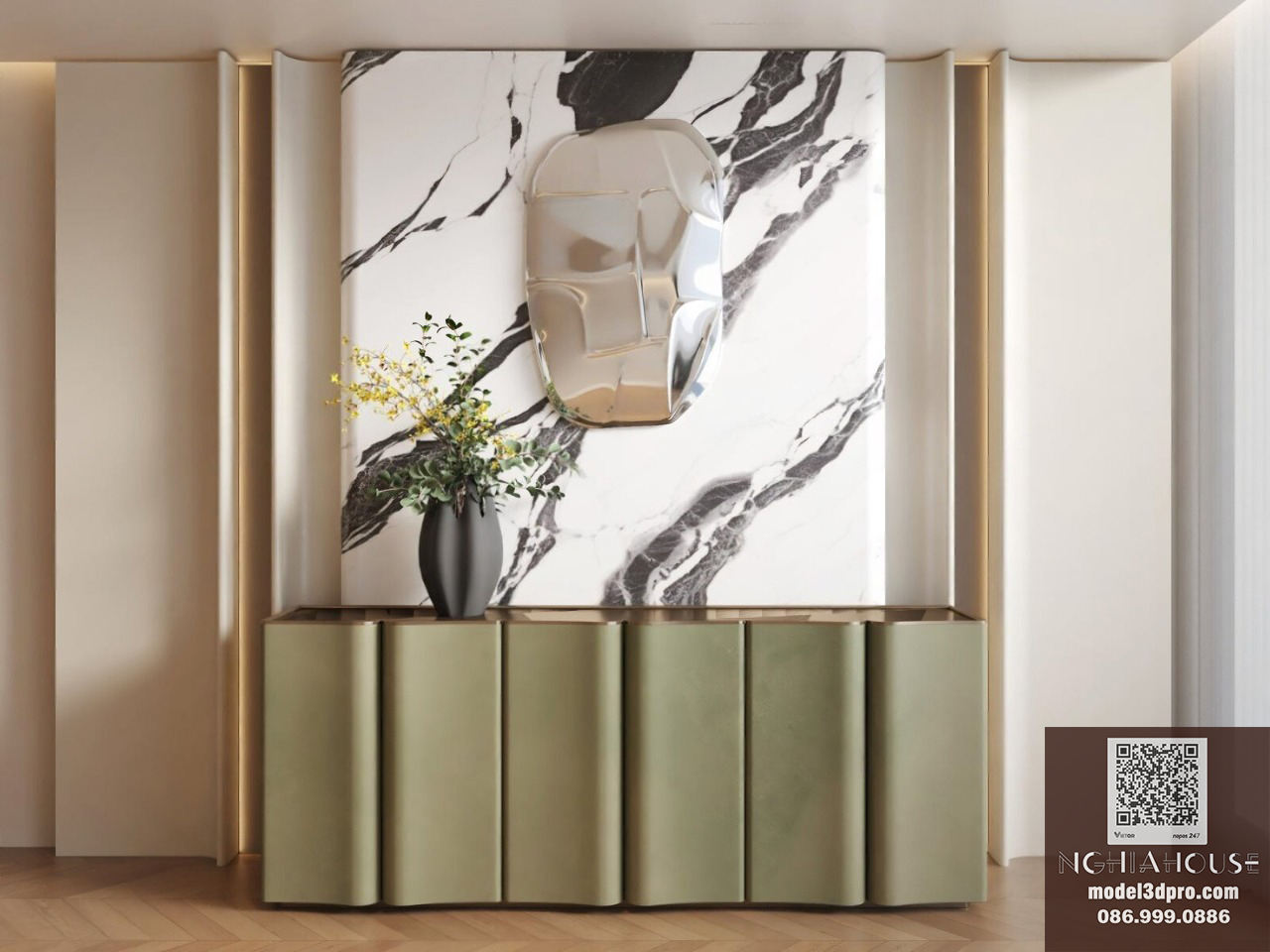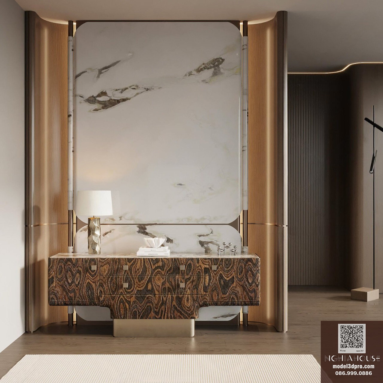 3D Model Luxury Console Table with Decorative Lamp, Sculpture and Vase_112289578