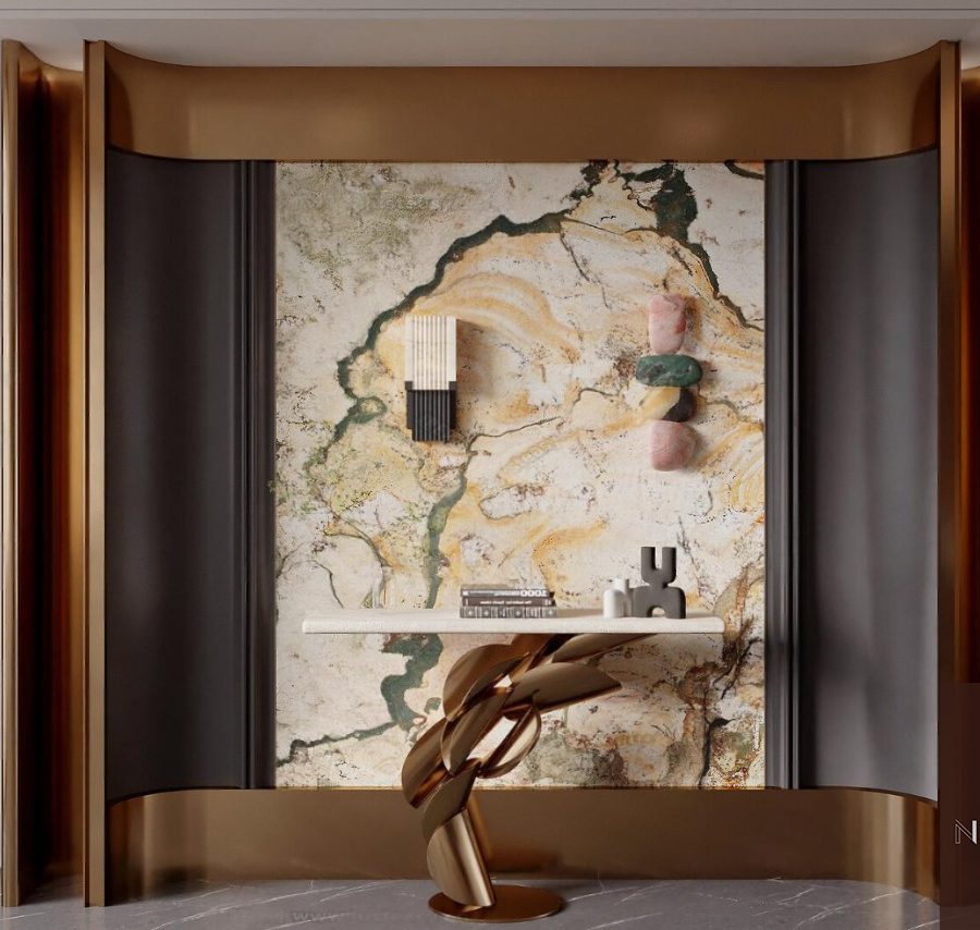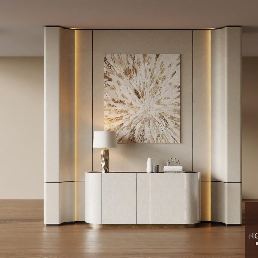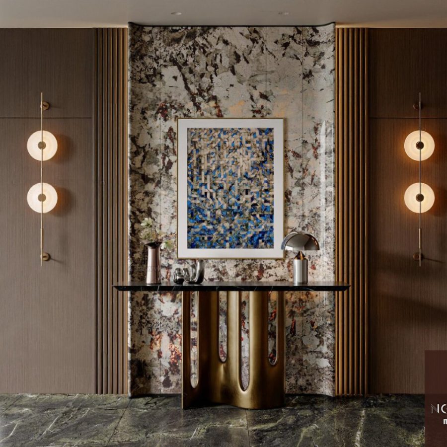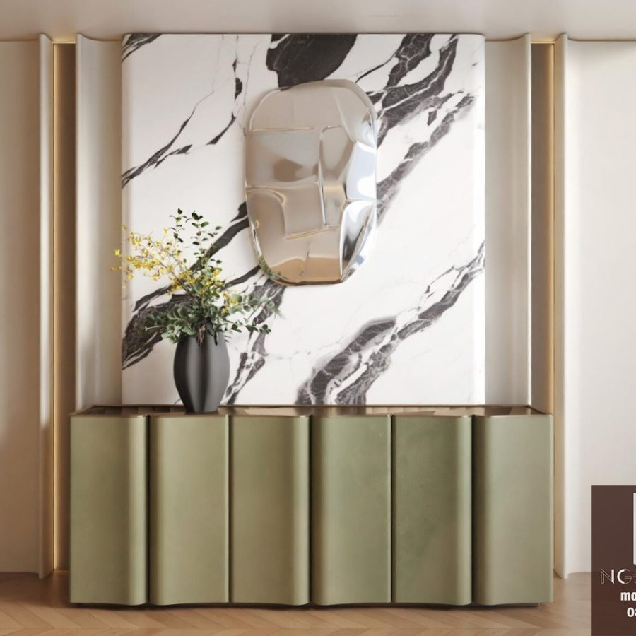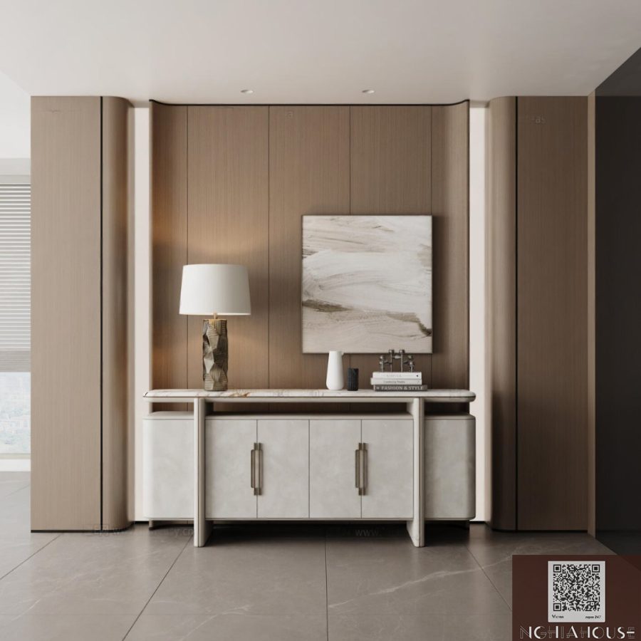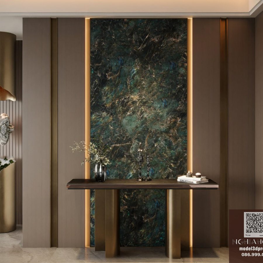 3D Model Luxury Console Table with Decorative Lamp, Sculpture and Vase_112289578