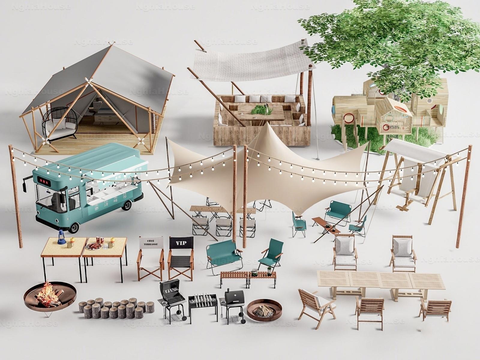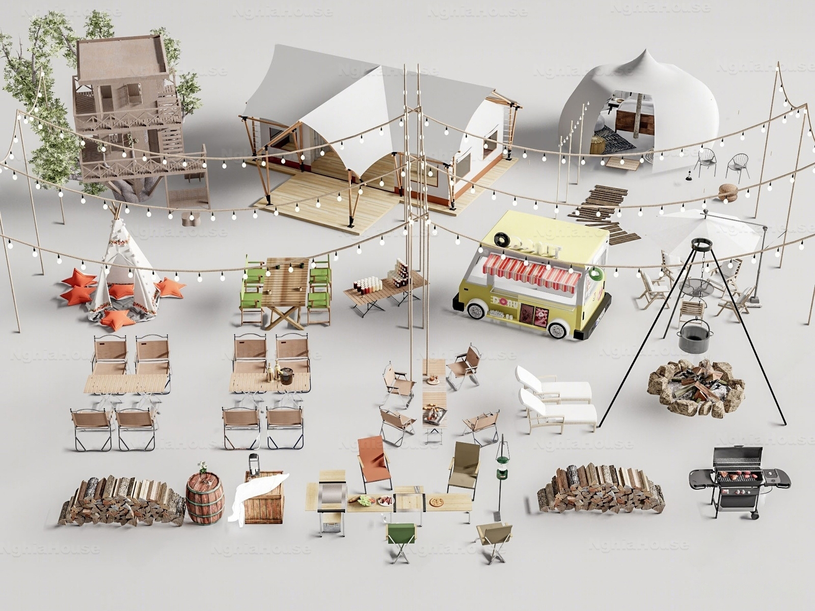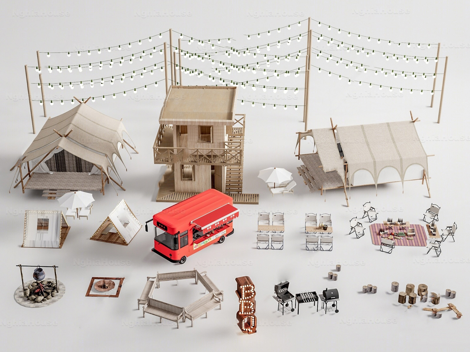 Set 30 Models Camping & Glamping Scene 3D Models Pack – 30 Outdoor Furniture Assets for 3ds Max N96