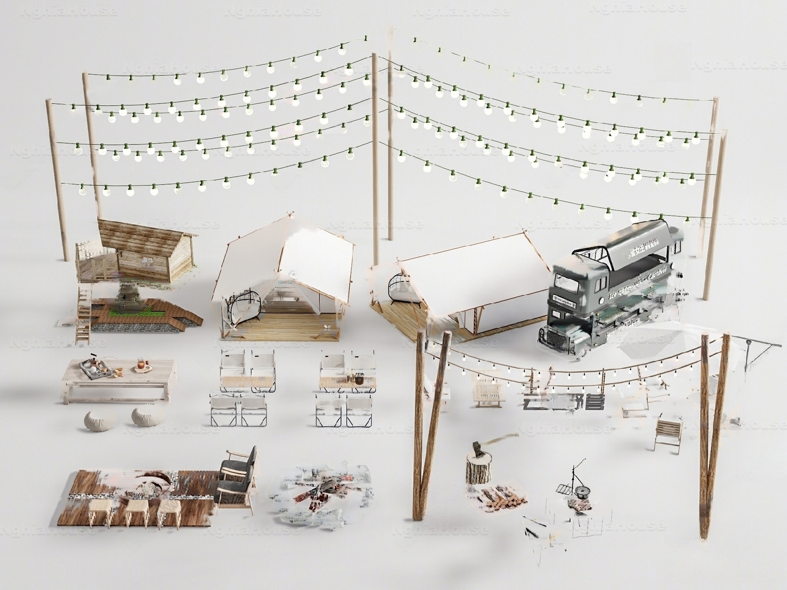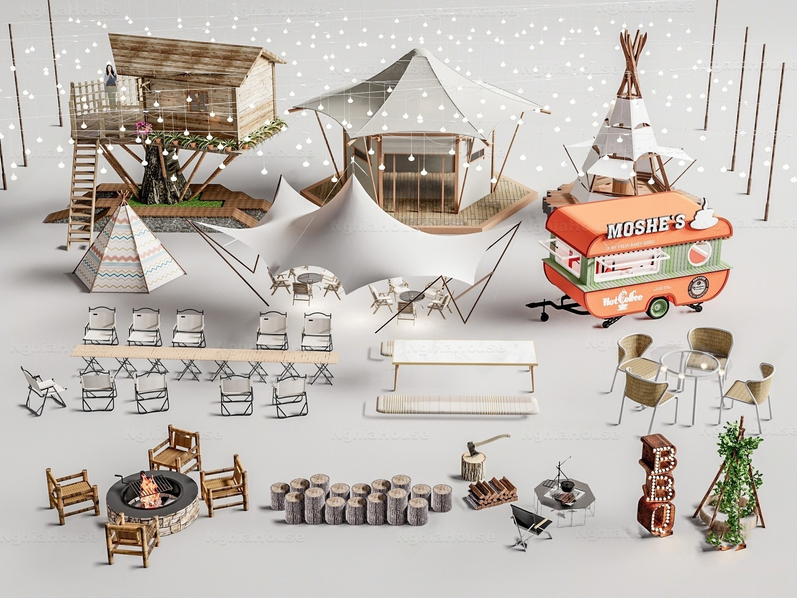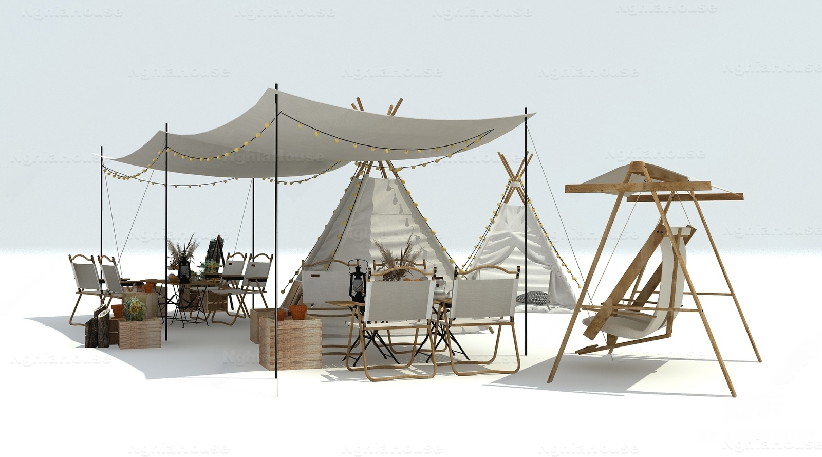 Set 30 Models Camping & Glamping Scene 3D Models Pack – 30 Outdoor Furniture Assets for 3ds Max N96