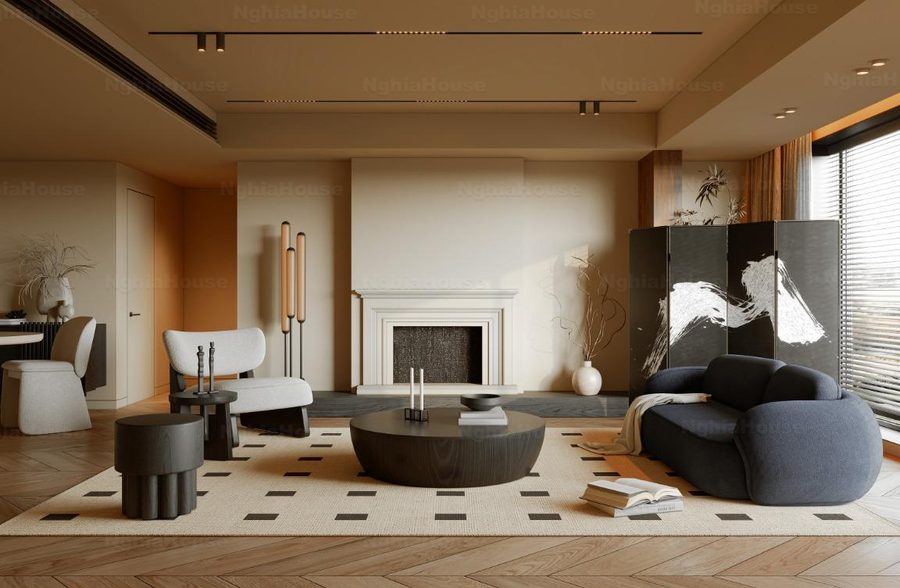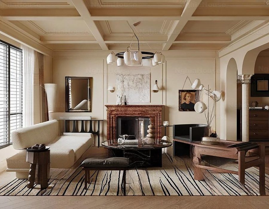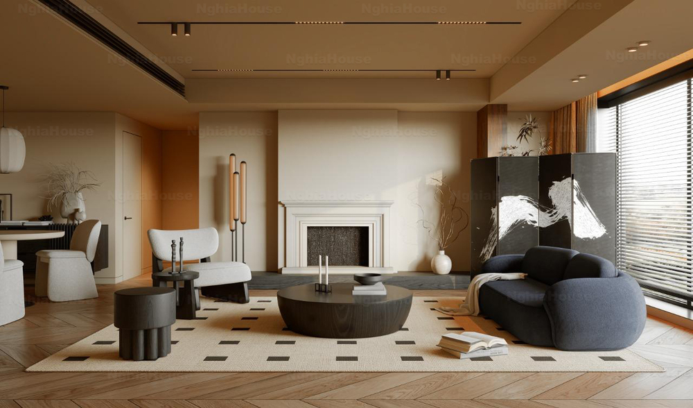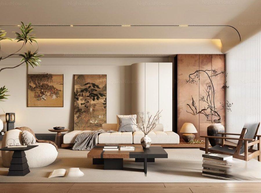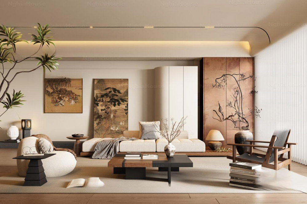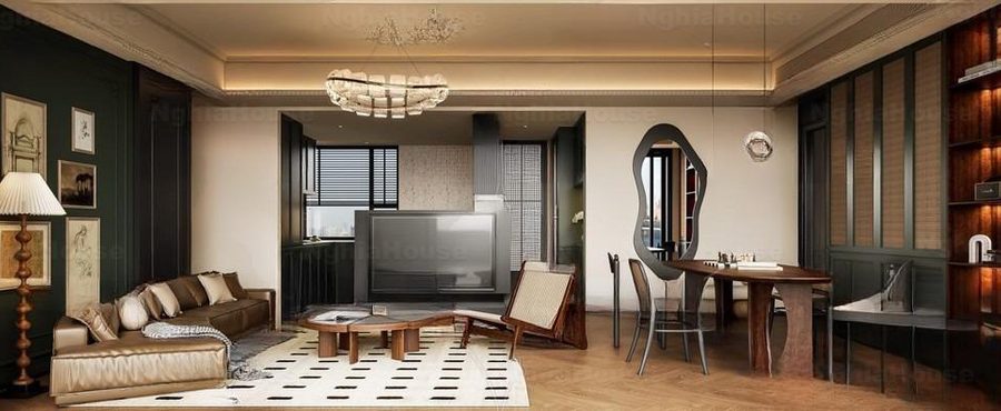 Modern Asian Style Dining Room with Artistic Ceiling Decoration_HJI4803711881809