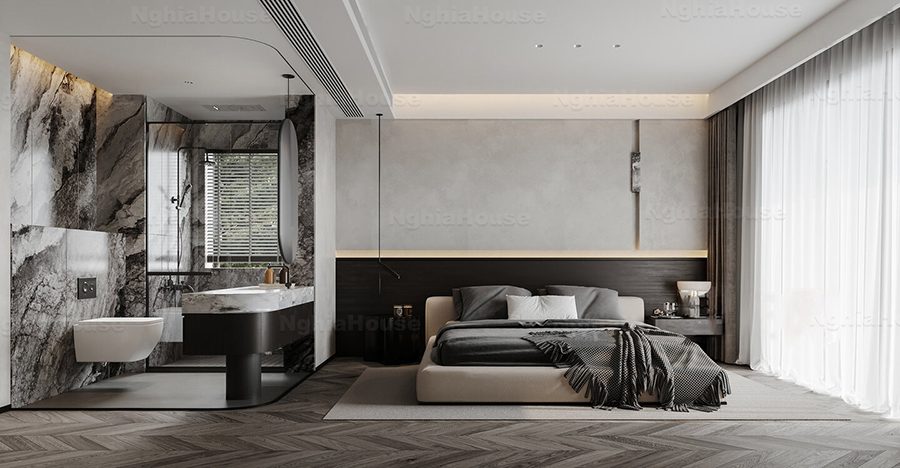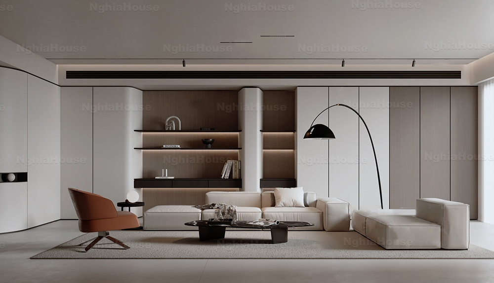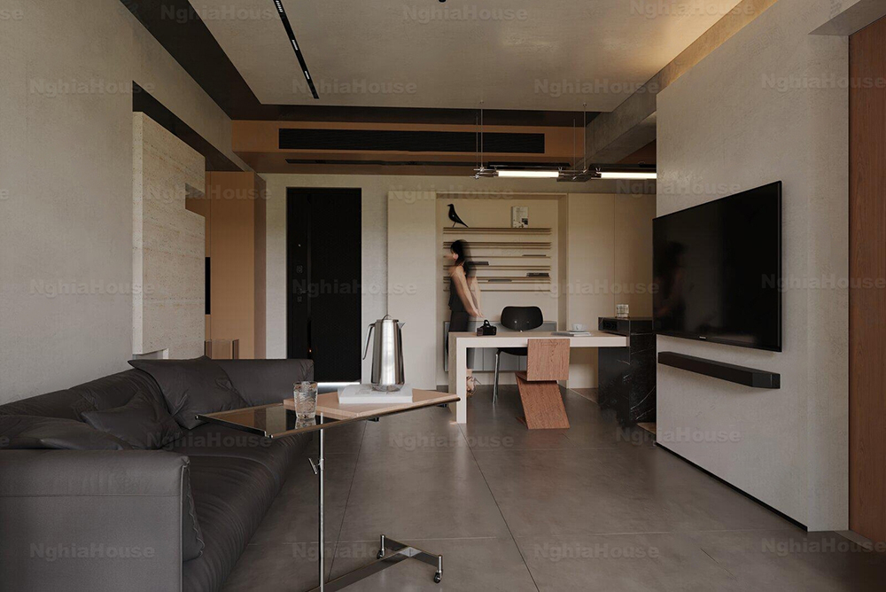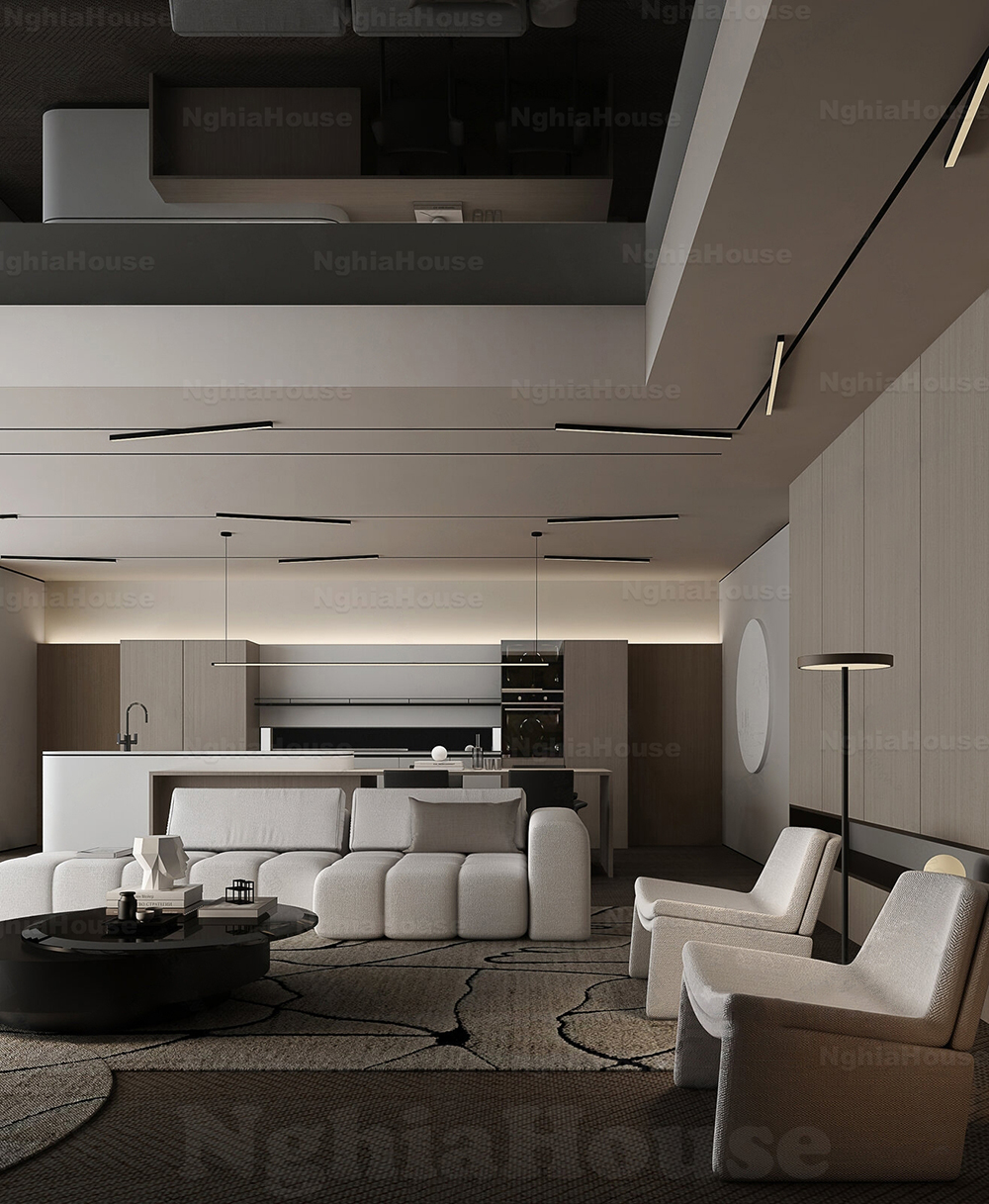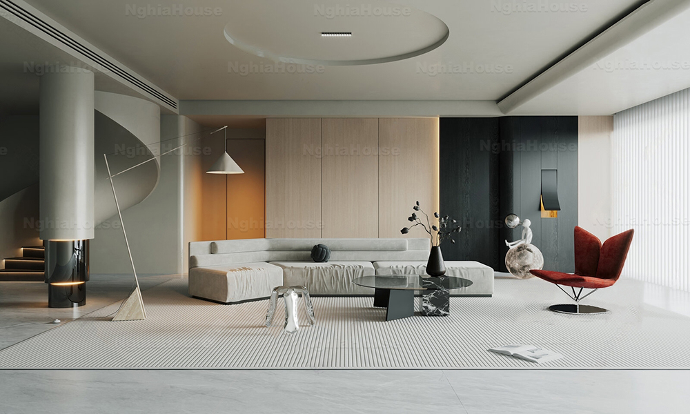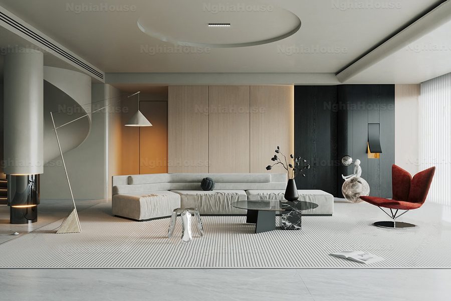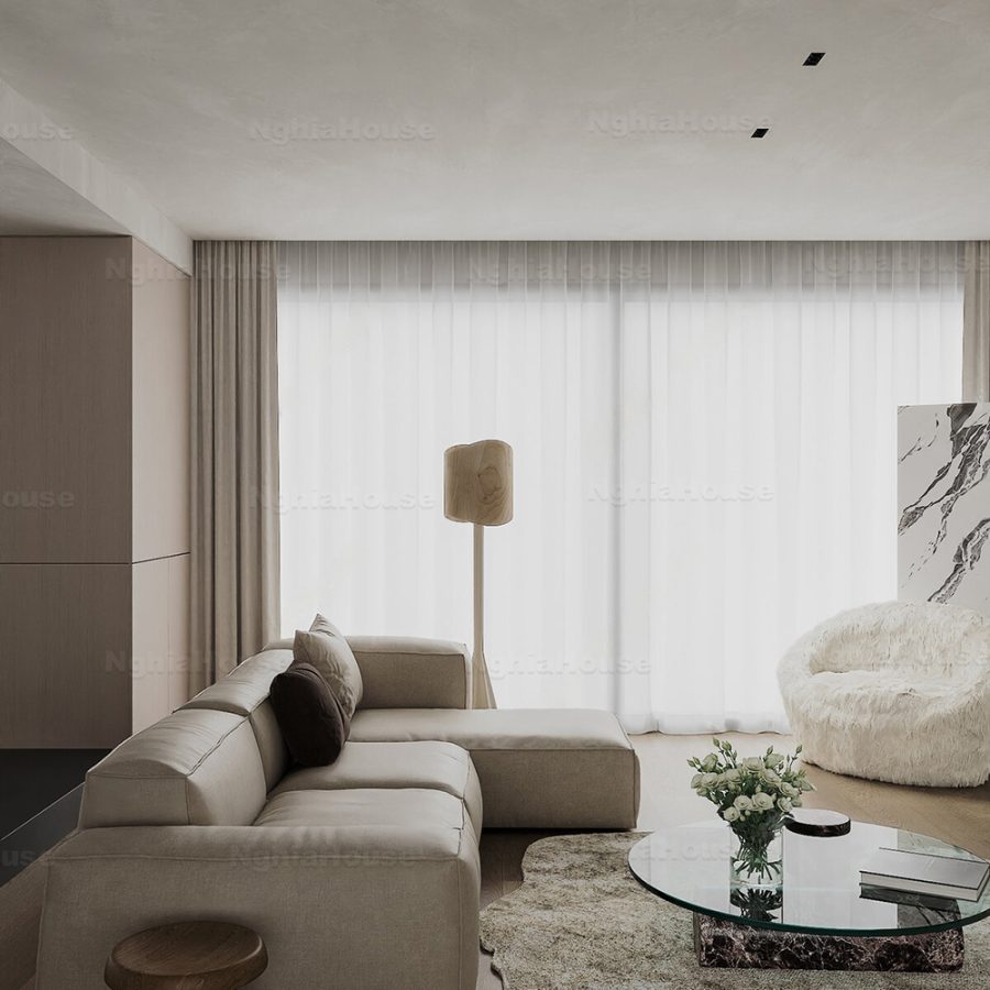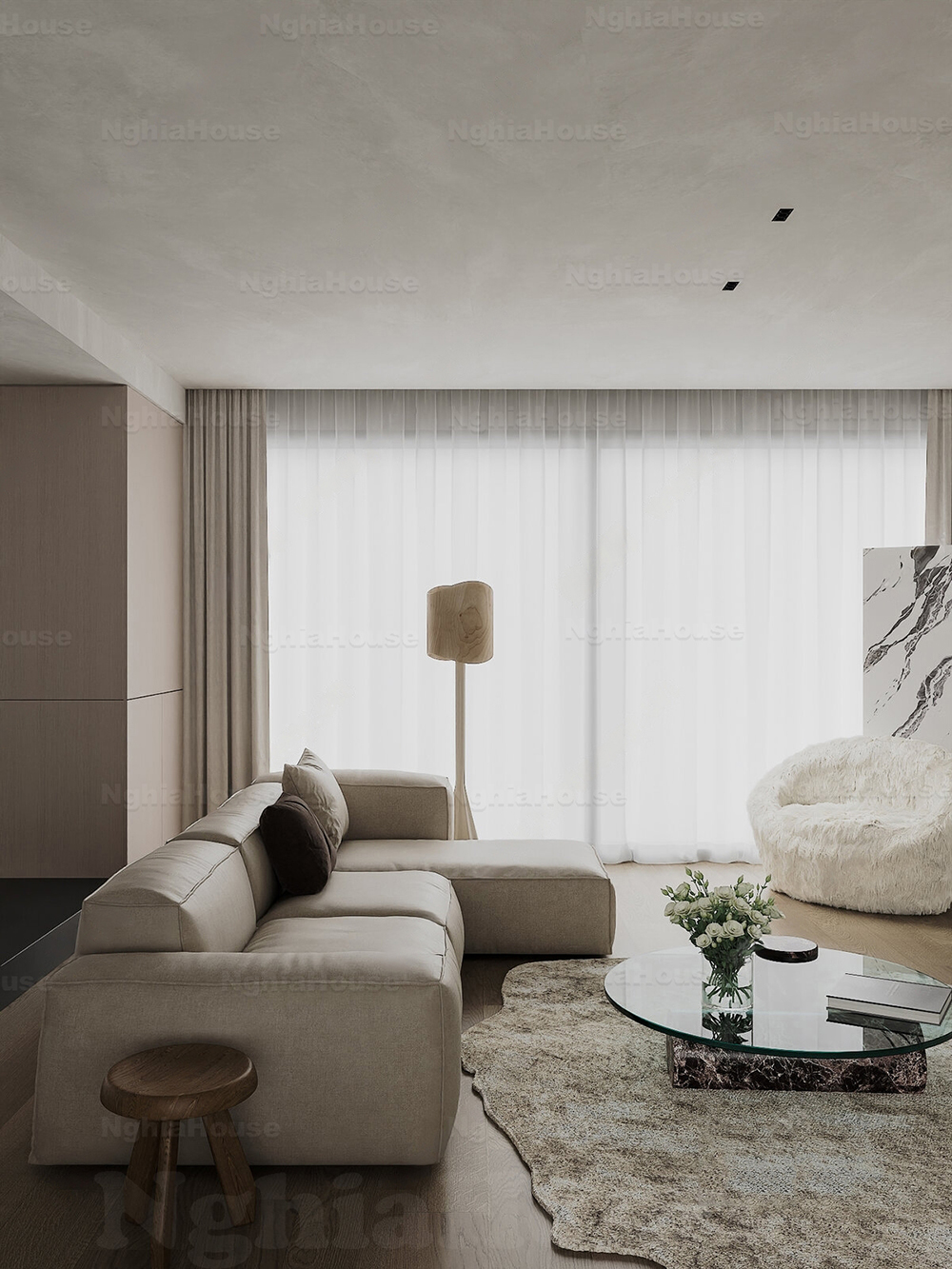 Luxury Modern Living Room with Marble Coffee Table and Black Sofa Set – 3D Model_IDC1118107877