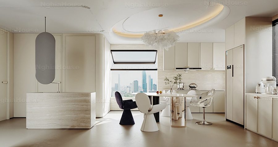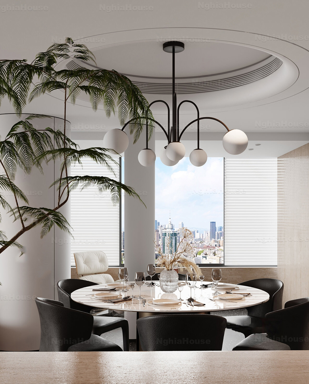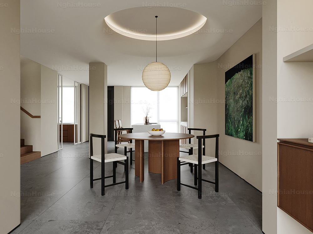 Modern Asian Style Dining Room with Artistic Ceiling Decoration_HJI4803711881809