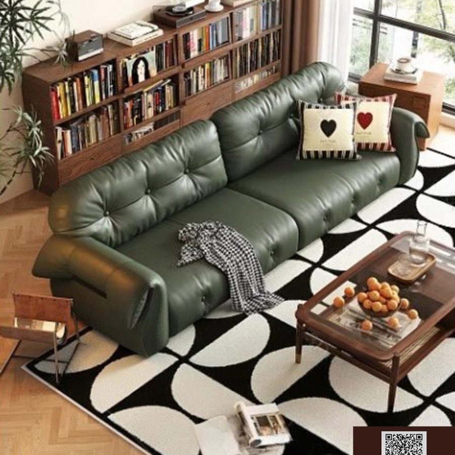 Luxury Modern Living Room with Marble Coffee Table and Black Sofa Set – 3D Model_109730583