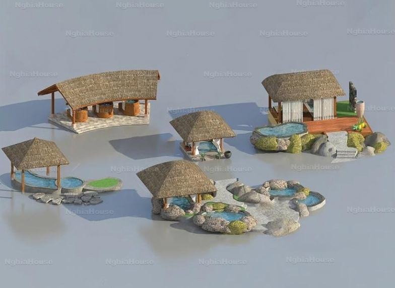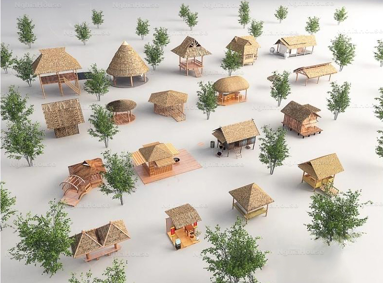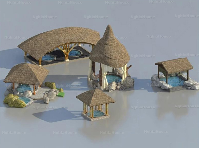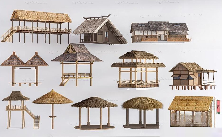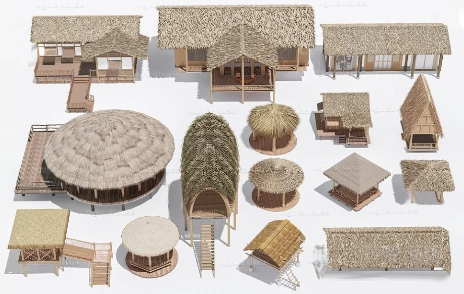 SET 30 Models Tropical Resort Thatched Roof Exterior 3D Models – 30 Assets 3ds Max N149