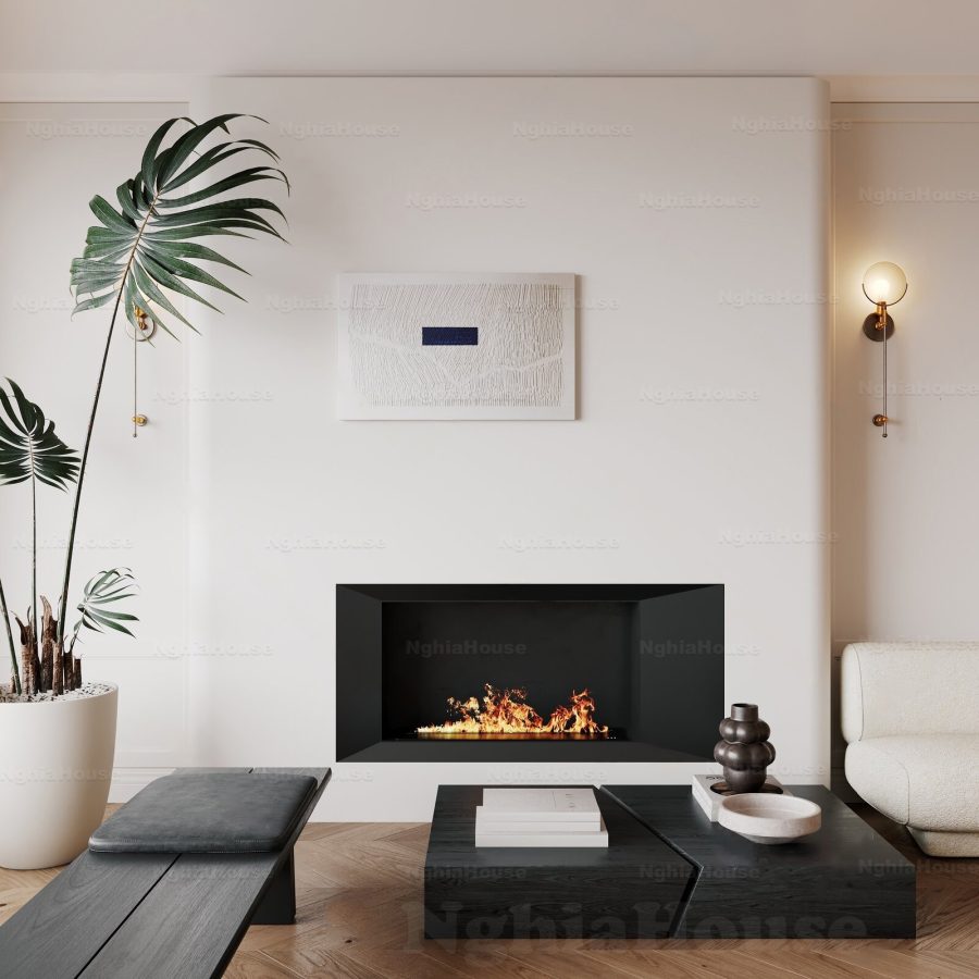 Luxury Modern Living Room with Marble Coffee Table and Black Sofa Set – 3D Model_114971306