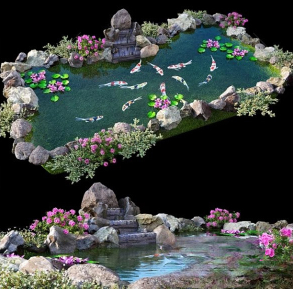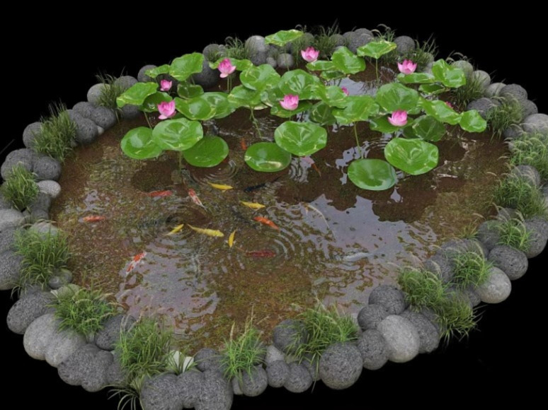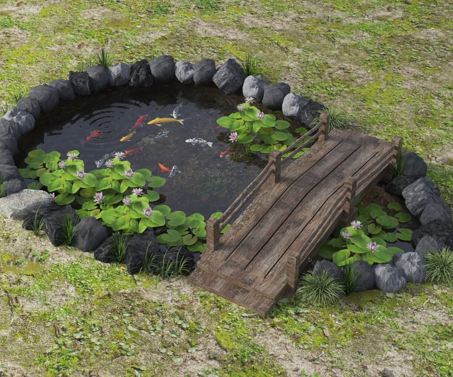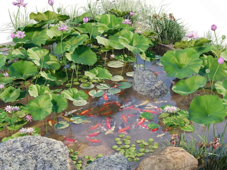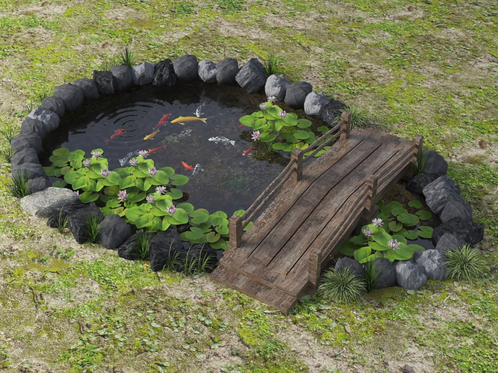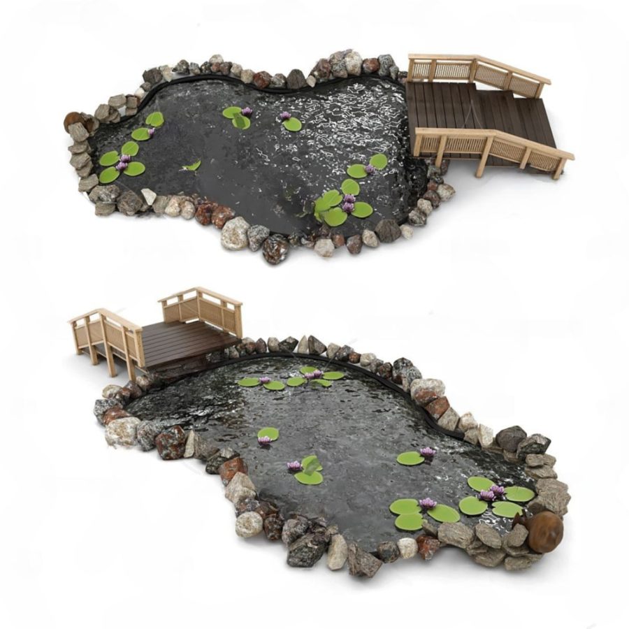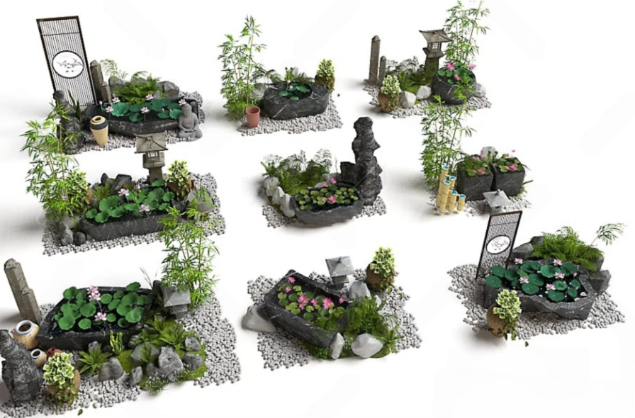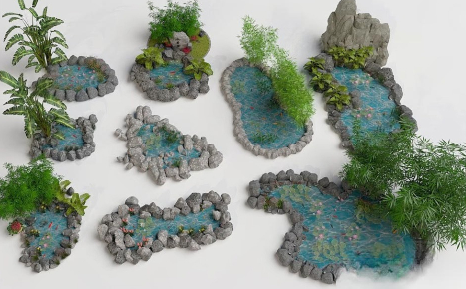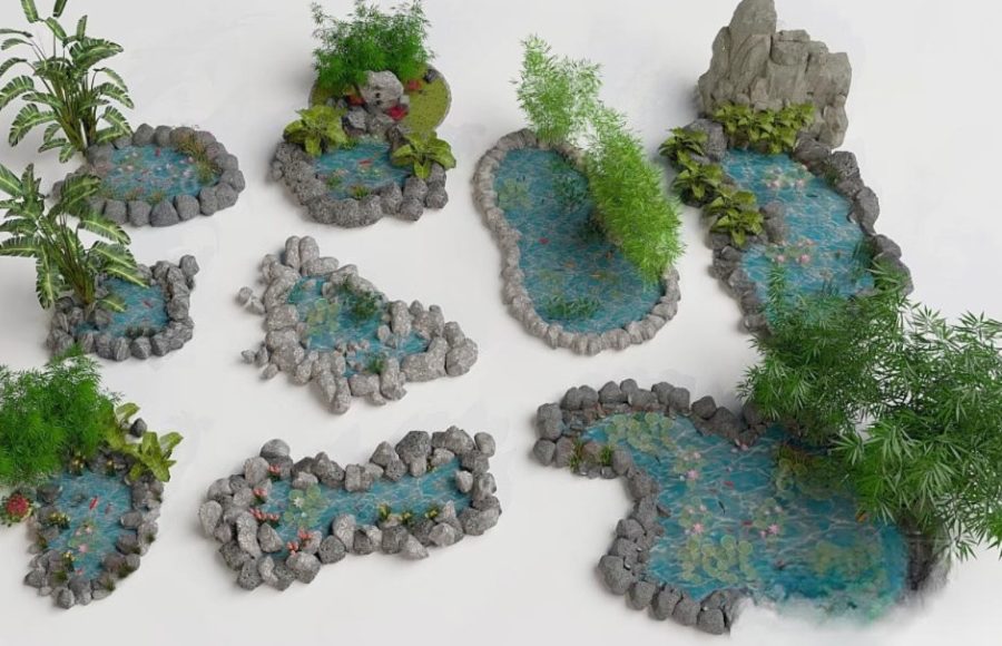 Set of 30 Koi Pond Garden Mini Landscape 3D Models – Zen Outdoor Decor 3ds Max N282