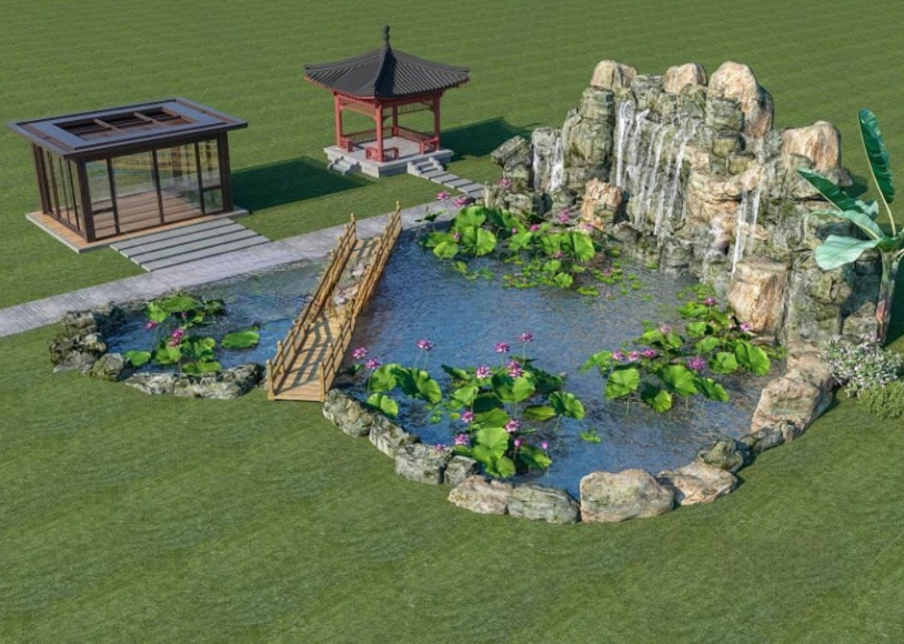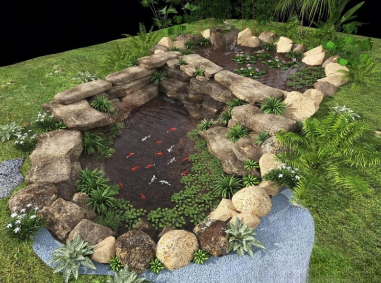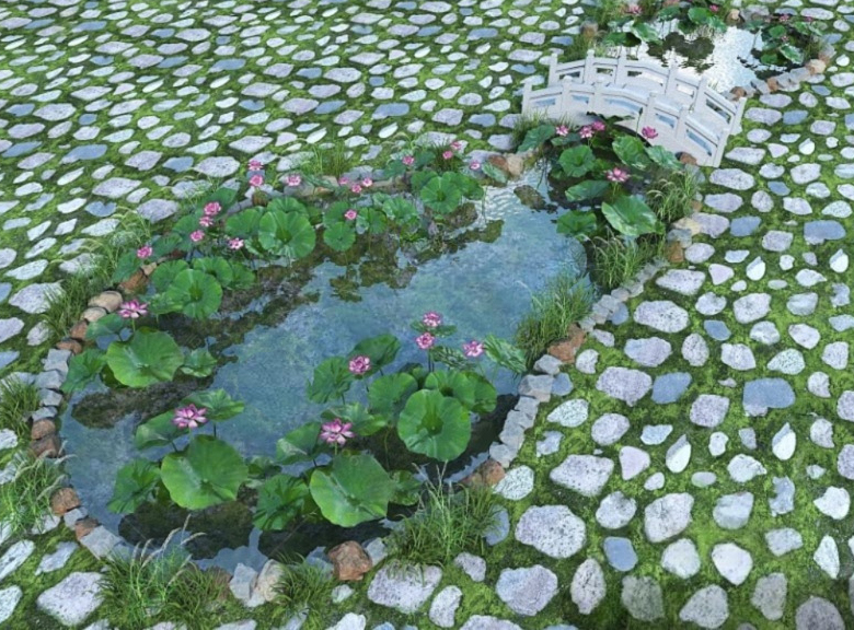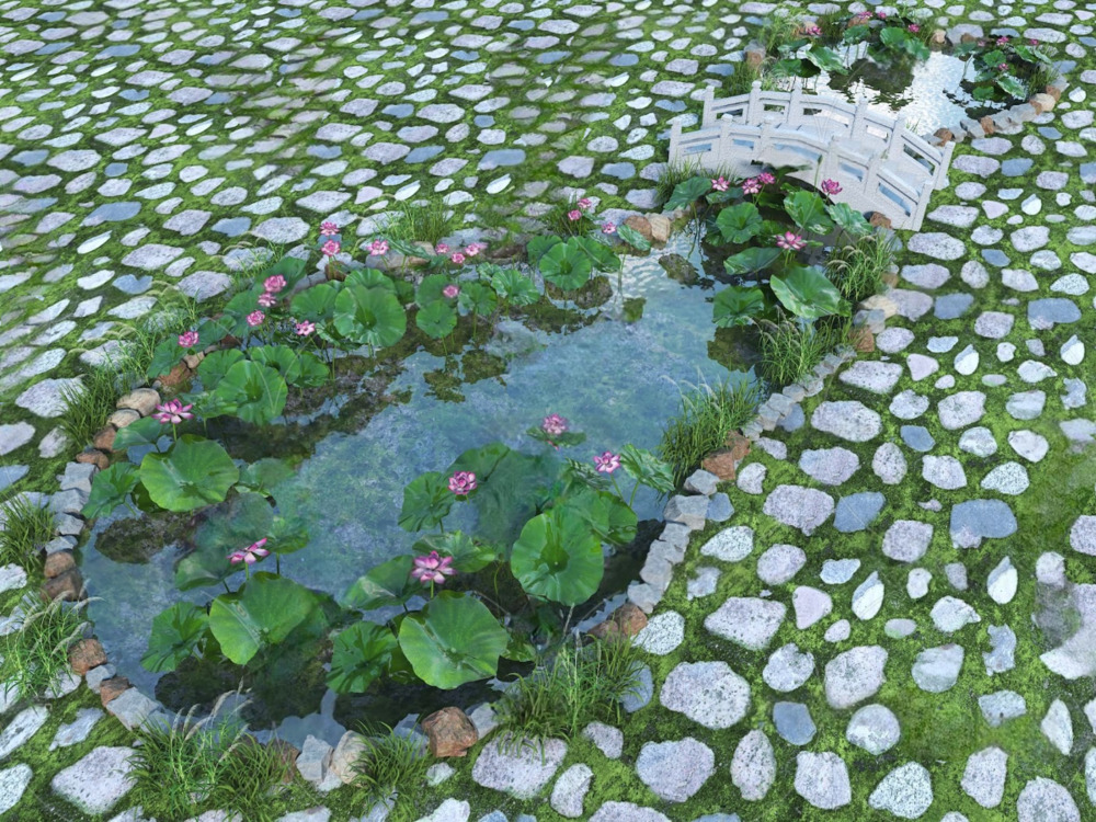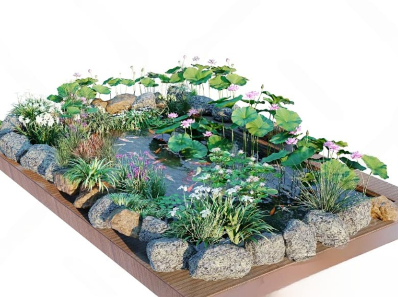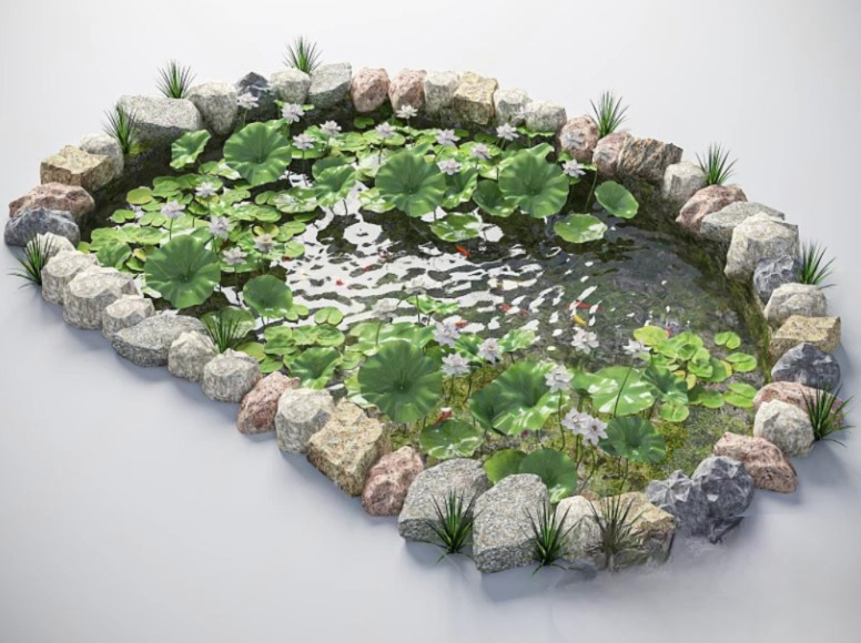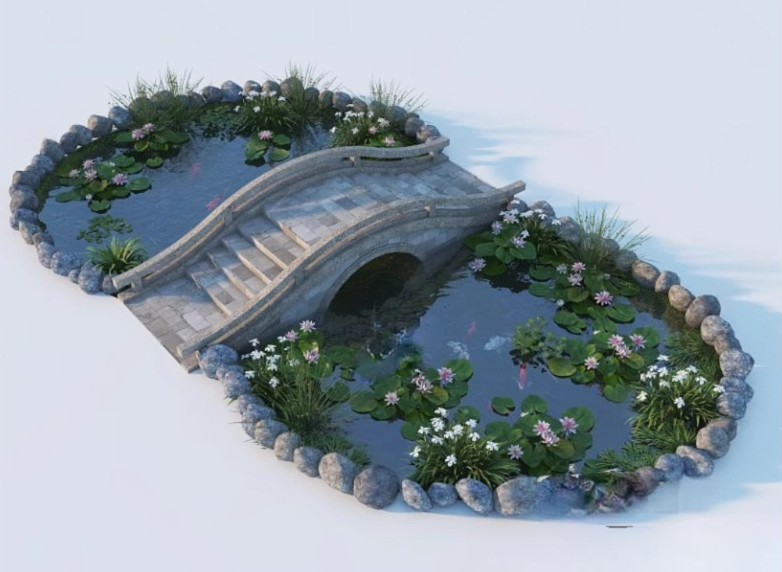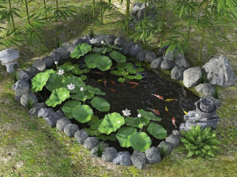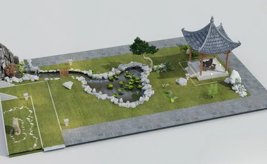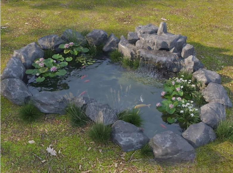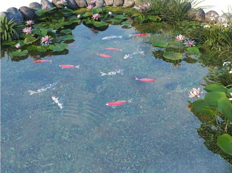 Set of 30 Koi Pond Garden Mini Landscape 3D Models – Zen Outdoor Decor 3ds Max N282