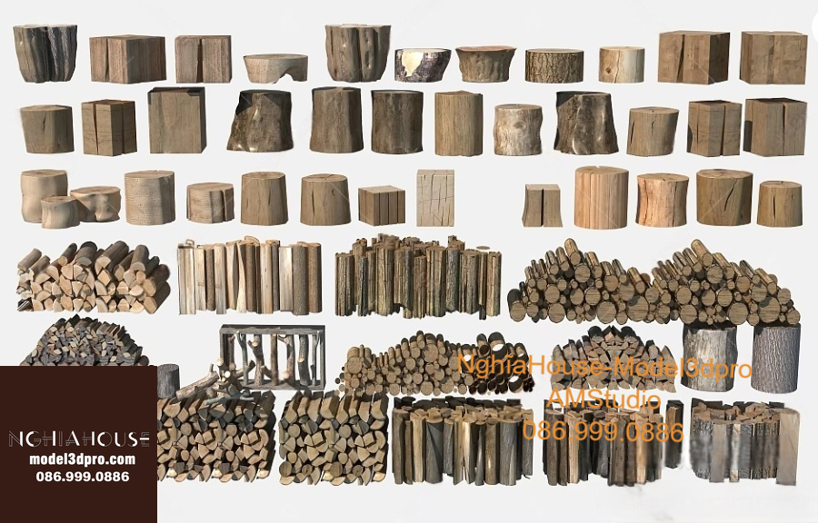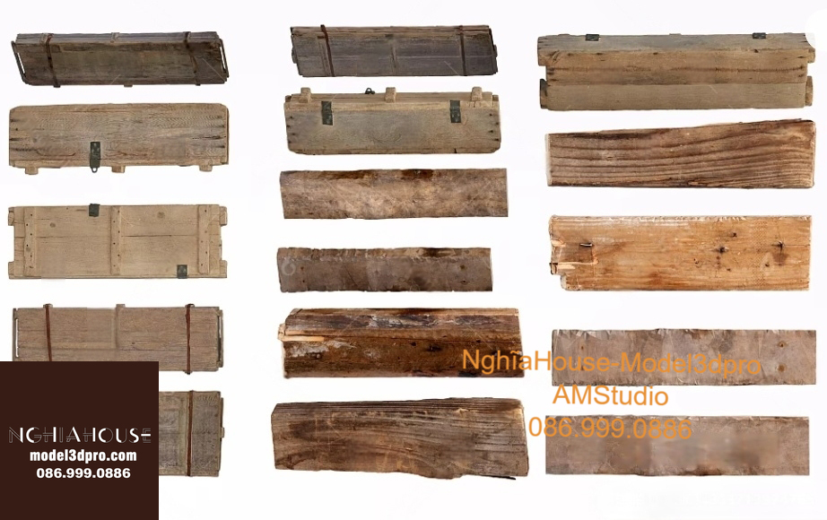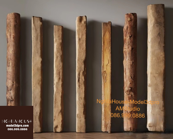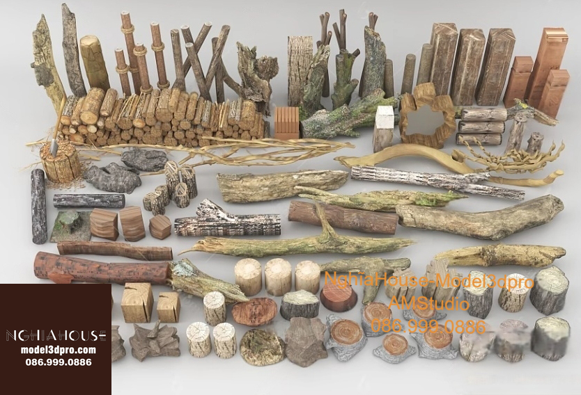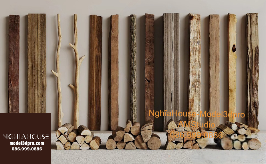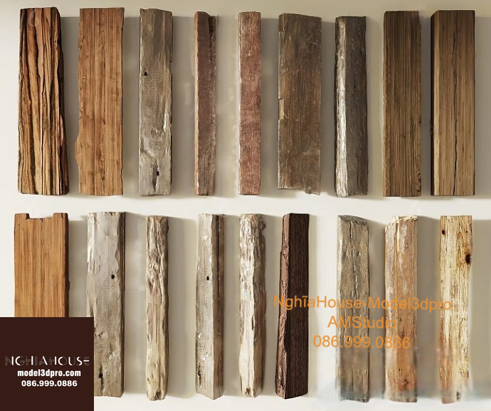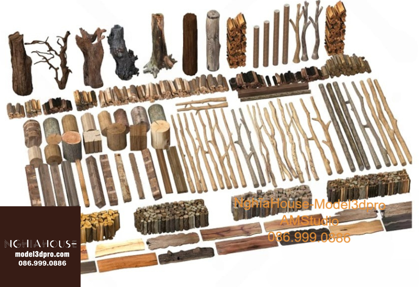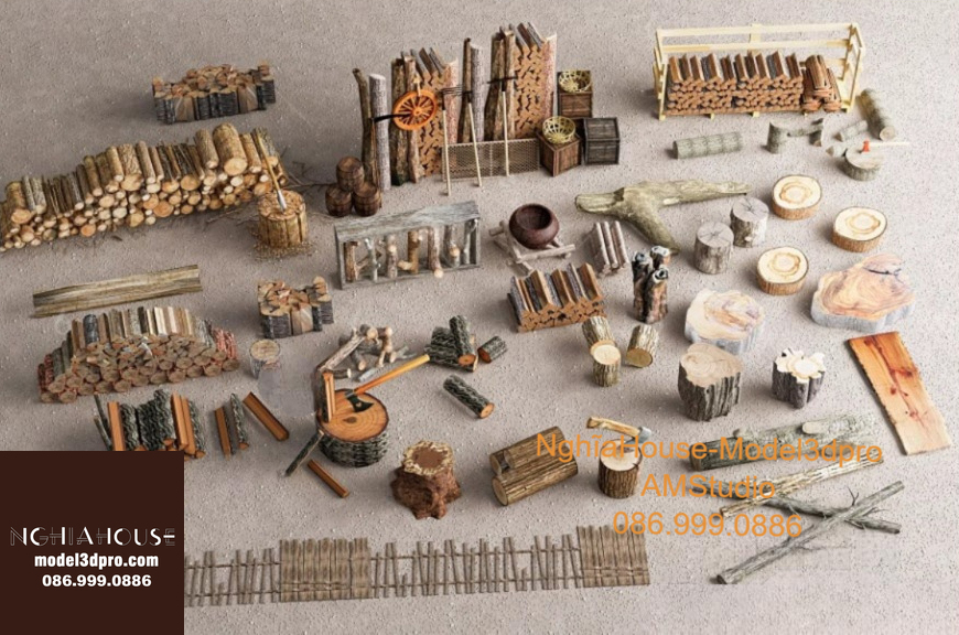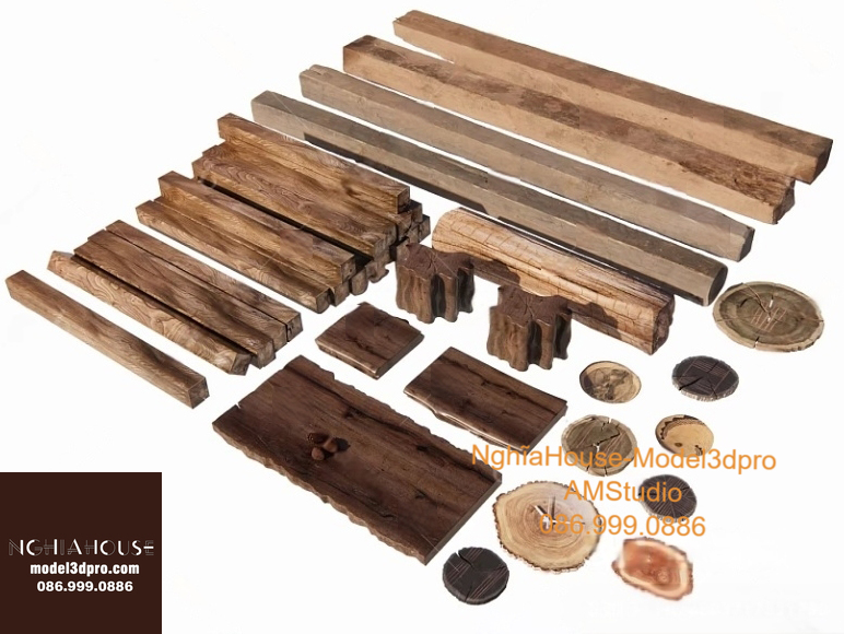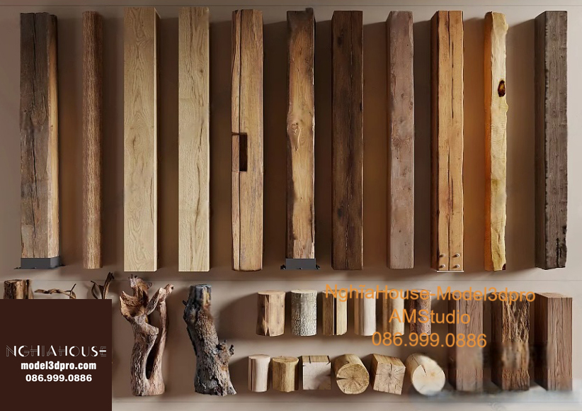 Set of 30 Rustic Wooden Decor 3D Models – Natural Wood Style 3ds Max N278