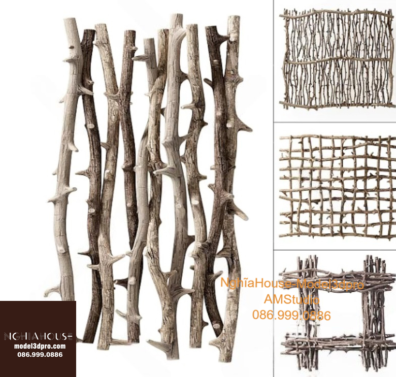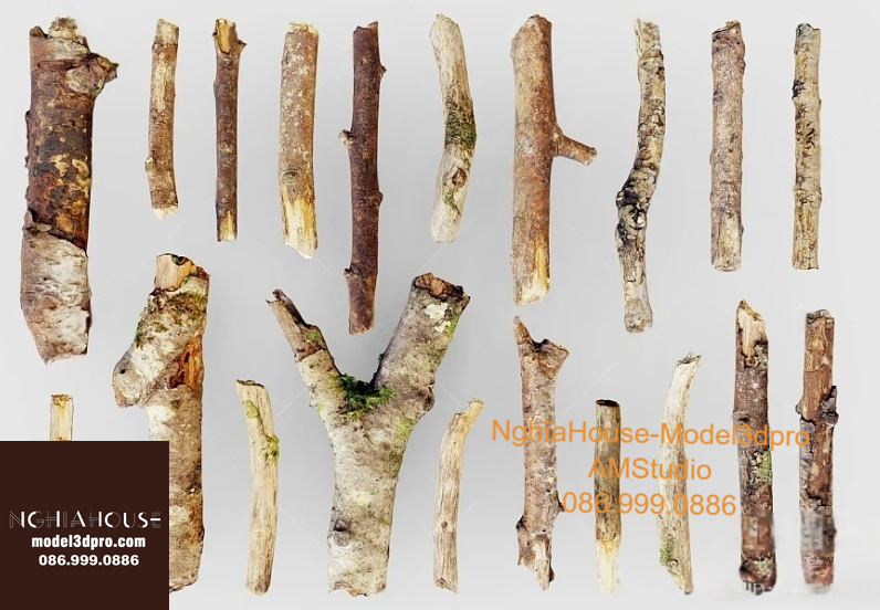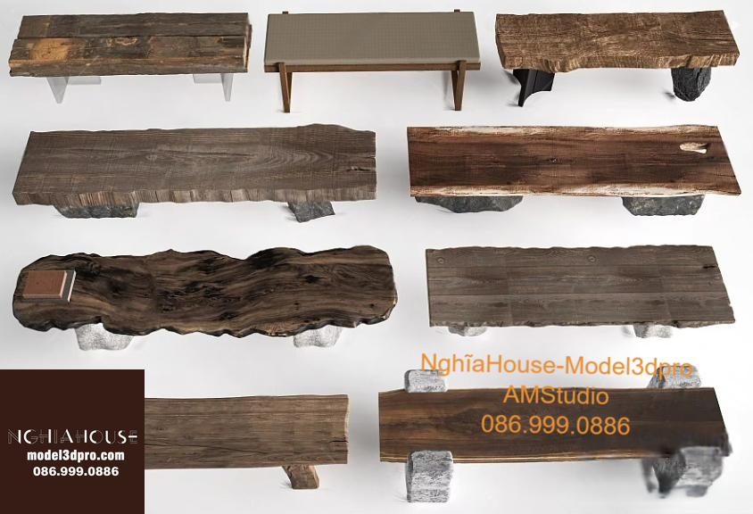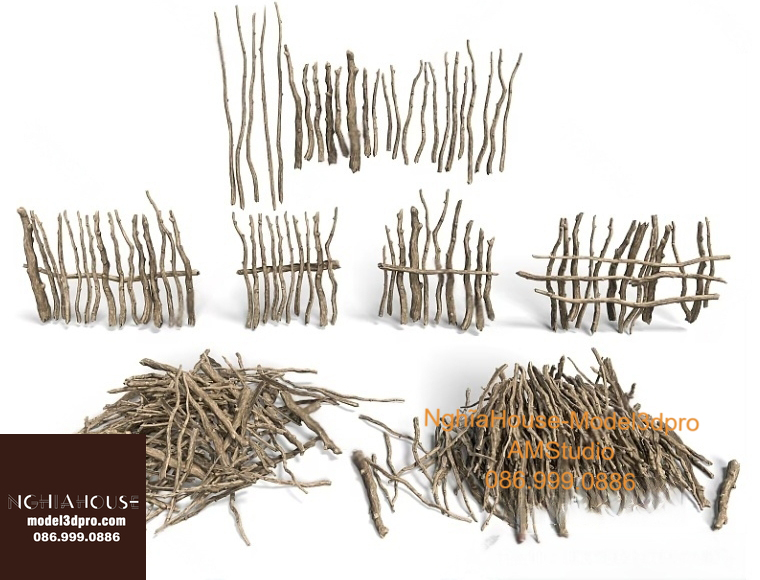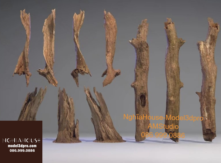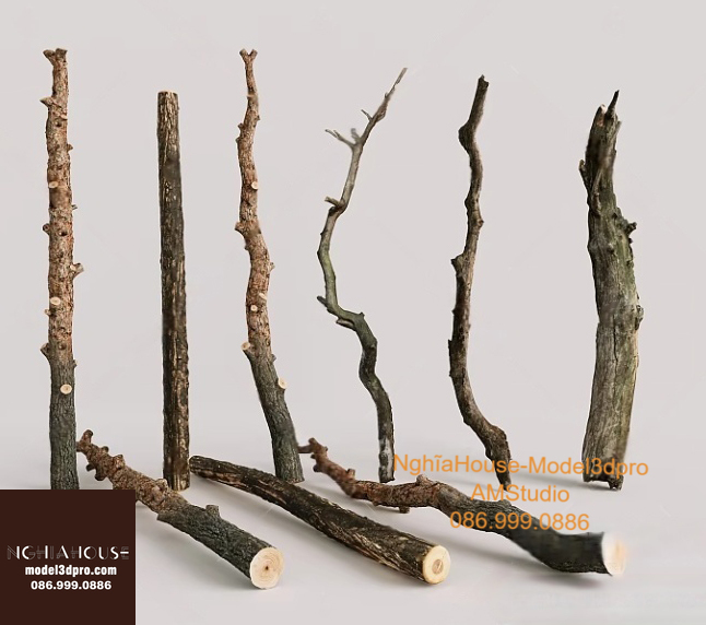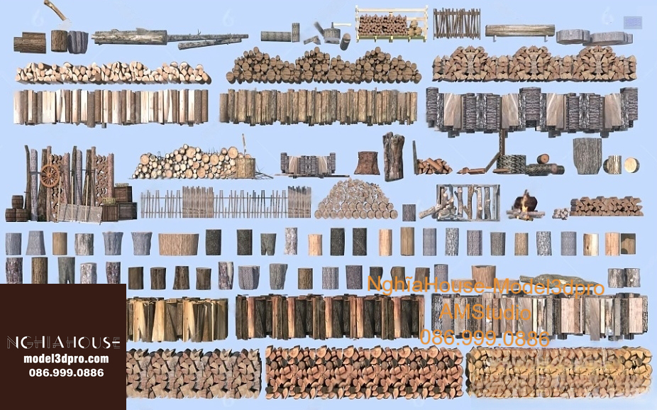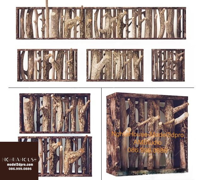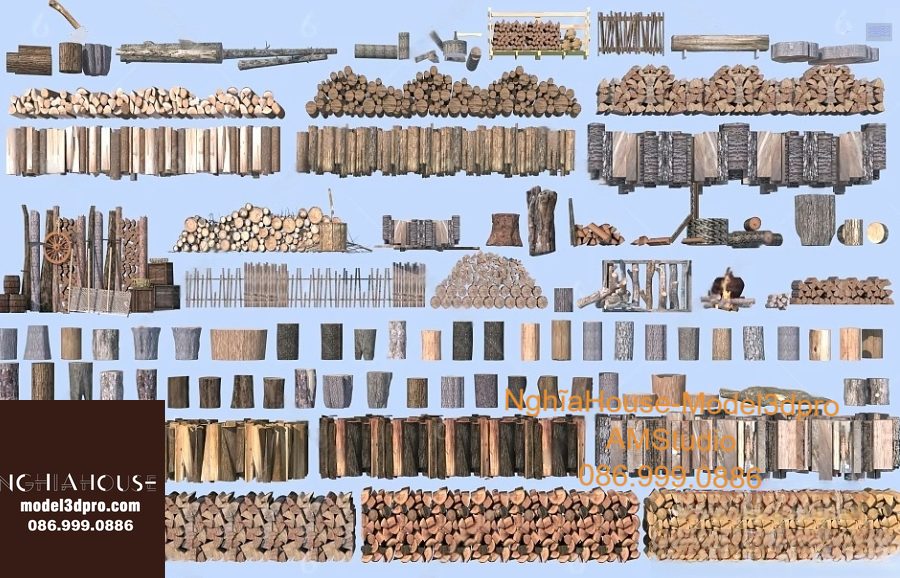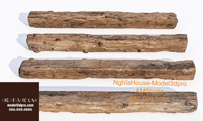 Set of 30 Rustic Wooden Decor 3D Models – Natural Wood Style 3ds Max N278
