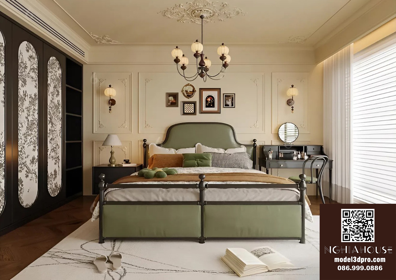 3D Model Asian Style Console Table Interior with Decorative Partition_107767822
